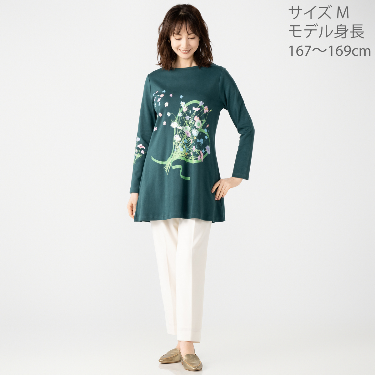 No. 743265 FairyStyle フラワー 長袖ソフトフレアーチュニック