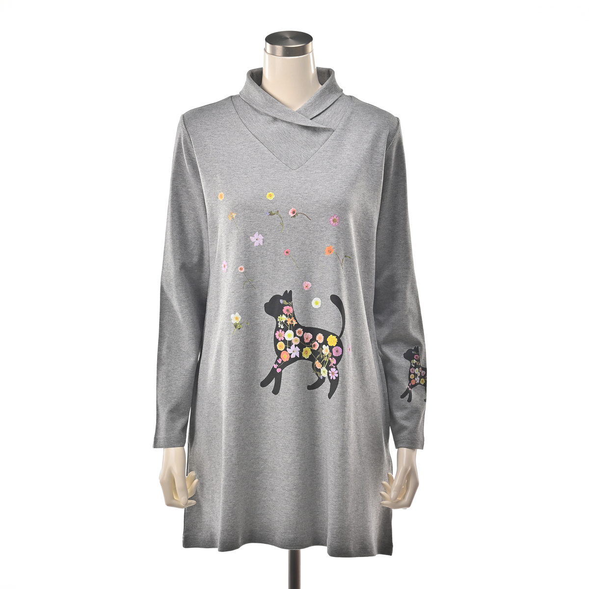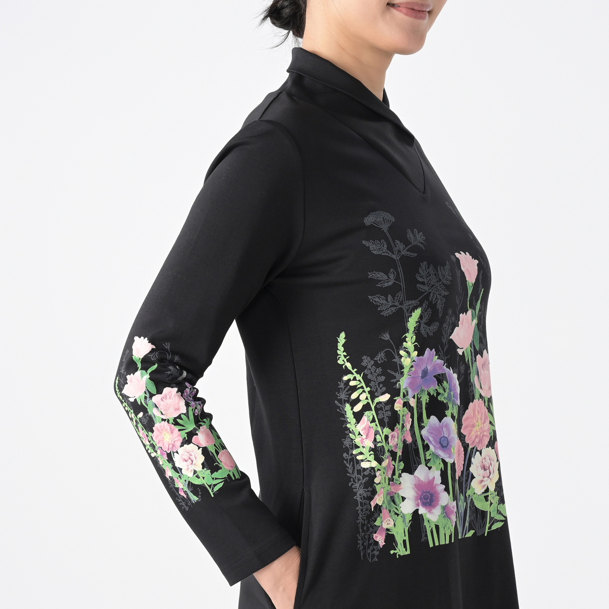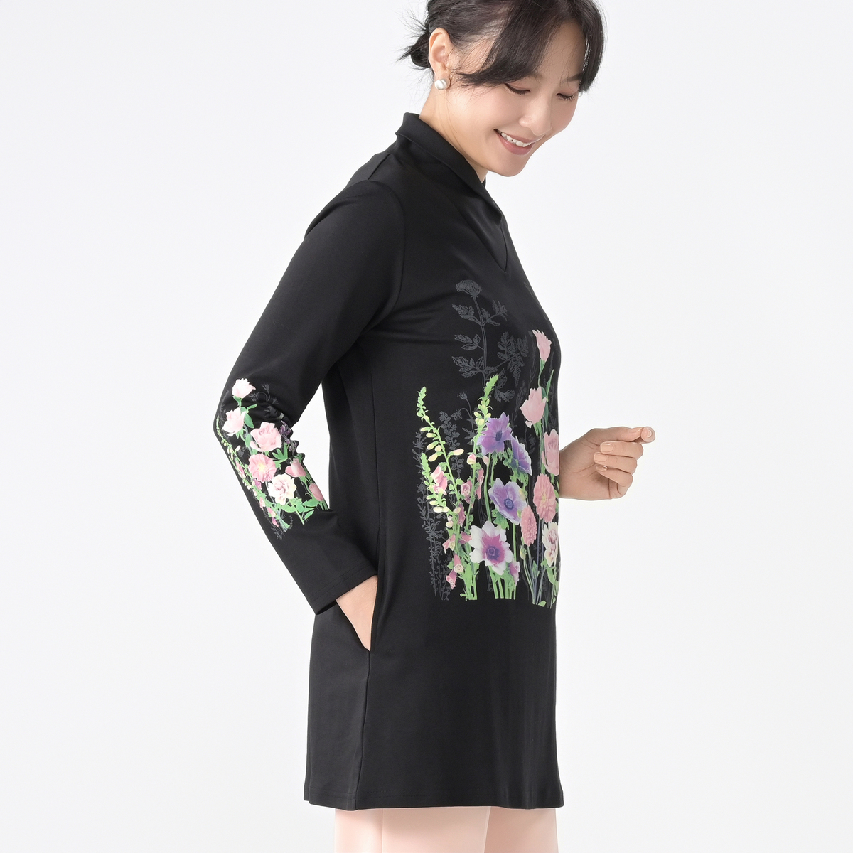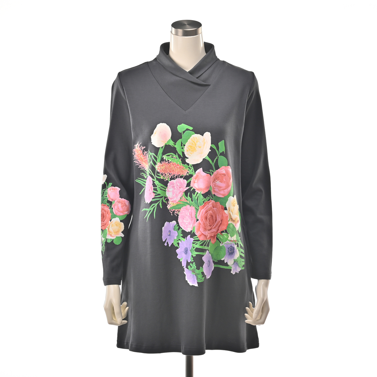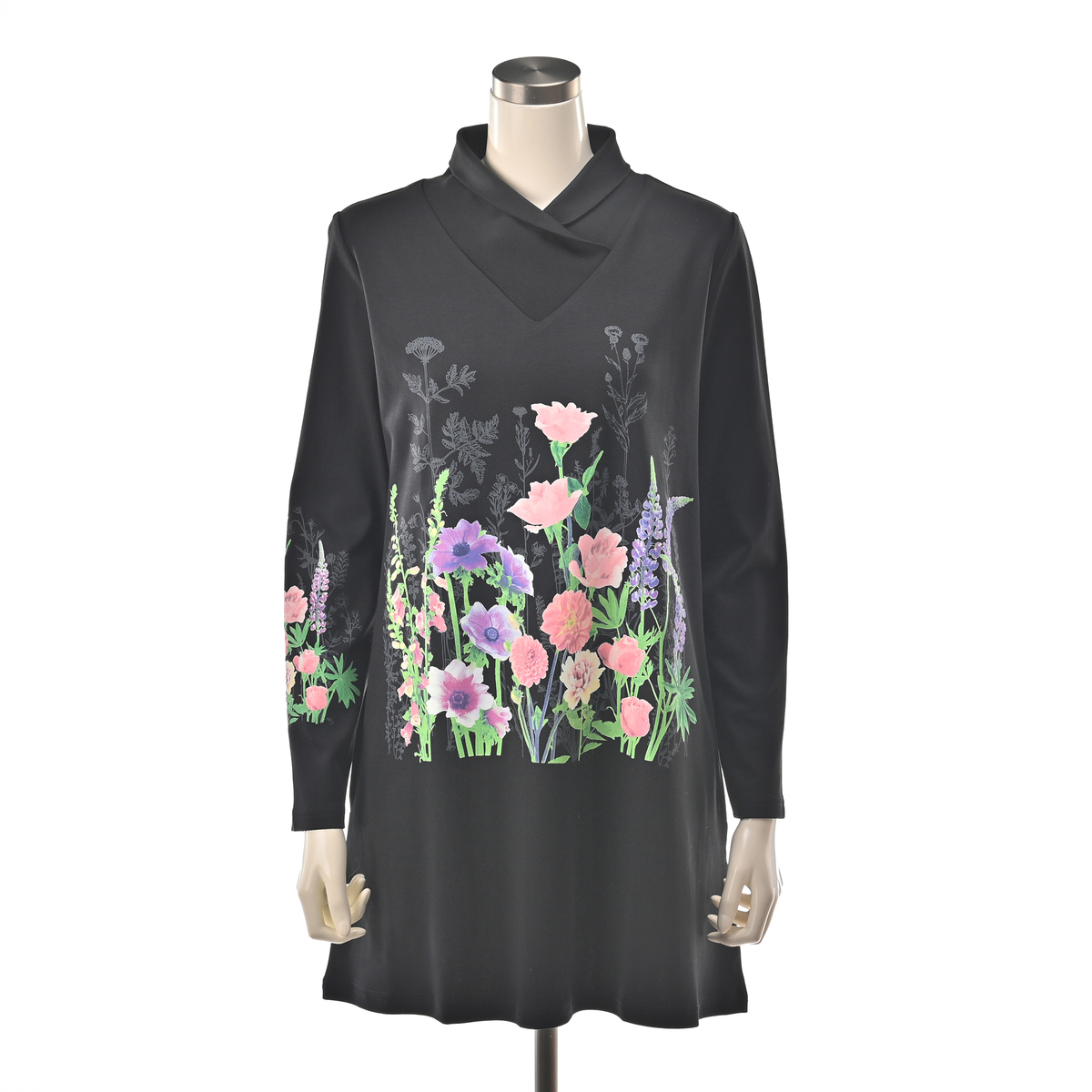 No. 743270 FairyStyle フラワー 長袖オープンダブルネックチュニック