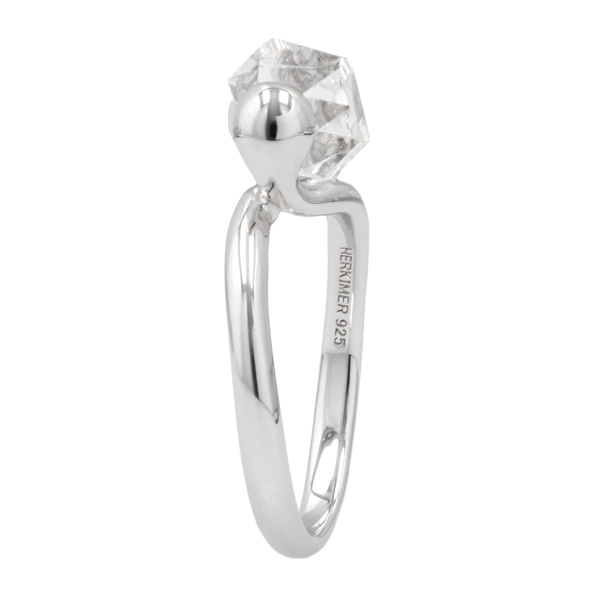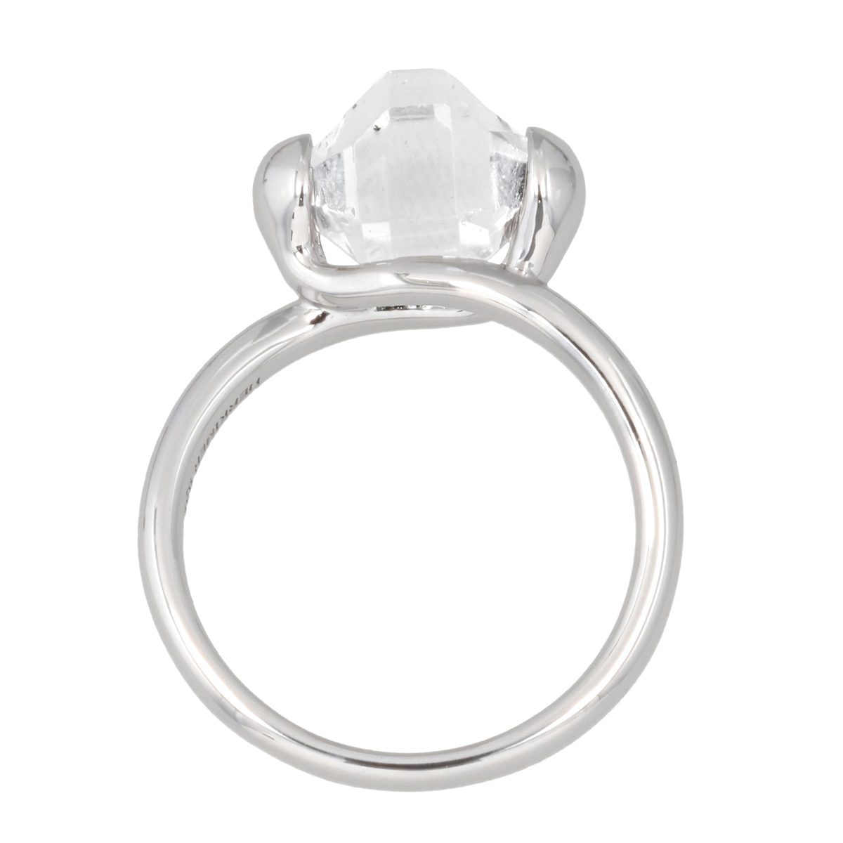 ハーキマーダイヤモンド(水晶)の名称で流通している、ニューヨーク州ハーキマー産の水晶を使用。原石そのままの形状を活かして爪を少なくした、挟み留めのデザインです