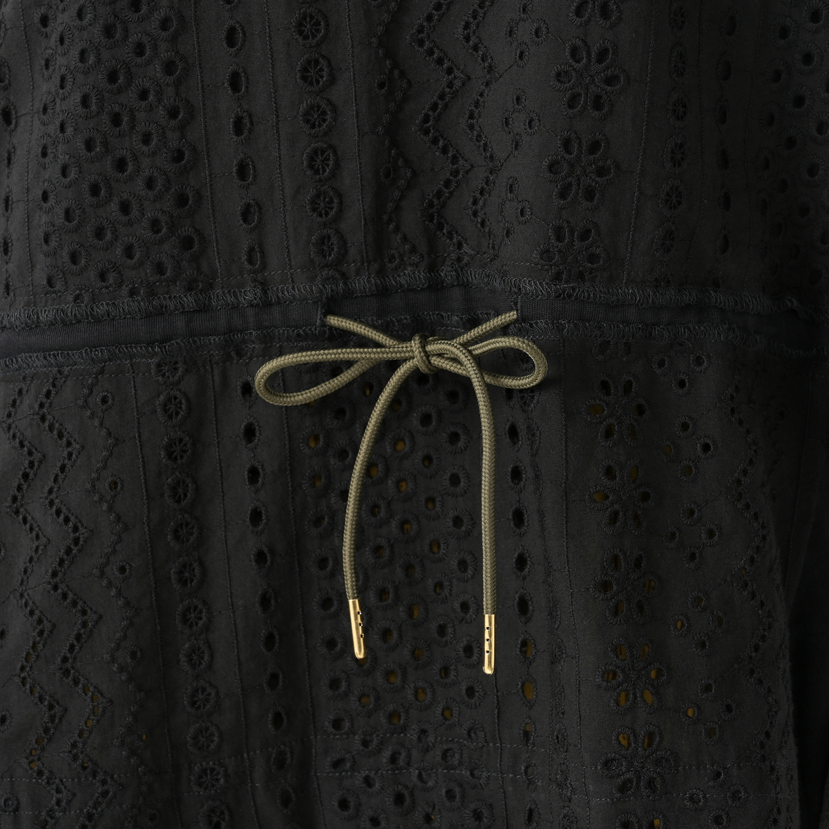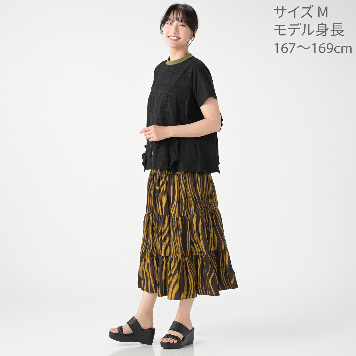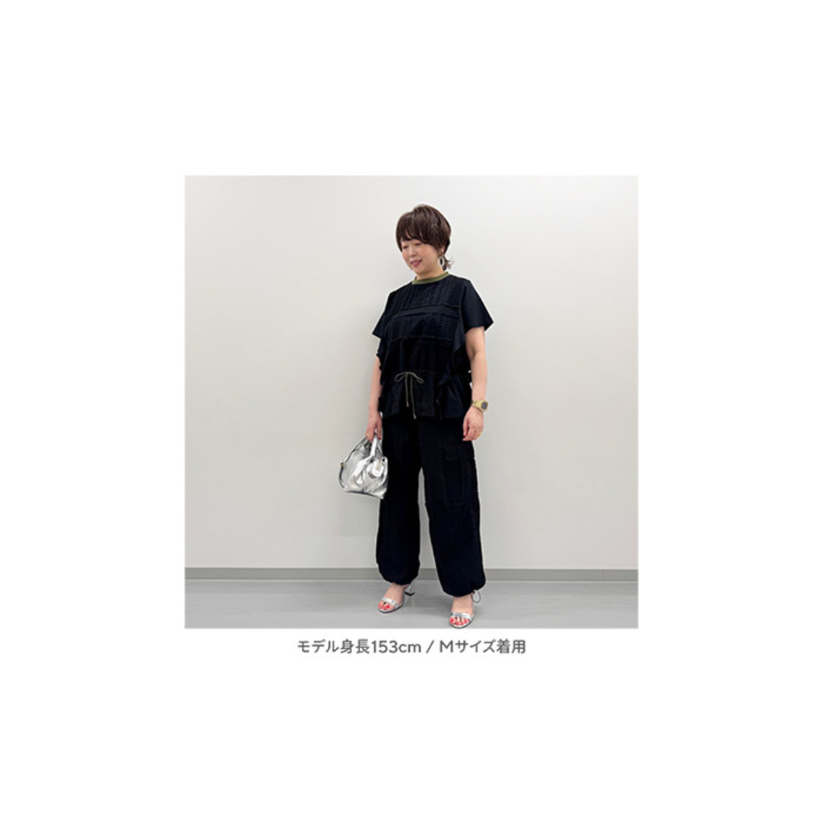 カーキとブラックの両方頼みました。サイズ感が分からず他ブランドではL Lが多いけどワンサイズ上の3Lにしました。ウエストの絞りが出来るので大きく見えなく可愛かったです。ブラック人気でしたがカーキもいい色で気分が上がる可愛いデザイン良い買い物が出来ました。
