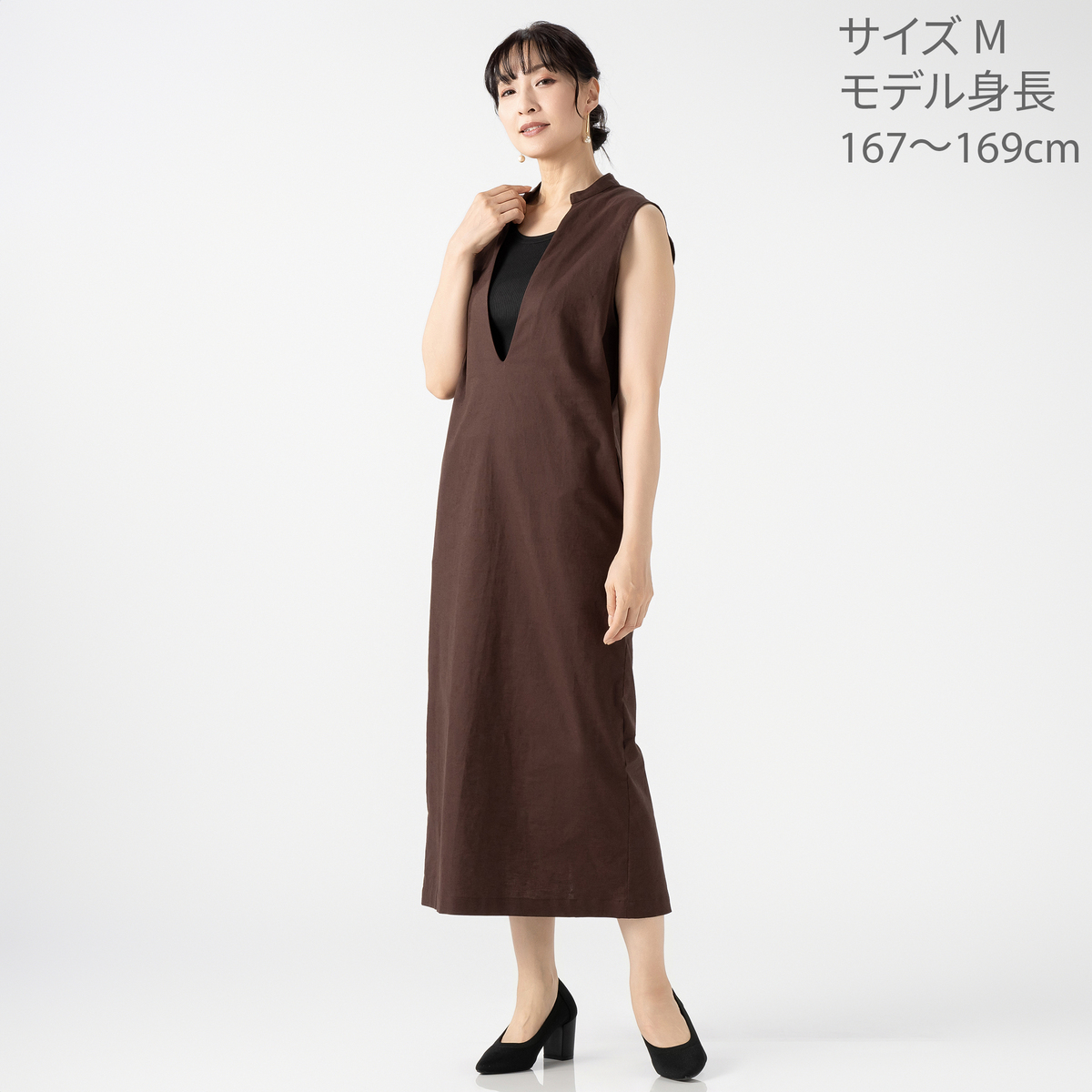[商品寸法(ヌード)cm] サイズ バスト 着丈 肩幅 S: 94(72〜80) 123.5 37 M: 100(79〜87) 125 38 L: 106(86〜94) 125 39 LL: 112(93〜101) 125 40 3L: 118(100〜108) 126.5 41 [素材] 麻52% 綿46% ポリウレタン2% [お手入れ] 洗濯機洗い可 [注意事項] ※商品寸法の誤差は多少発生します。ご了承下さい ※淡色製品には蛍光増白剤入り洗剤を使用しないで下さい ※洗濯の際には必ずネットを使用して下さい ※洗濯・クリーニングの際、色落ちすることがありますので他の物と分けて洗って下さい ※洗濯後はすぐに脱水し、形を整えて干して下さい。長時間水につけたままにしないで下さい ※濃色製品は着用中の摩擦により色移りすることがあります。また、雨や汗等で濡れた状態で着用すると色移りすることがあります。その際はお早めに洗濯をして下さい ※アイロンは当て布を使用して掛けて下さい 【中国製】