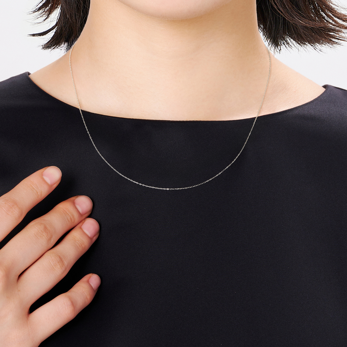 [地金]プラチナ900 総重量(約) 0.6g 長さ(約) 45.0cm 幅(約) 0.7mm チェーンの形状 アズキ 留具の形状 引き輪 アジャスターの有無 有(スライド式) 留め具の受け側 最大幅×高さ 2.5×1.6mm ■受注発注商品のためデザイン・価値に影響のない範囲で仕様が変わる場合がございます ■素材の大きさ・形・色合い、製品のサイズは1点1点多少異なります 【日本製】