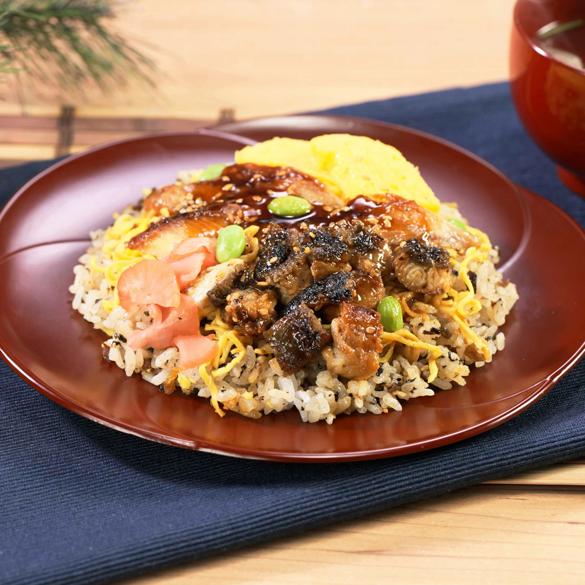 焼き方やタレにこだわって作り上げたうなぎの長焼き*を使って、贅沢にちらし寿司にしました。電子レンジで温めて、または自然解凍でもお召し上がりいただけます