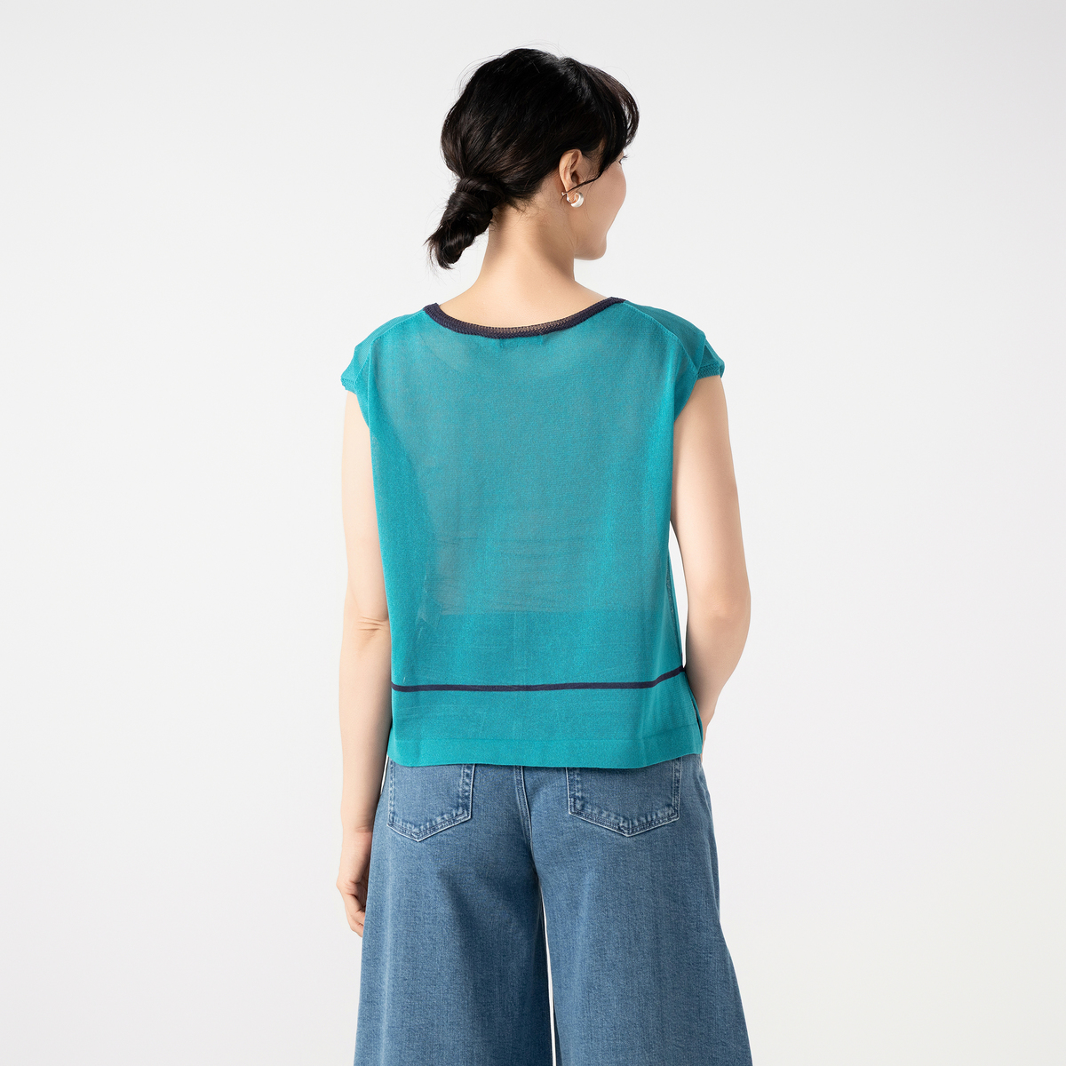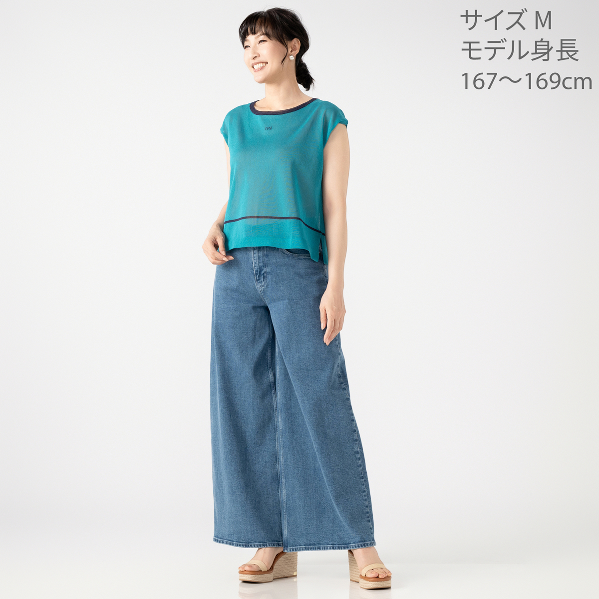 No. 743428 H.HOLIDAY 裾配色ラインノースリーブニットプルオーバー