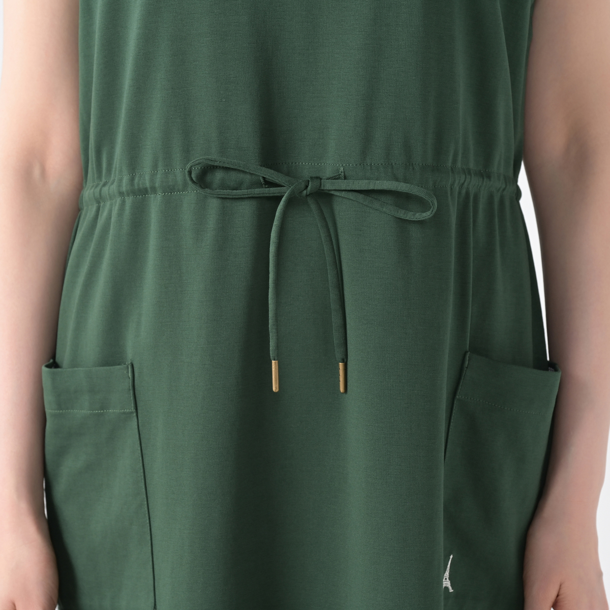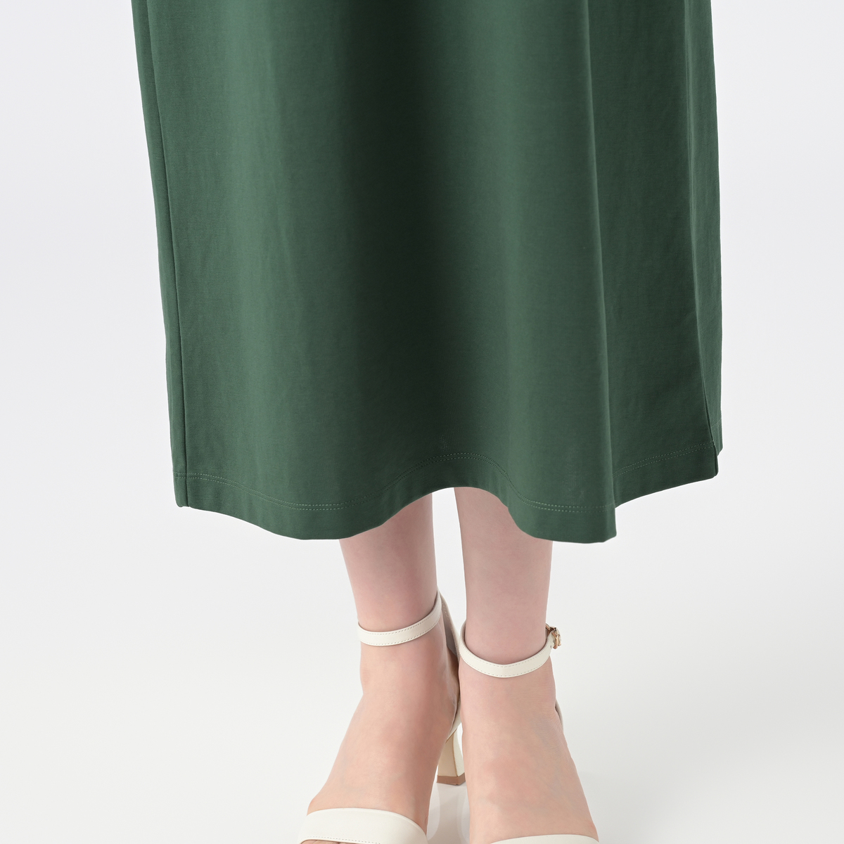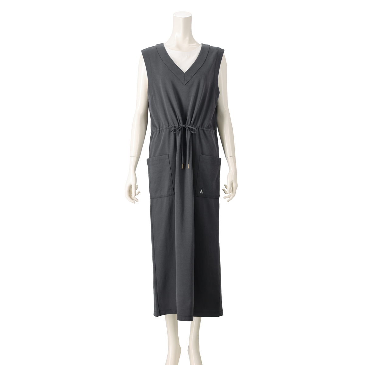 ワンピースには適度な肉感とハリ感のあるストレッチポンチ、インナータンクには適度な伸縮性のあるスムース素材を使用。どちらも綿高混率のカットソー素材です