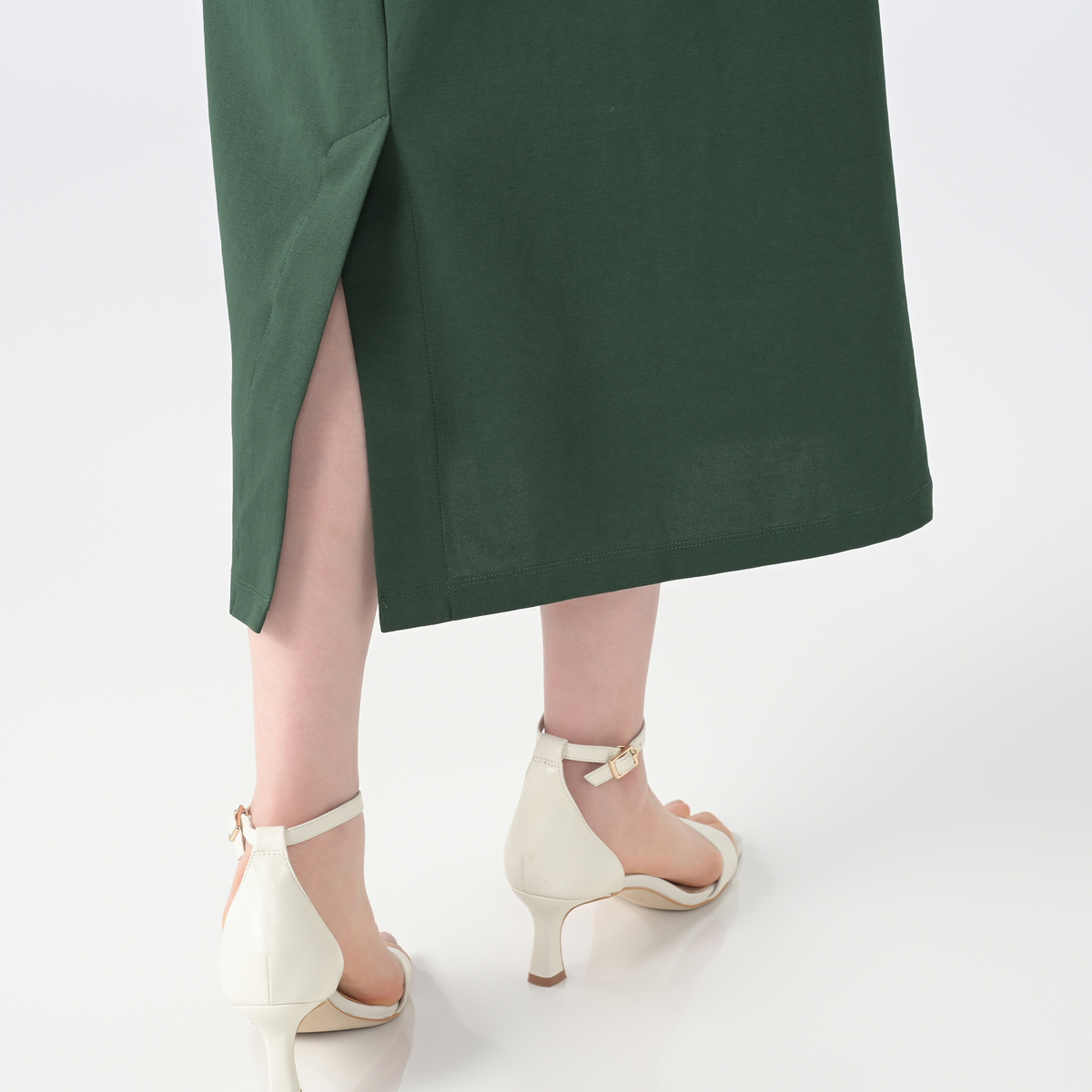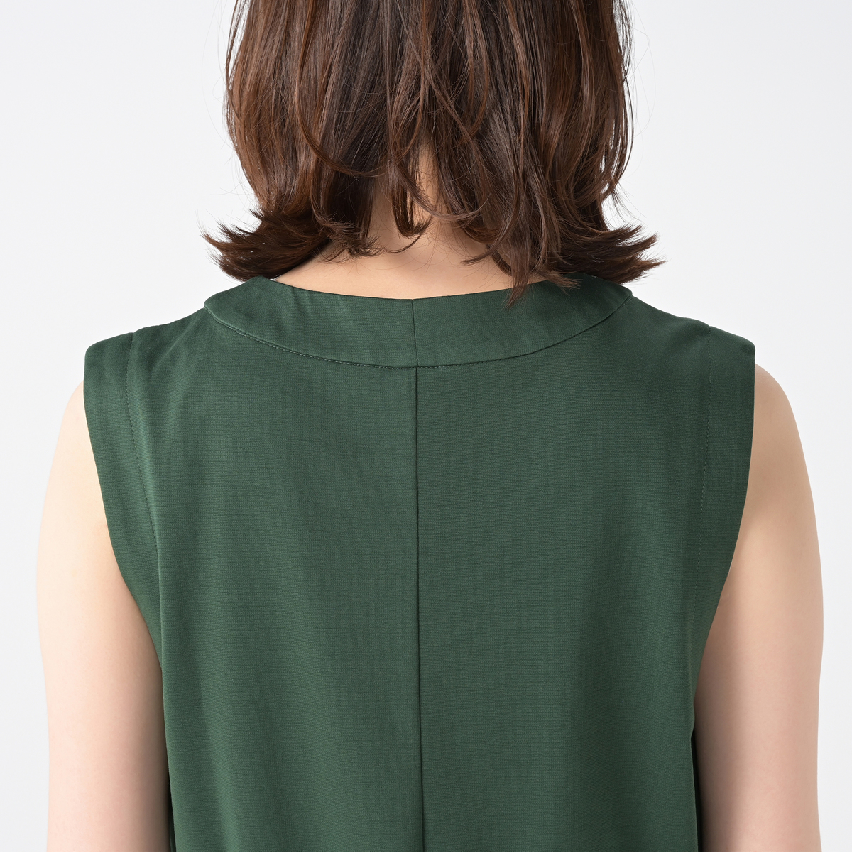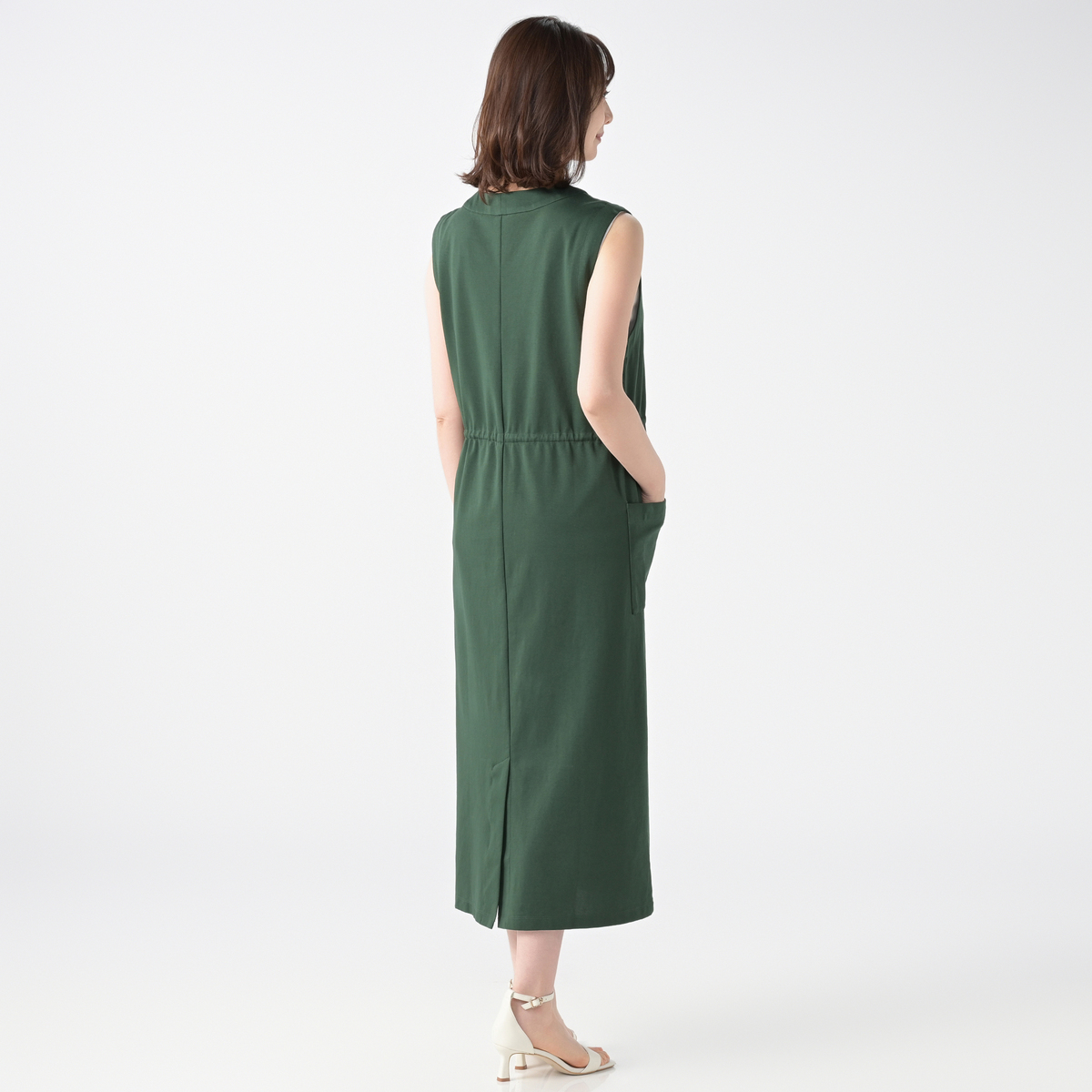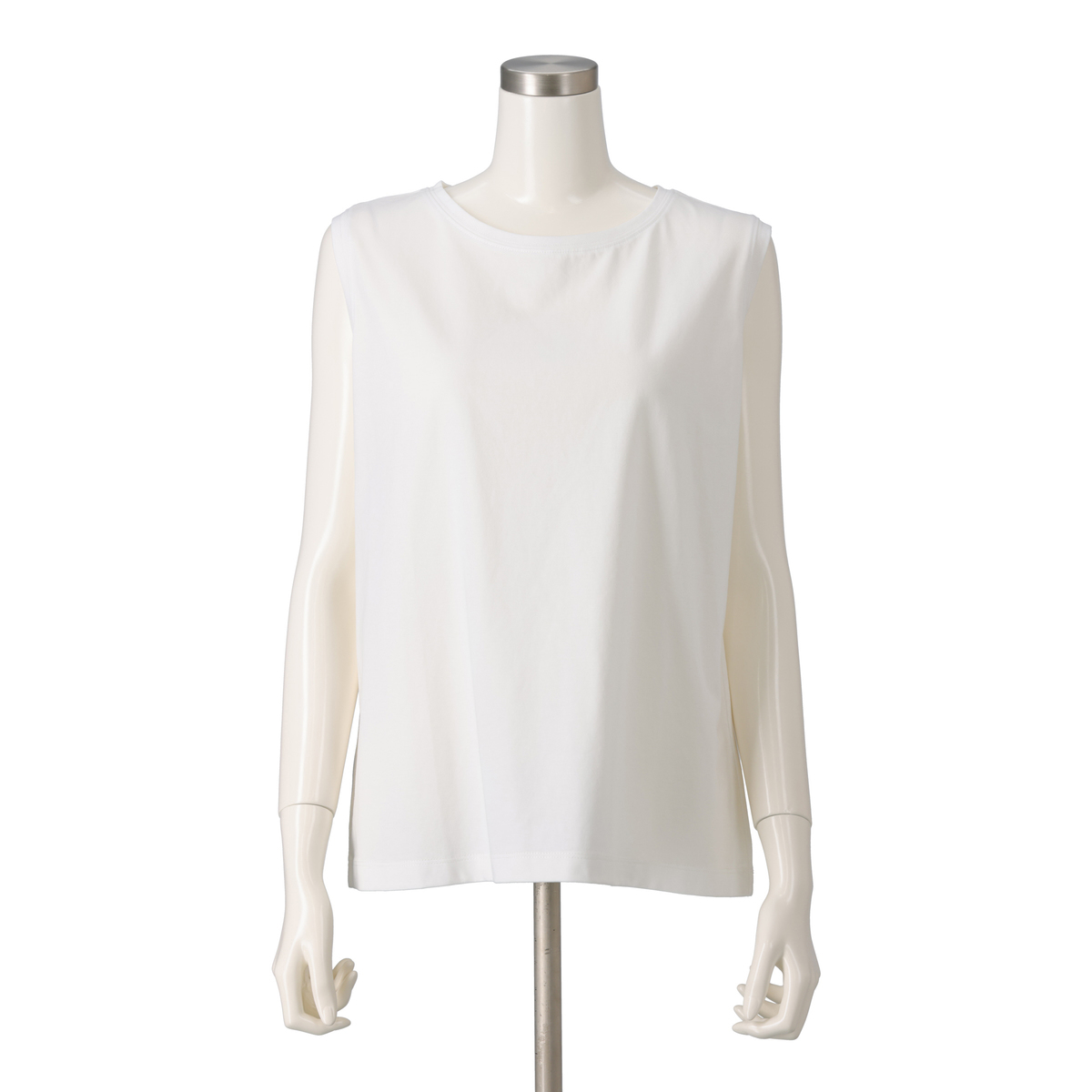 ワンピースには適度な肉感とハリ感のあるストレッチポンチ、インナータンクには適度な伸縮性のあるスムース素材を使用。どちらも綿高混率のカットソー素材です