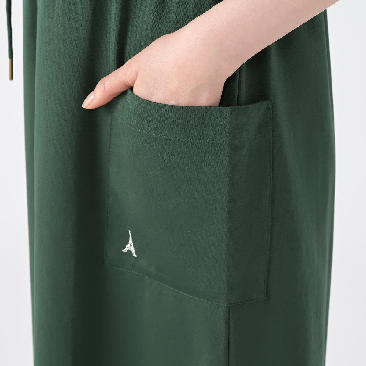 インナータンク付きのカットソーワンピース。お好みに合わせて2つの着丈から選べます。ウエストのスピンドルでシルエットを変えることも可能。ストライプの別布やエッフェル塔の刺繍がポイントです。普段使いからお出かけまで幅広く活躍します