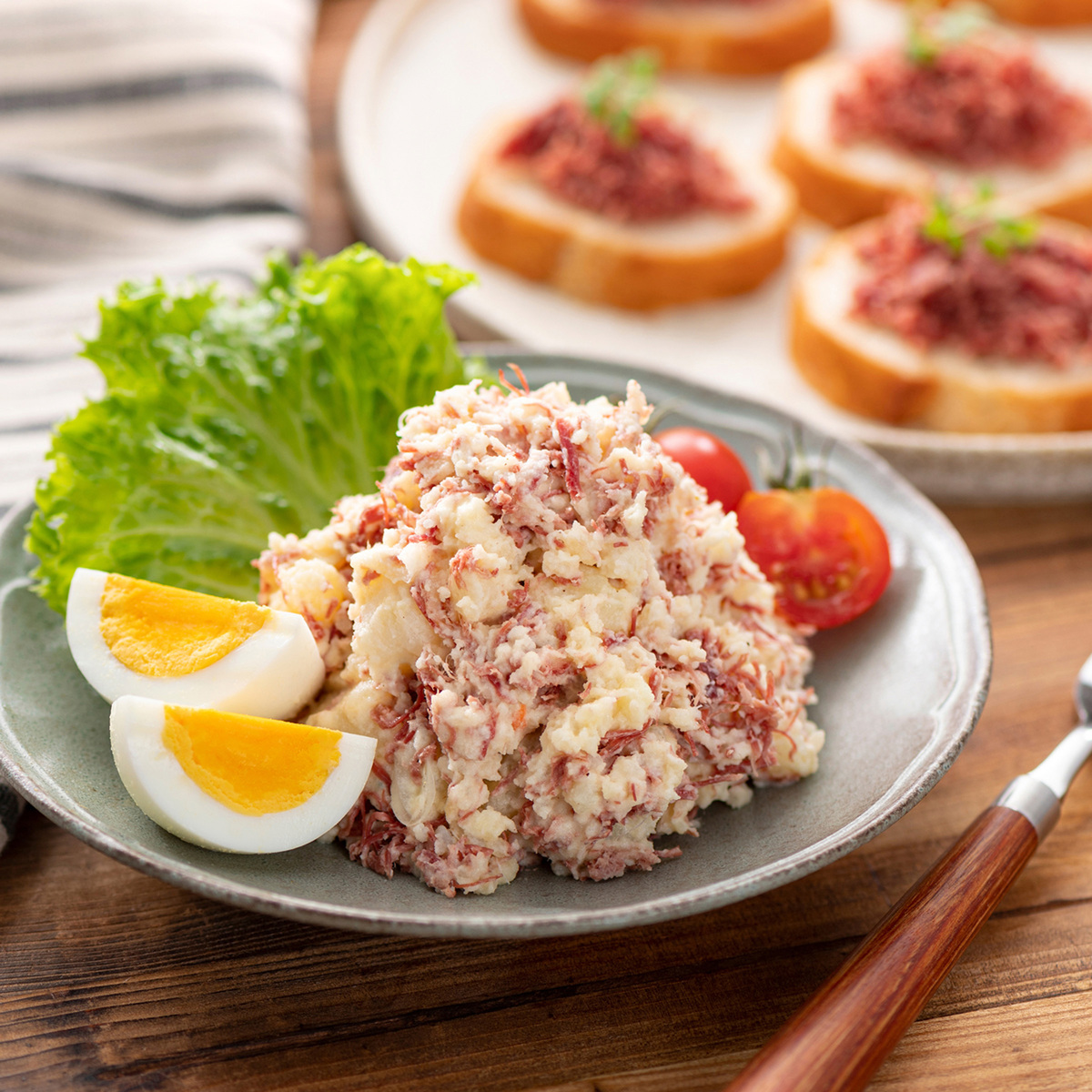 脂身が少なく、噛むほどに赤身肉の旨みを感じられる牛もも肉*。北海道産の牛もも肉を使って、コンビーフをおつくりしました