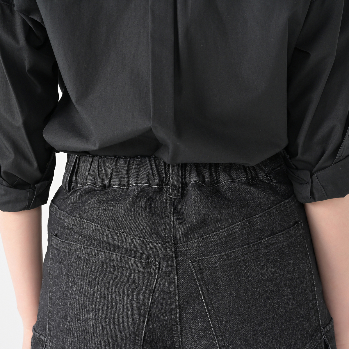 ストレッチデニムを使ったバミューダパンツ。膝あたりまで届く長めの丈感で、穿きやすいのもポイントです
