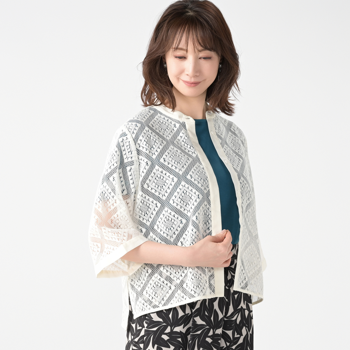 レースの羽織り 毎年欲しいと思っていました。クールシュクレのデザインならばキレイ目にもカジュアルにも馴染み幅広く使えそうです。素材も柔らかく気に入りました。