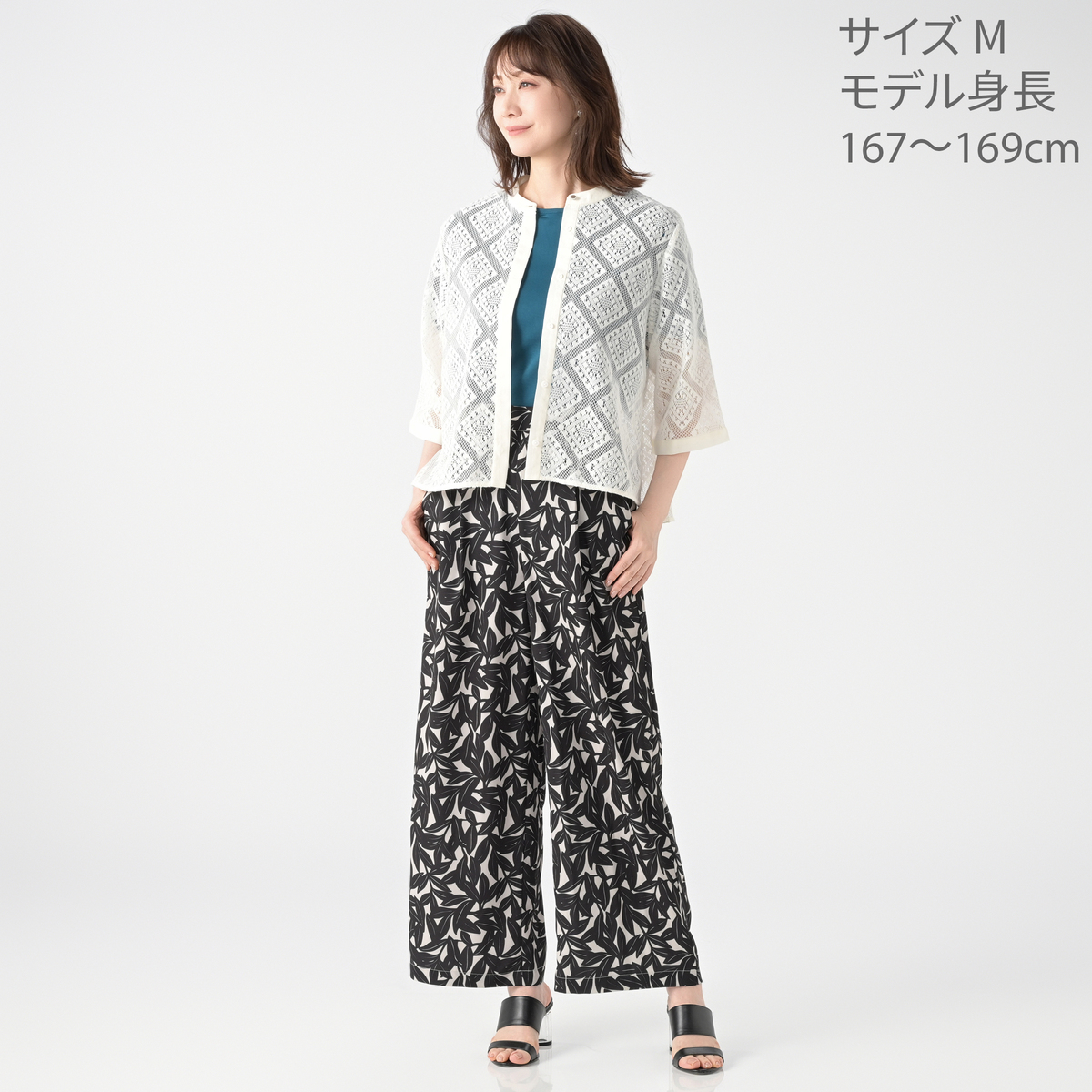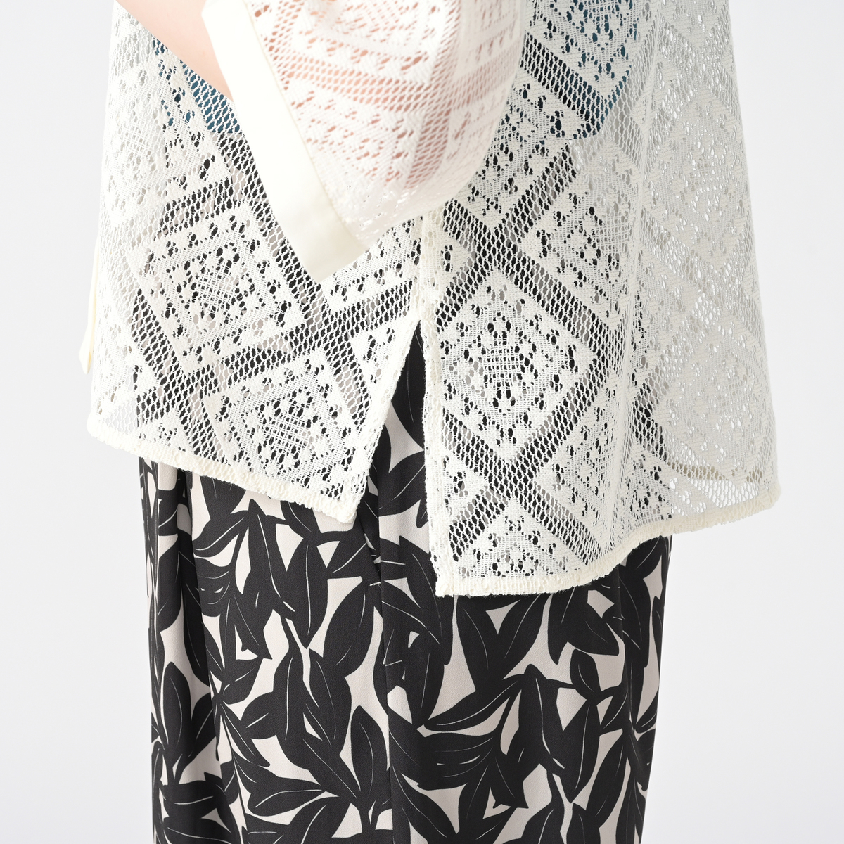 繊細で柔らかなカットレース素材のカーディガン。ワンピーススタイル、パンツスタイル、スカートスタイルあらゆるコーディネートに合わせやすいアイテムです