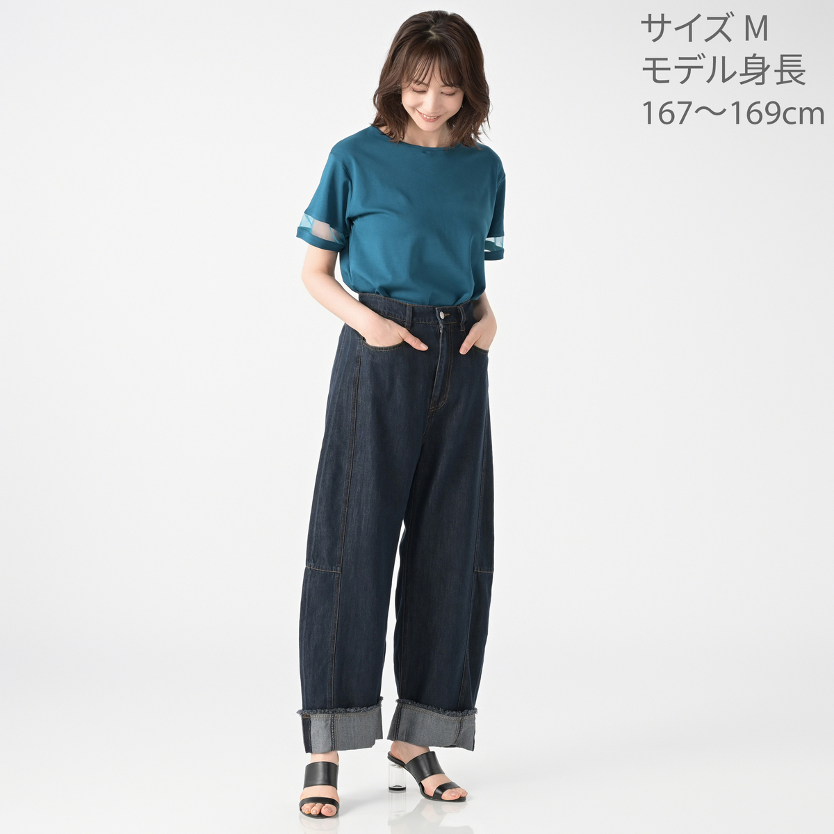No. 743497 Coeur sucre ターンバックワイドシルエットデニムパンツ