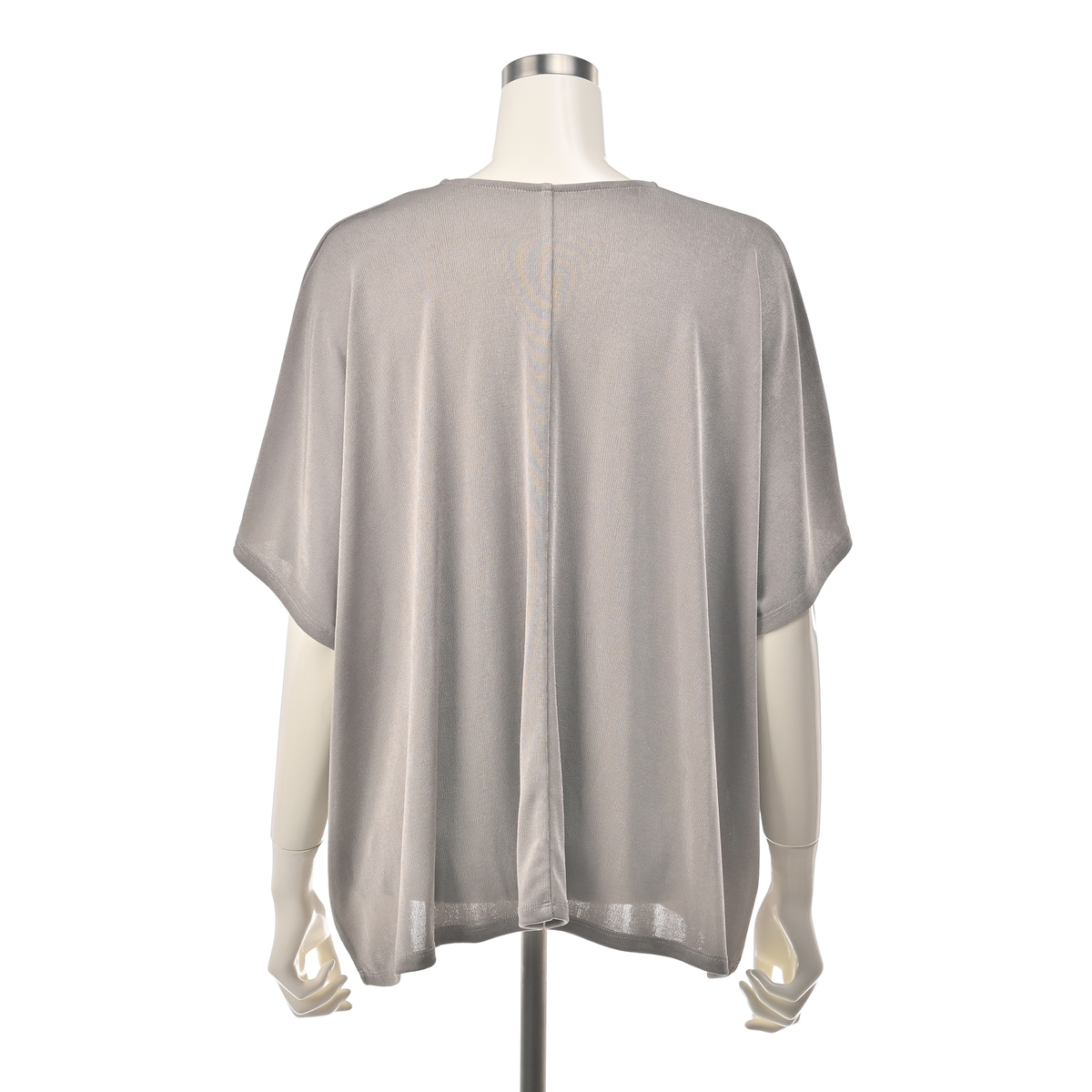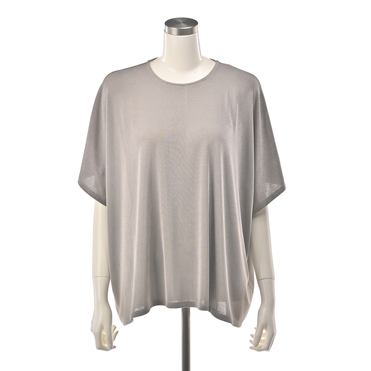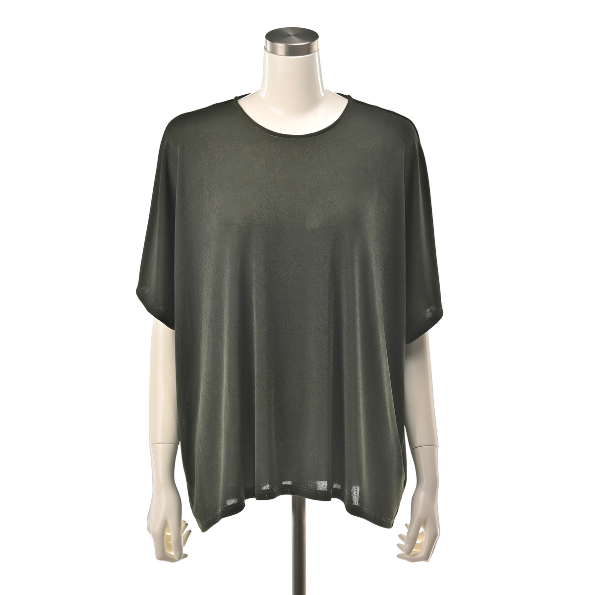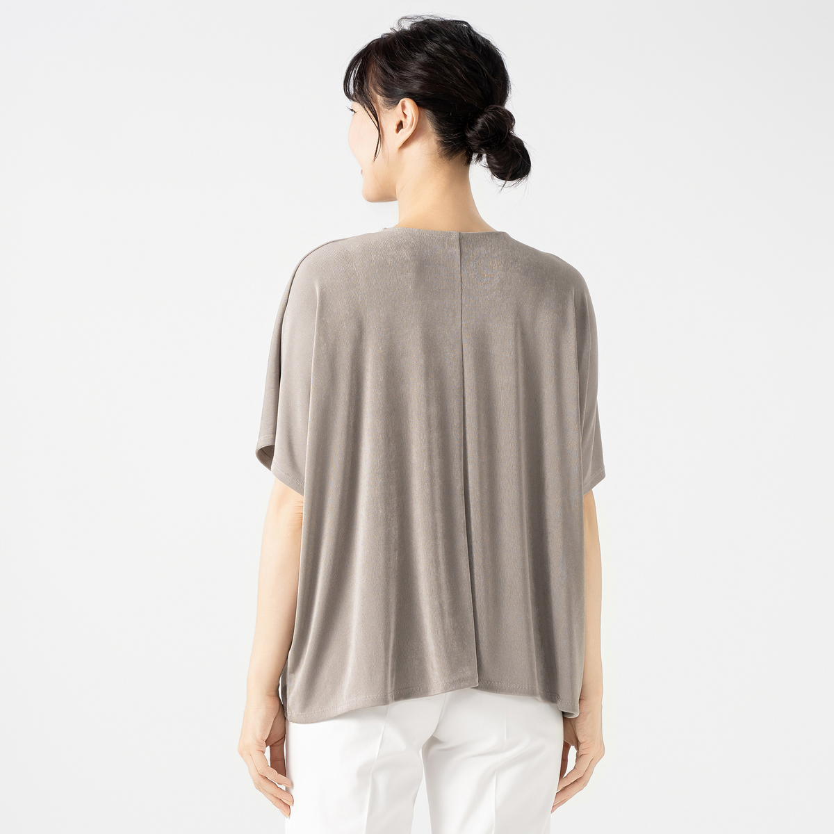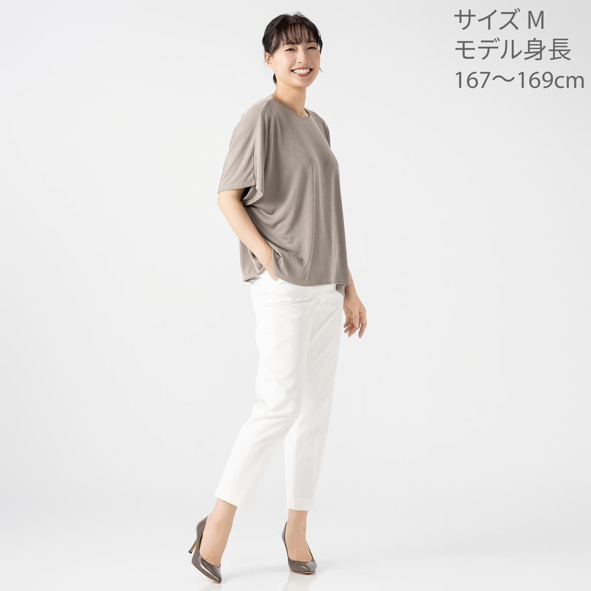 袖がしっかりと二の腕を隠し、ゆったりとしたシルエットと落ち感で体型をカバーしてくれます