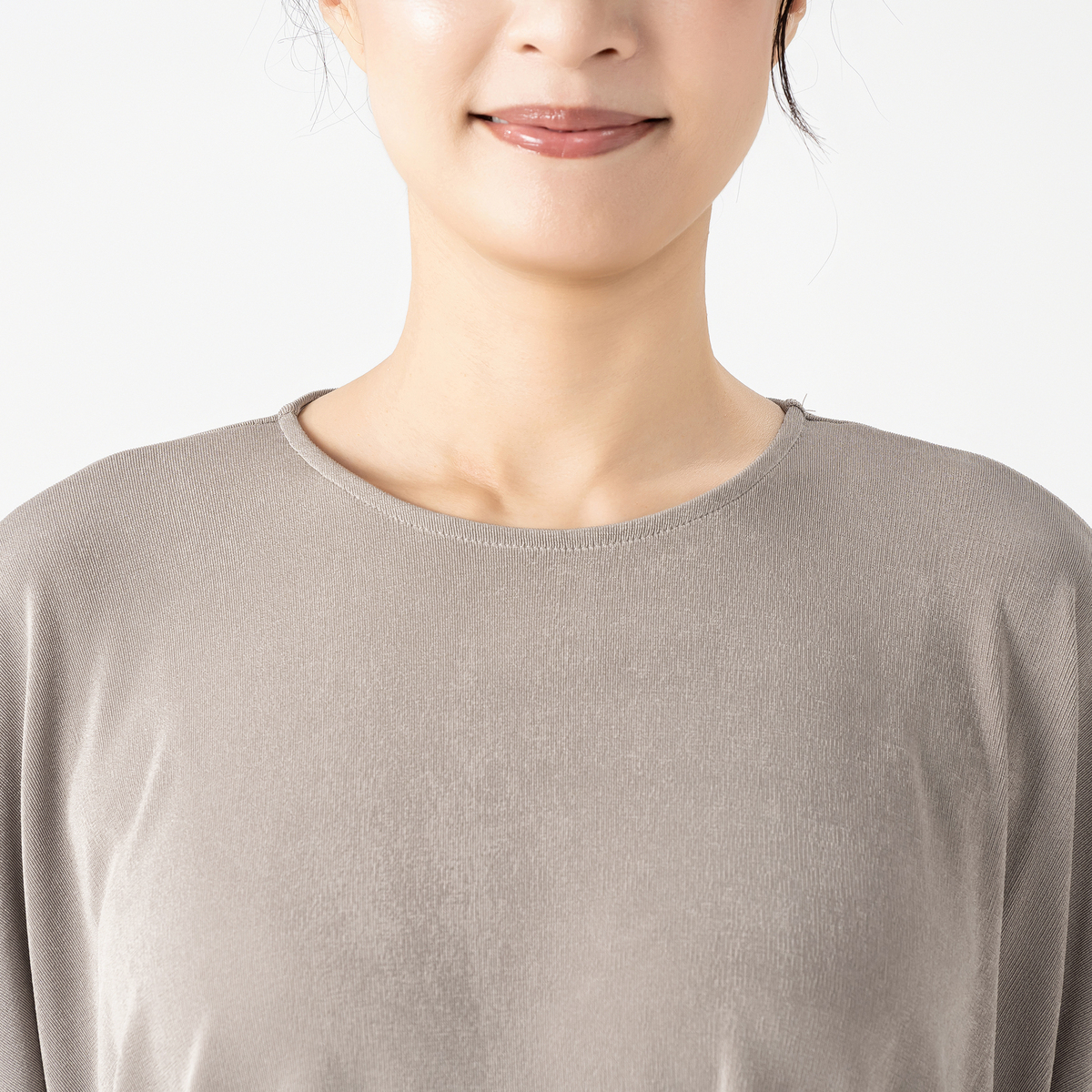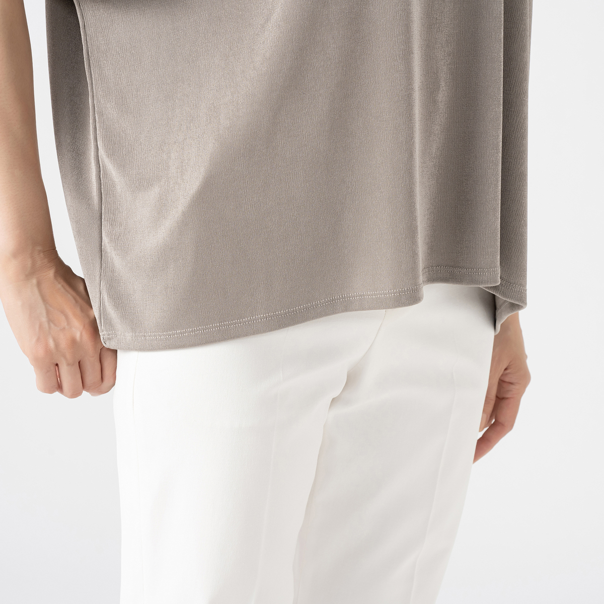 良く伸び、柔らかで弾力性のある素材感。通気性が良く、接触冷感、防しわの機能性も備えています