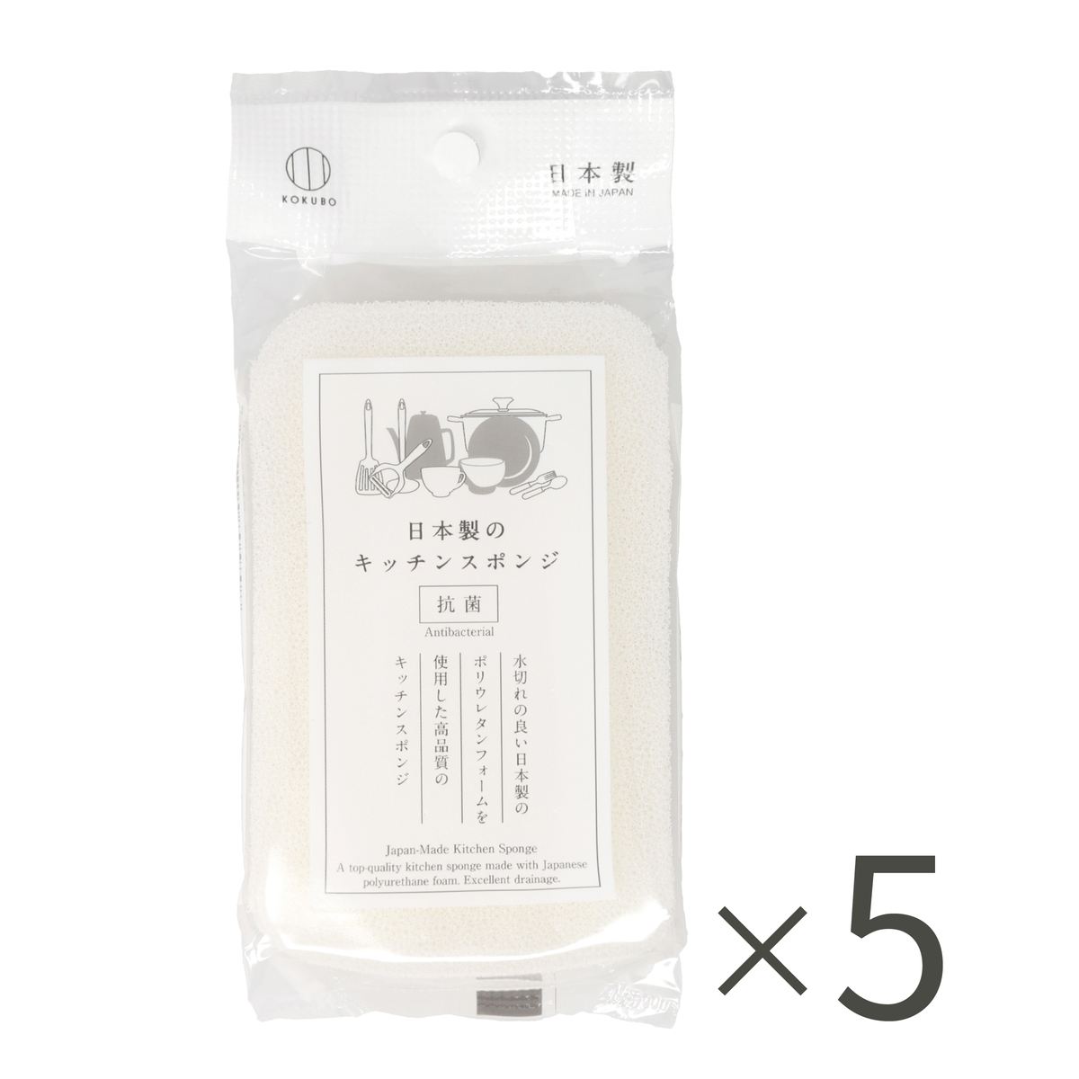 日本製のキッチンスポンジ ホワイト 抗菌加工 5個セット