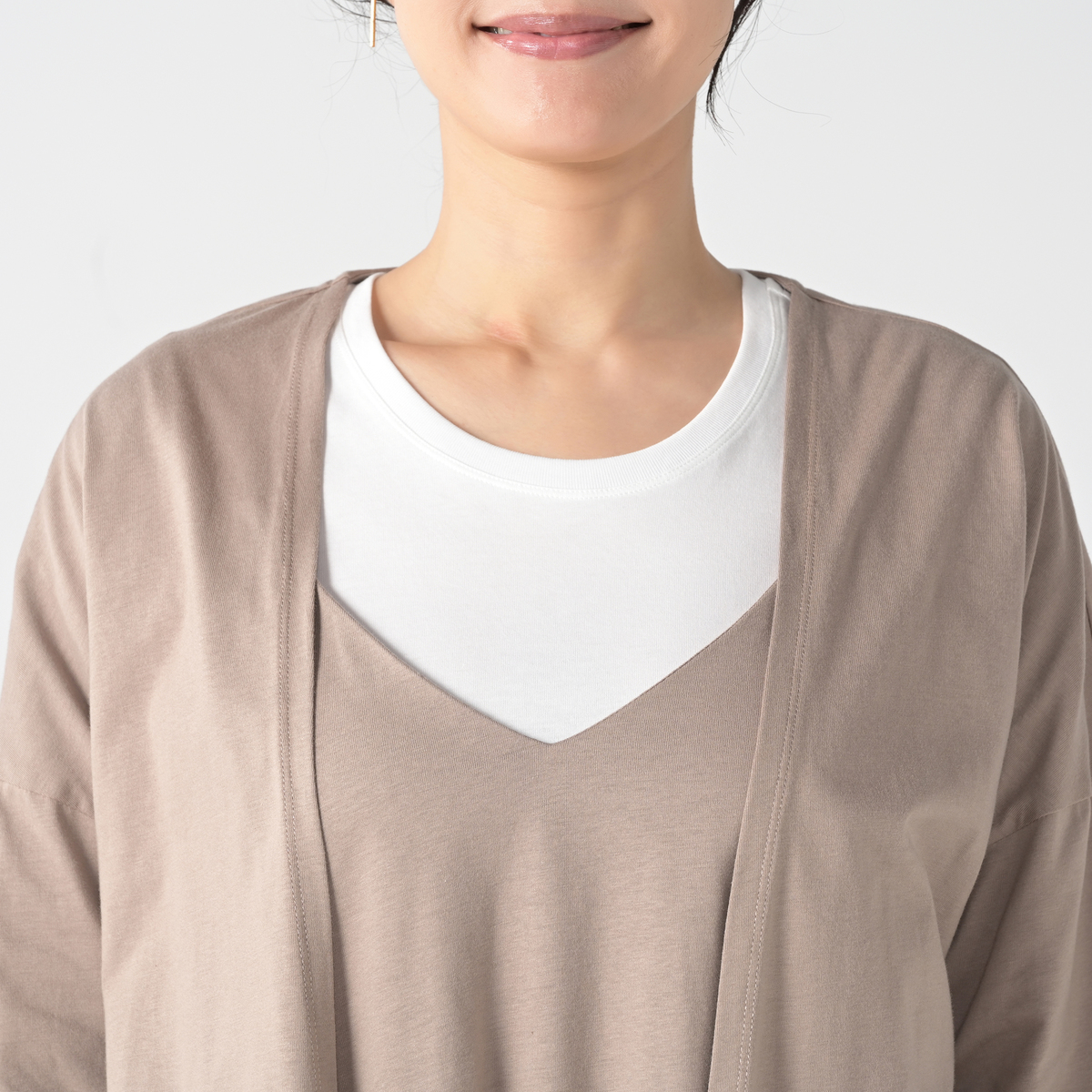 普段着からリゾート、プールサイドなど、様々なシチュエーションで活躍。セットできるワンピースと合わせれば、上品なリラックススタイルが完成します