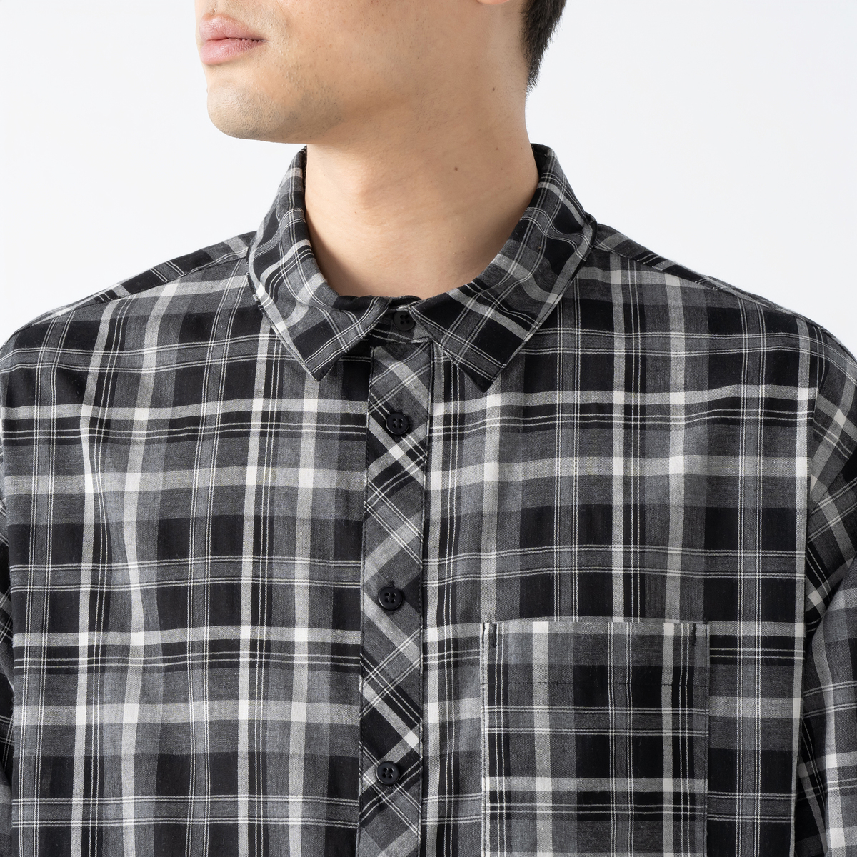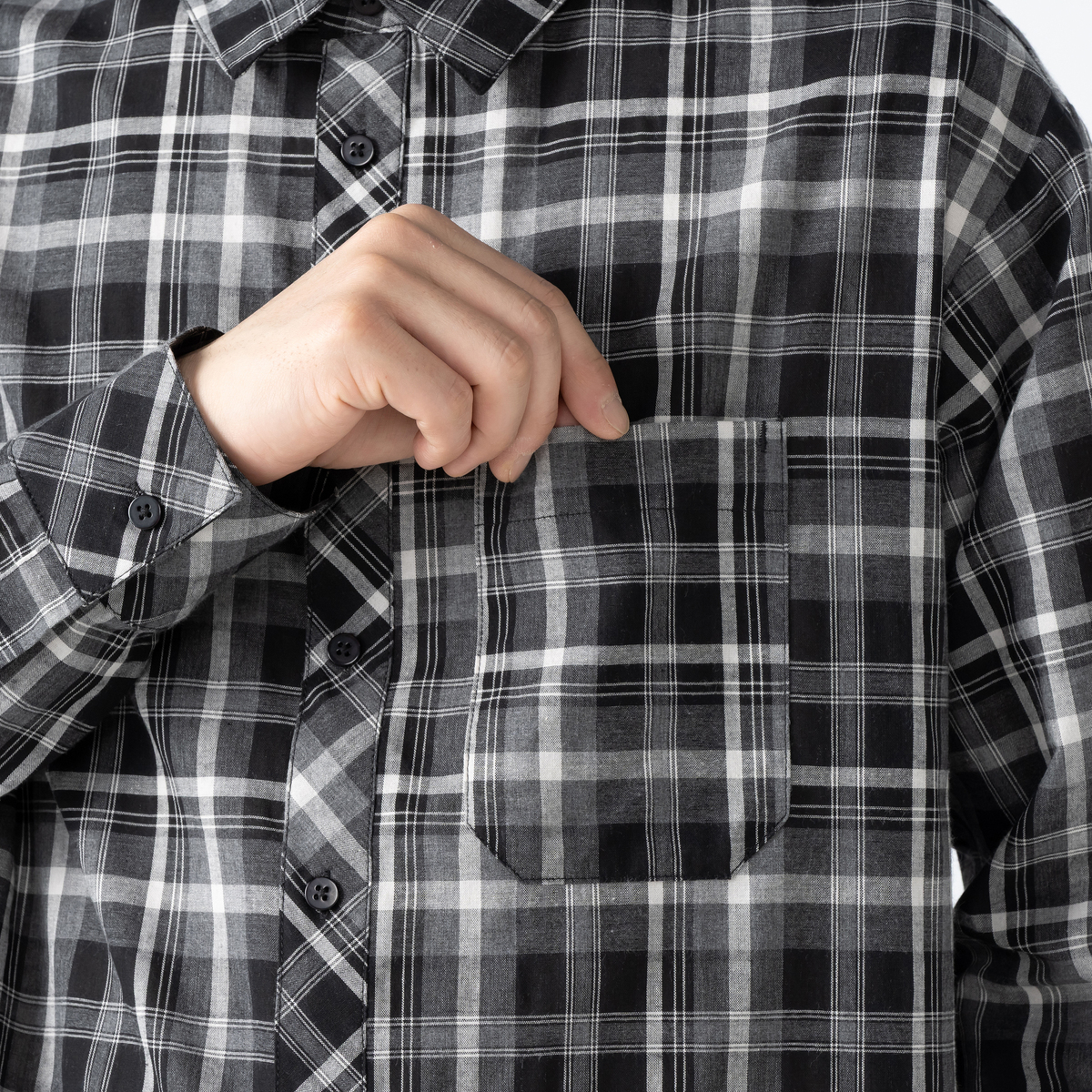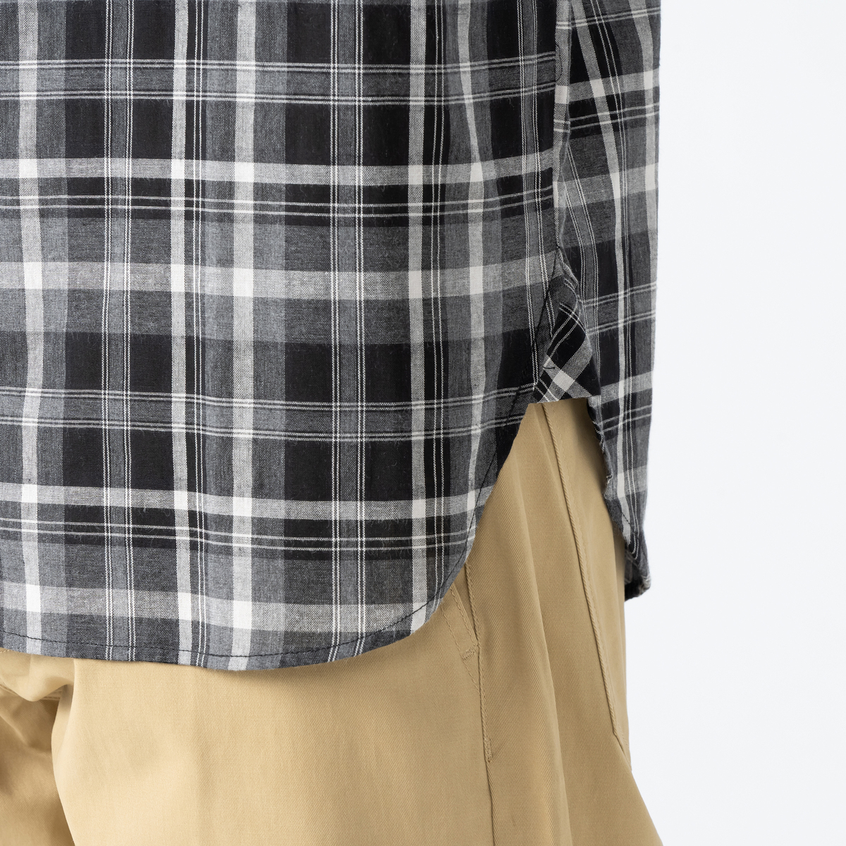大人のカジュアルスタイルに活躍してくれる、たっぷりとしたリラックスシルエットのチェックシャツ。綿混の先染めチェック素材を使用しました