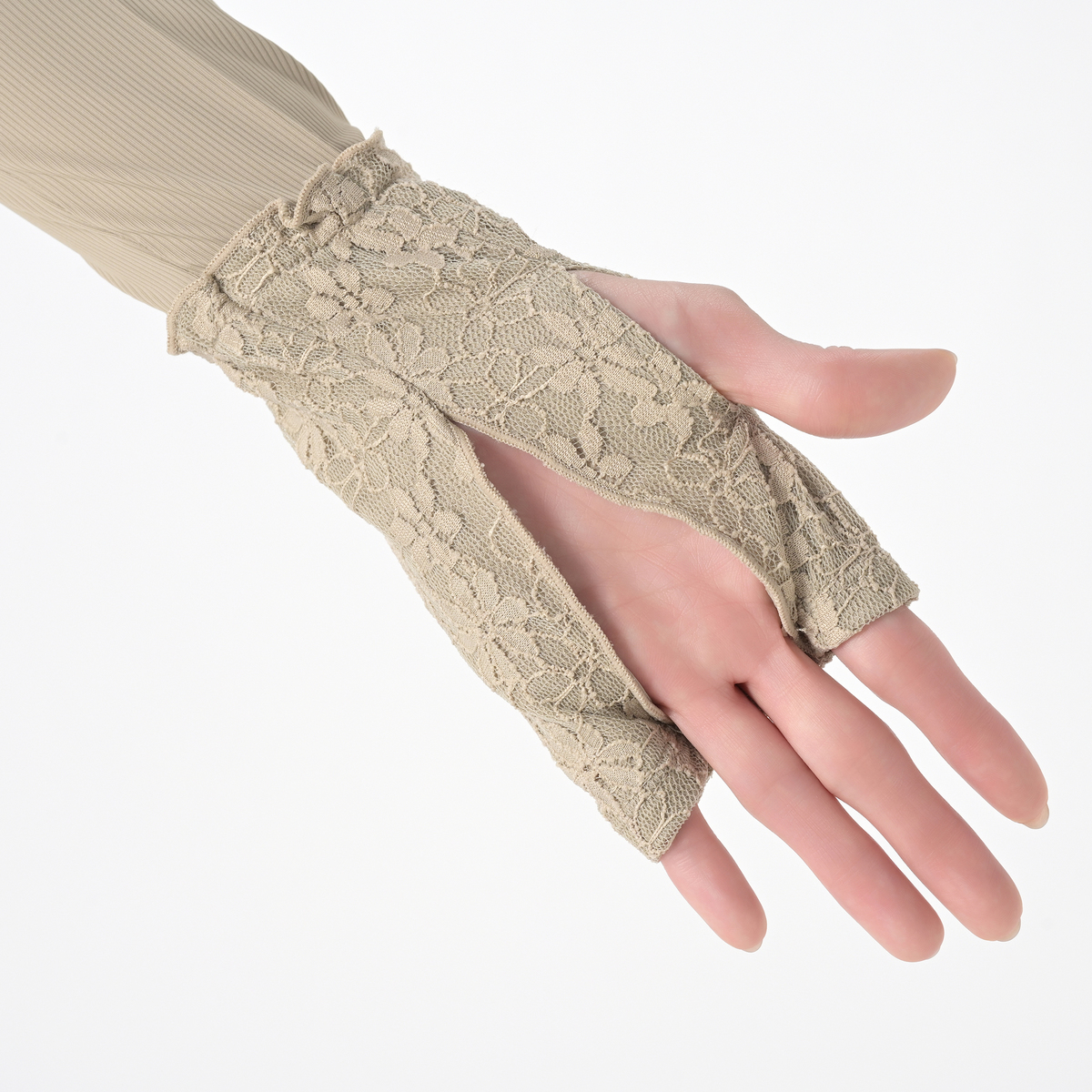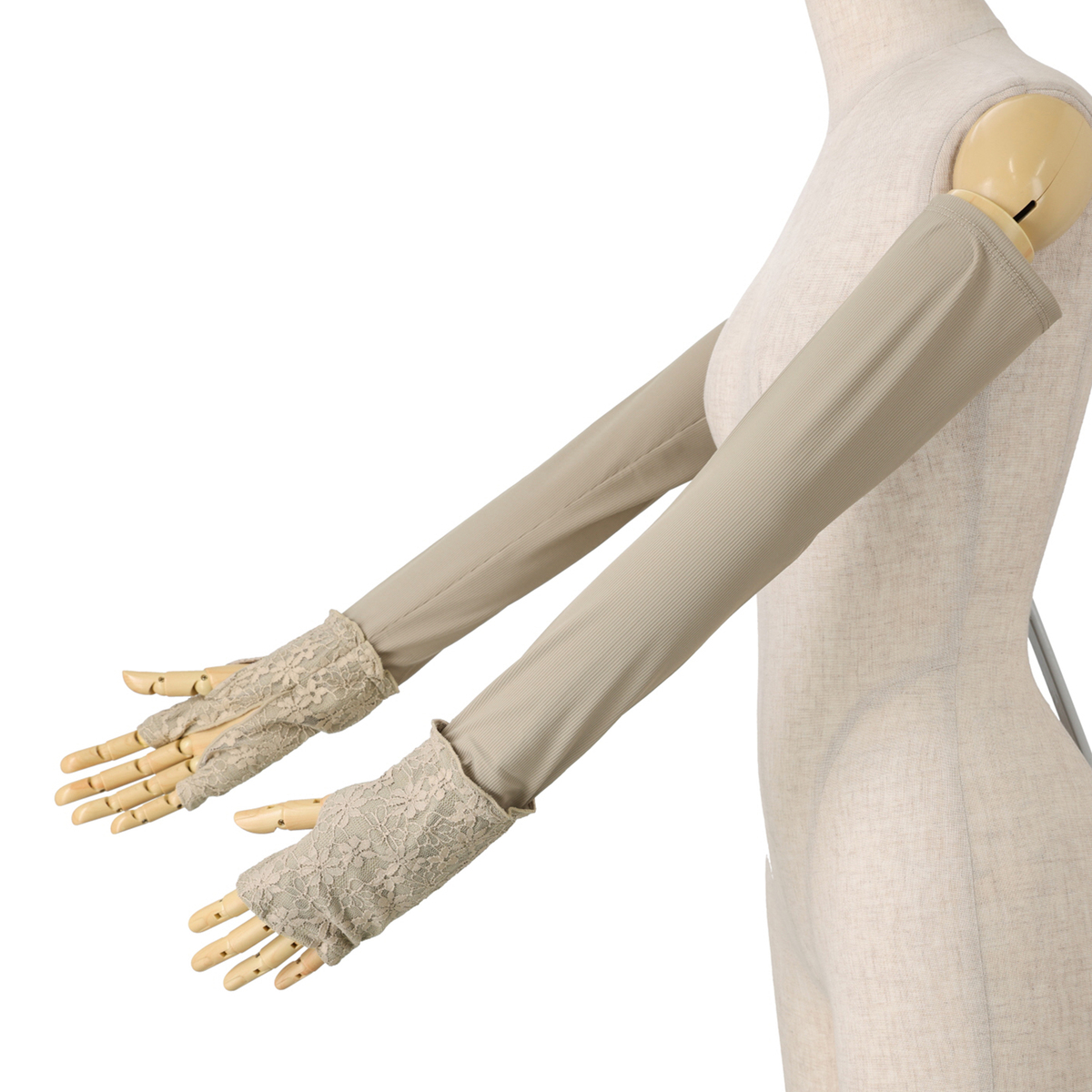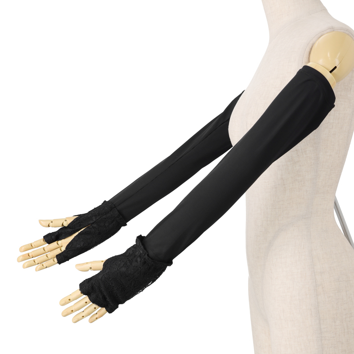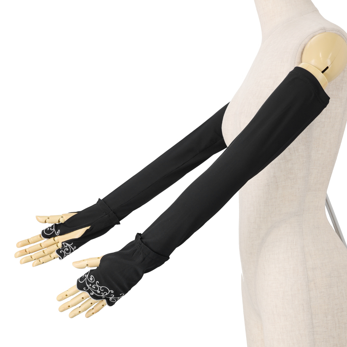 [サイズ(約)] 長さ55×袖口18×腕周り23cm [重量(約)] 55g [素材] <本体> ナイロン87% ポリウレタン13% <刺しゅう> 刺しゅう糸: 上糸 レーヨン100% 下糸 ポリエステル100% <レース> レース部分:ナイロン90% ポリウレタン10% [お手入れ] 手洗い可 [注意事項] ※単独で手洗いし、形を整えて日陰で吊干ししてください ※ご使用時、素材の特性上周囲のものとの摩擦や引っ掛かりにご注意ください ※水や汗等により色落ちすることがありますのでご注意ください ※直射日光や蛍光灯の長時間照射により色褪せすることがあります 【中国製】