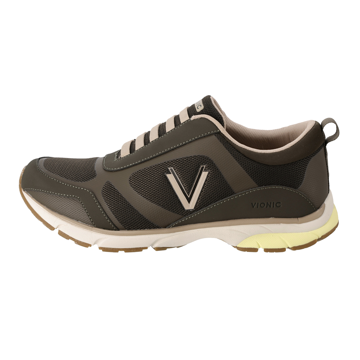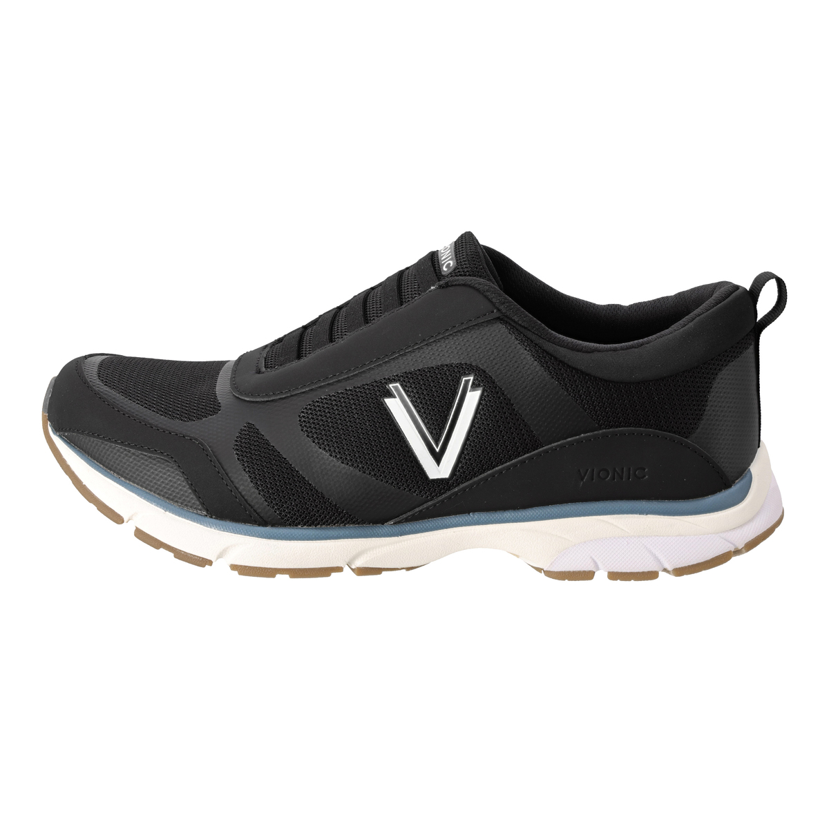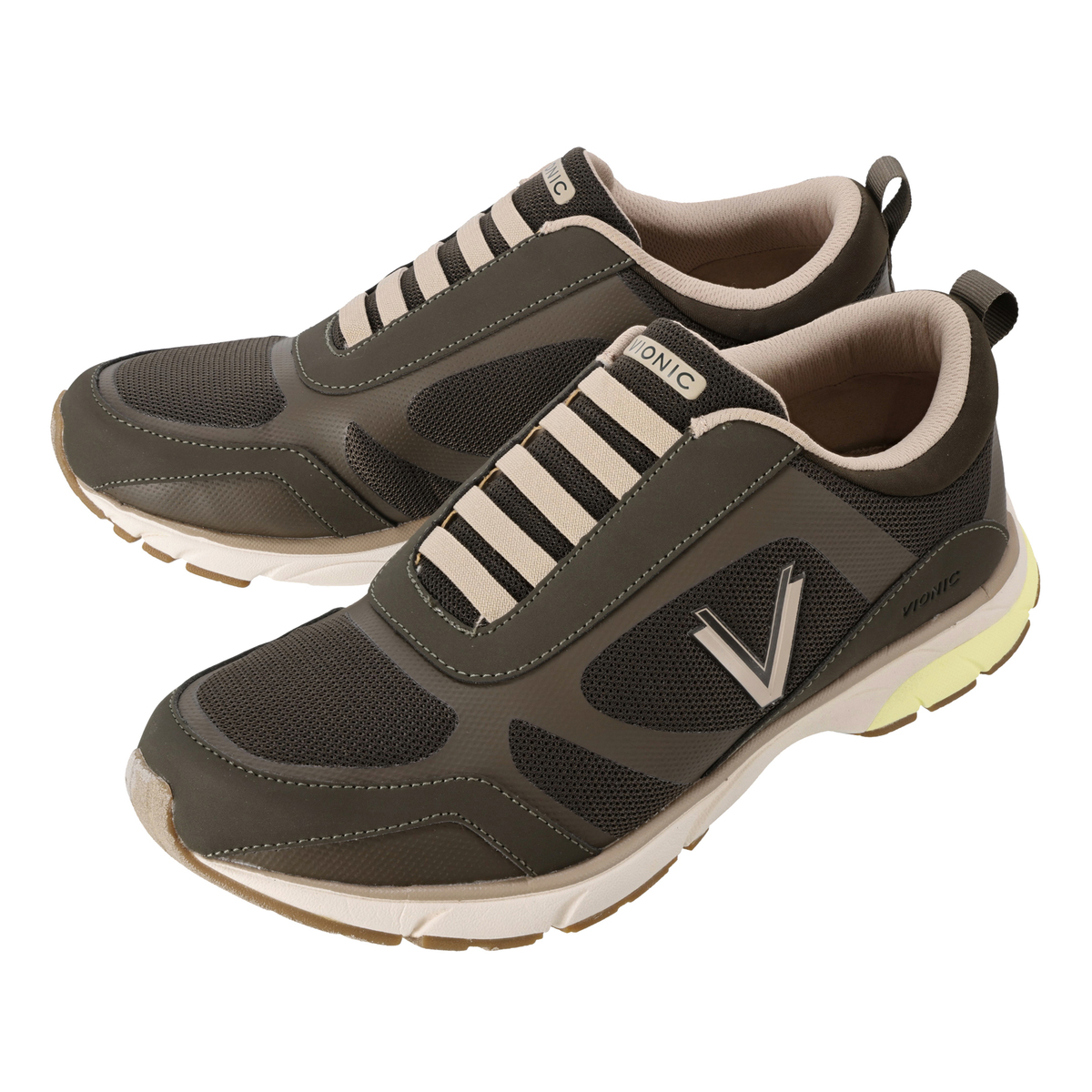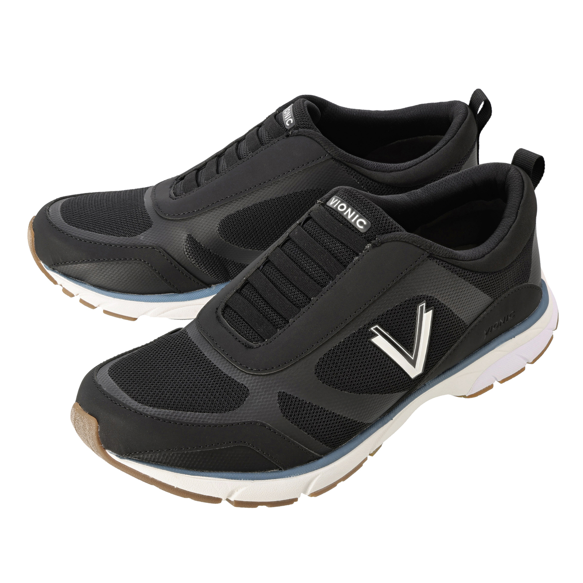 脱ぎ履きに紐を結ぶ必要がないストレッチレーススニーカー。軽量のメッシュアッパーに、バイオニックのロゴがデザインされています。足病医が開発したバイオメカニクス構造の取り外し可能なオーソティック(足底板)には、Vionicテクノロジーを搭載。足裏部分に掛かる負担や疲労を軽減するように設計されています