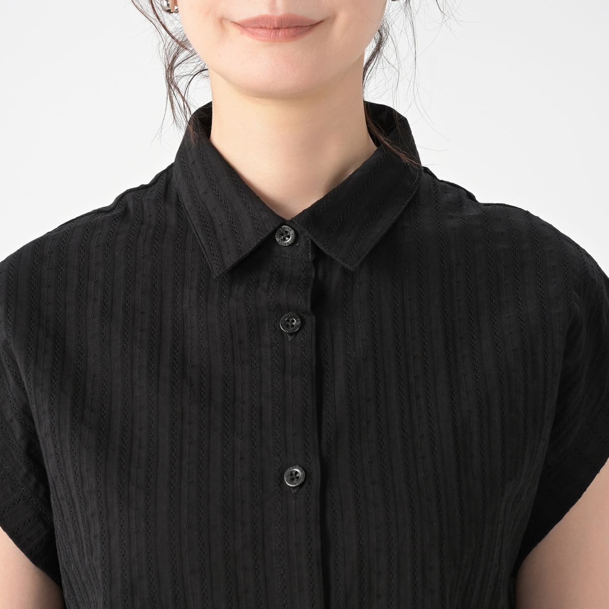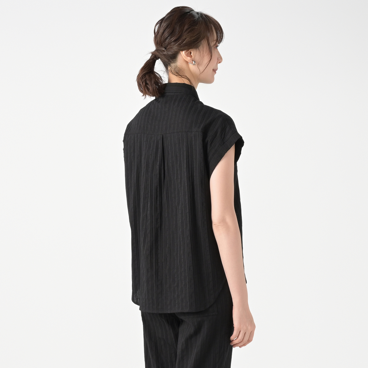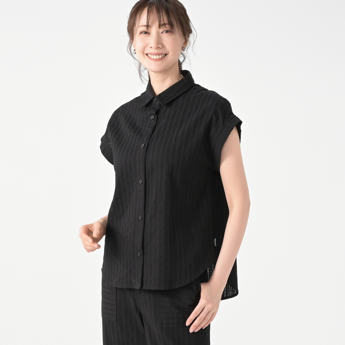 爽やかなフレンチスリーブのシャツ。フレンチスリーブが、二の腕まわりをすっきりとした印象に見せてくれます