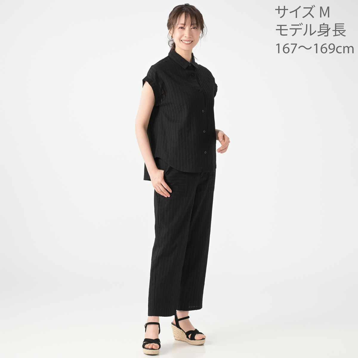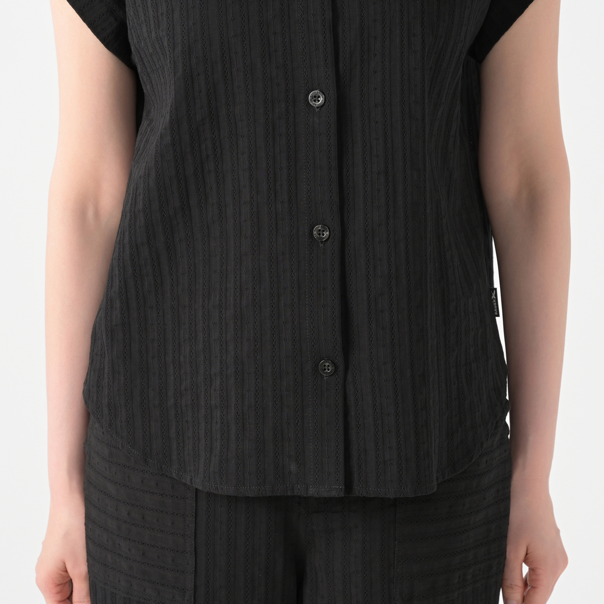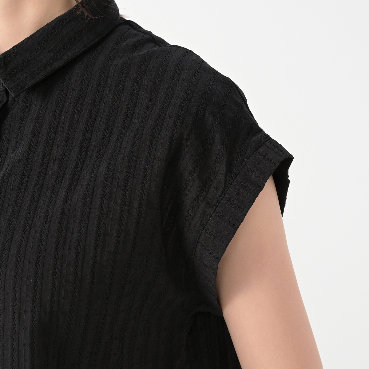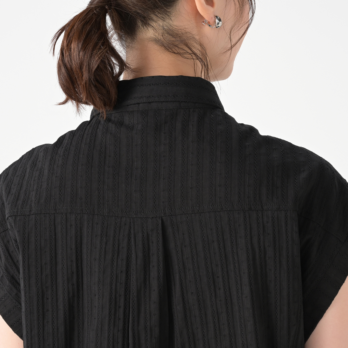 爽やかなフレンチスリーブのシャツ。フレンチスリーブが、二の腕まわりをすっきりとした印象に見せてくれます