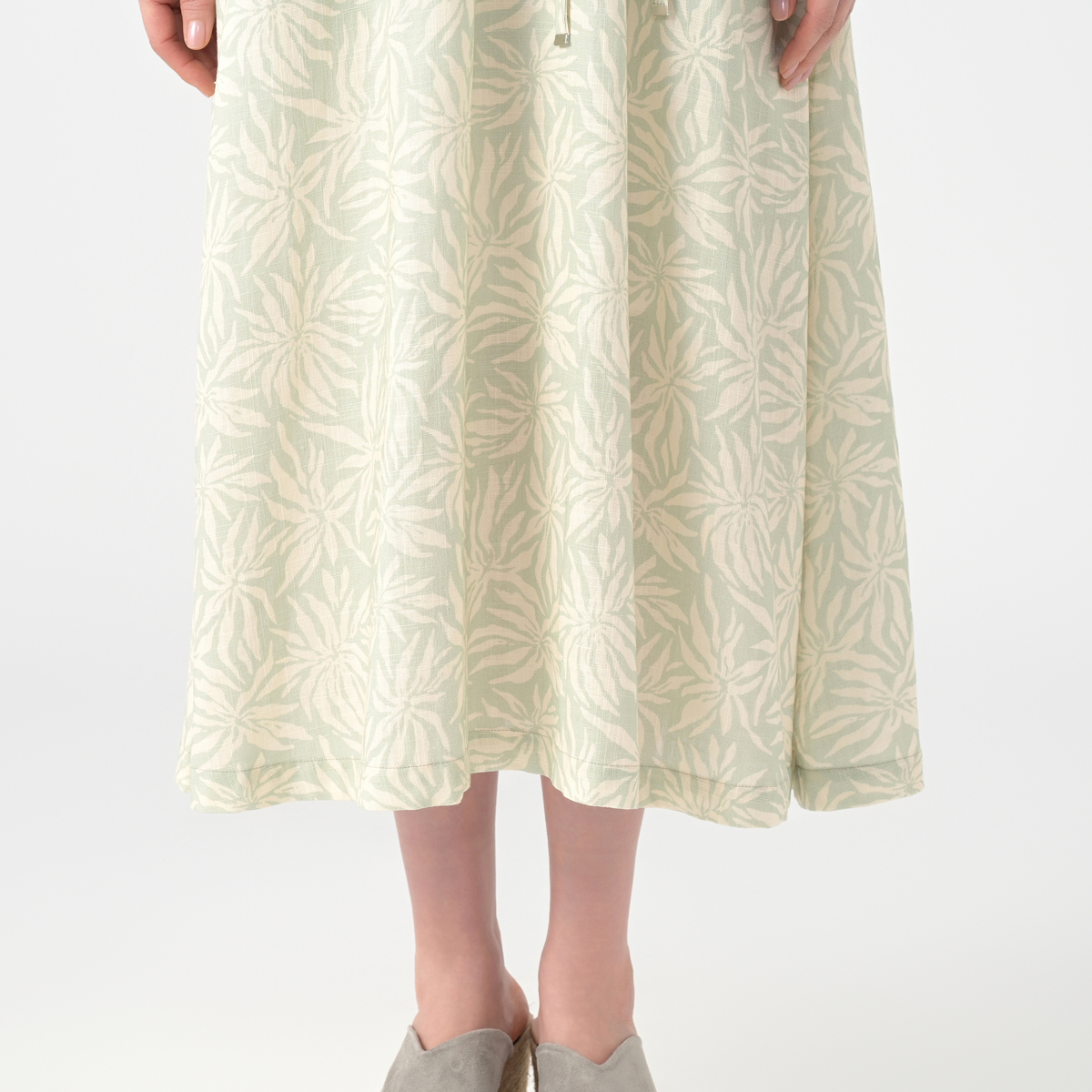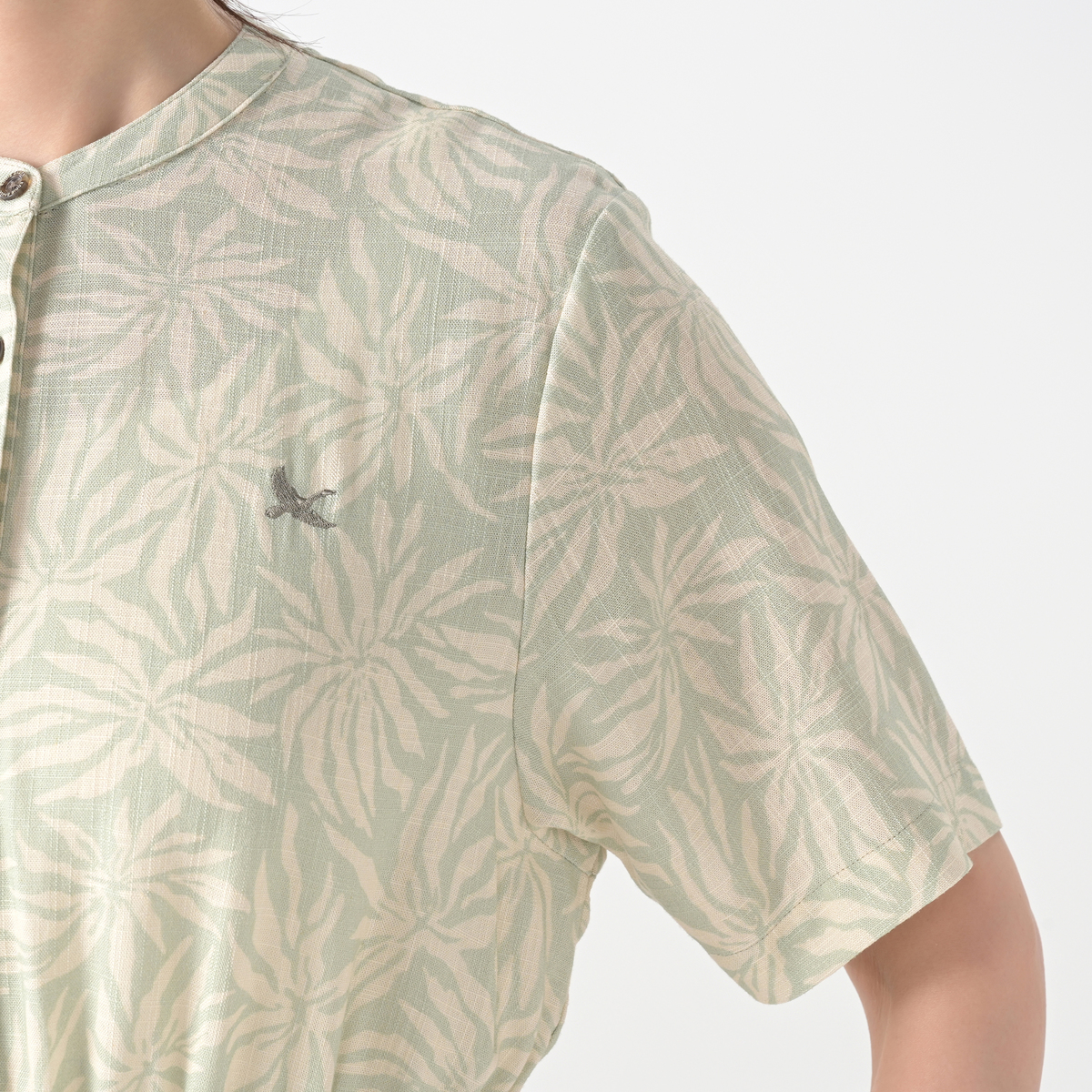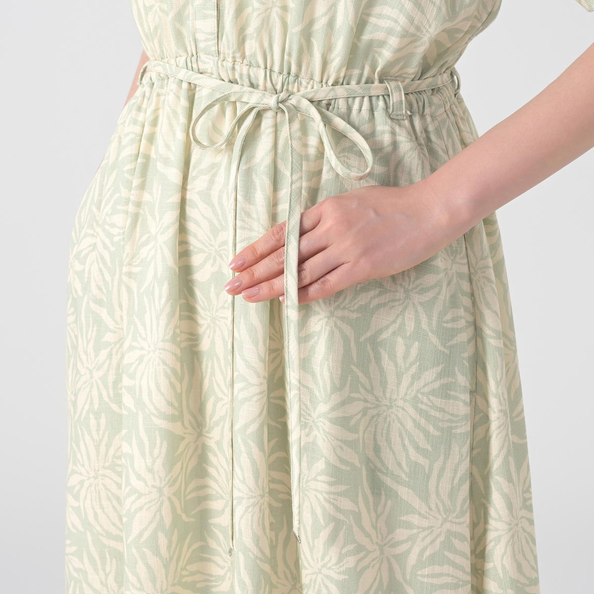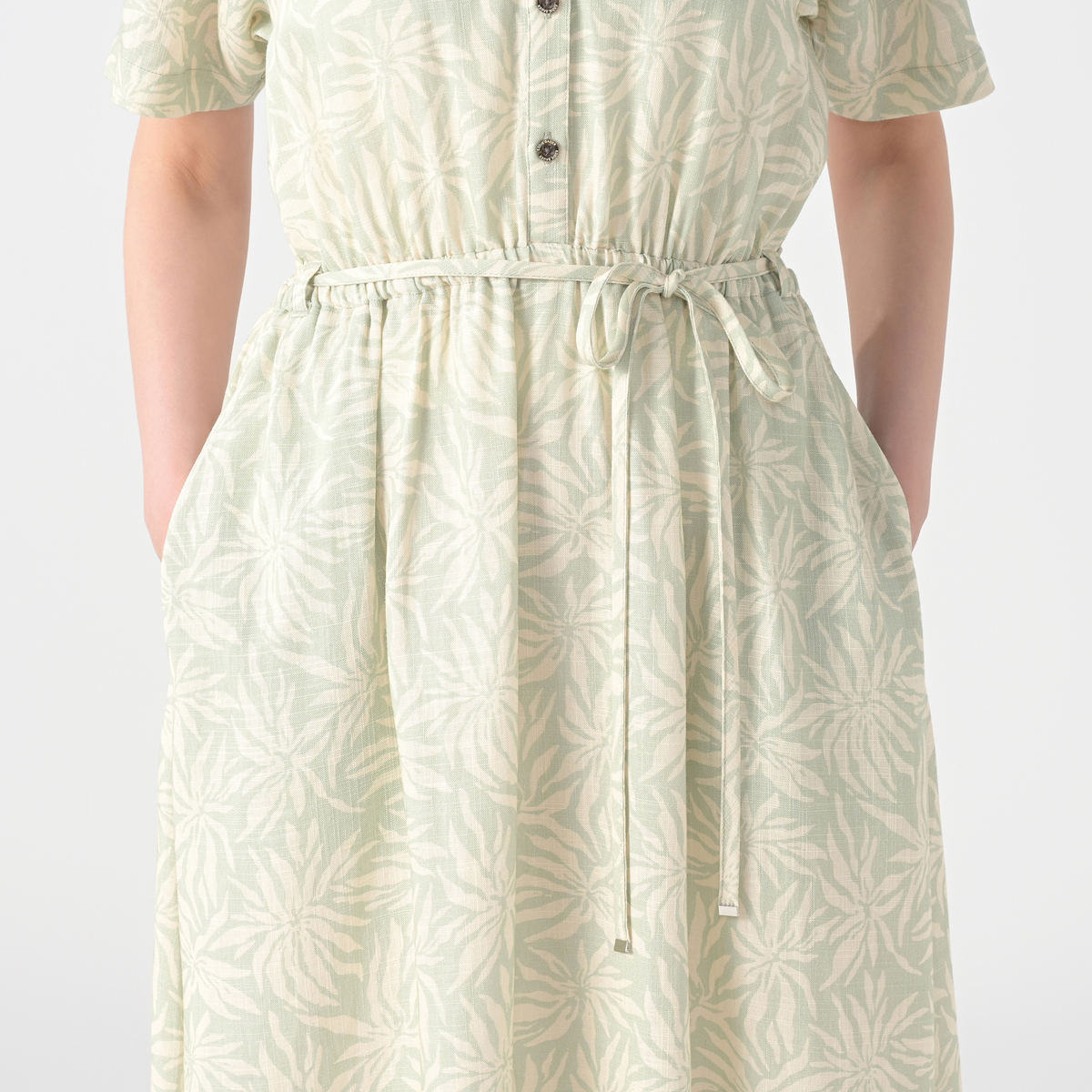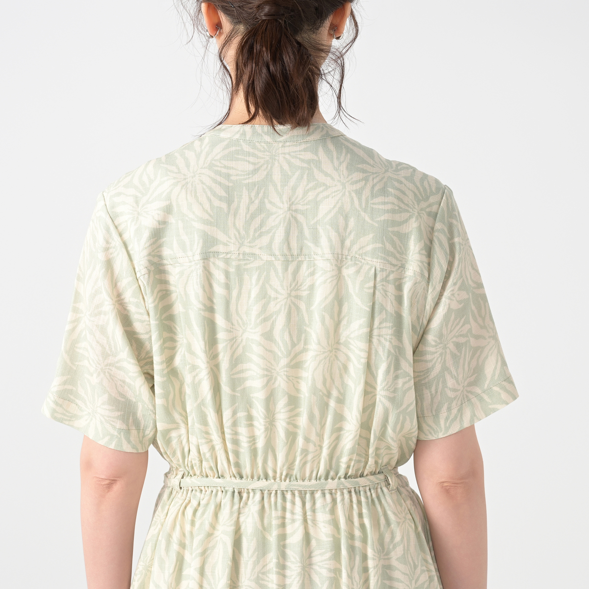 リゾート感のあるリーフ柄のワンピース。1枚着るだけでおしゃれに決まります