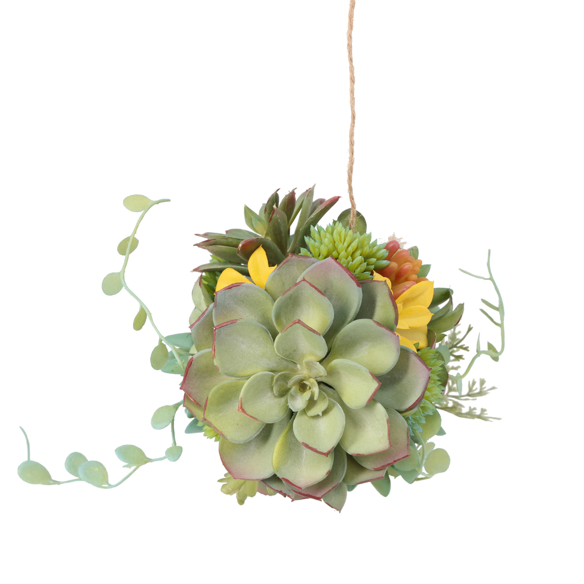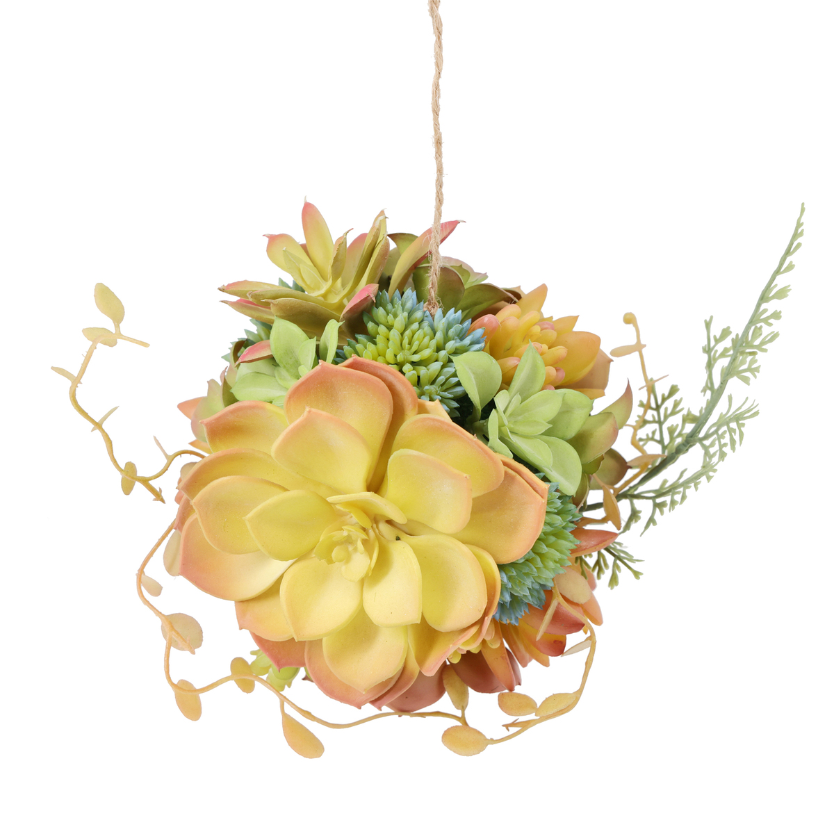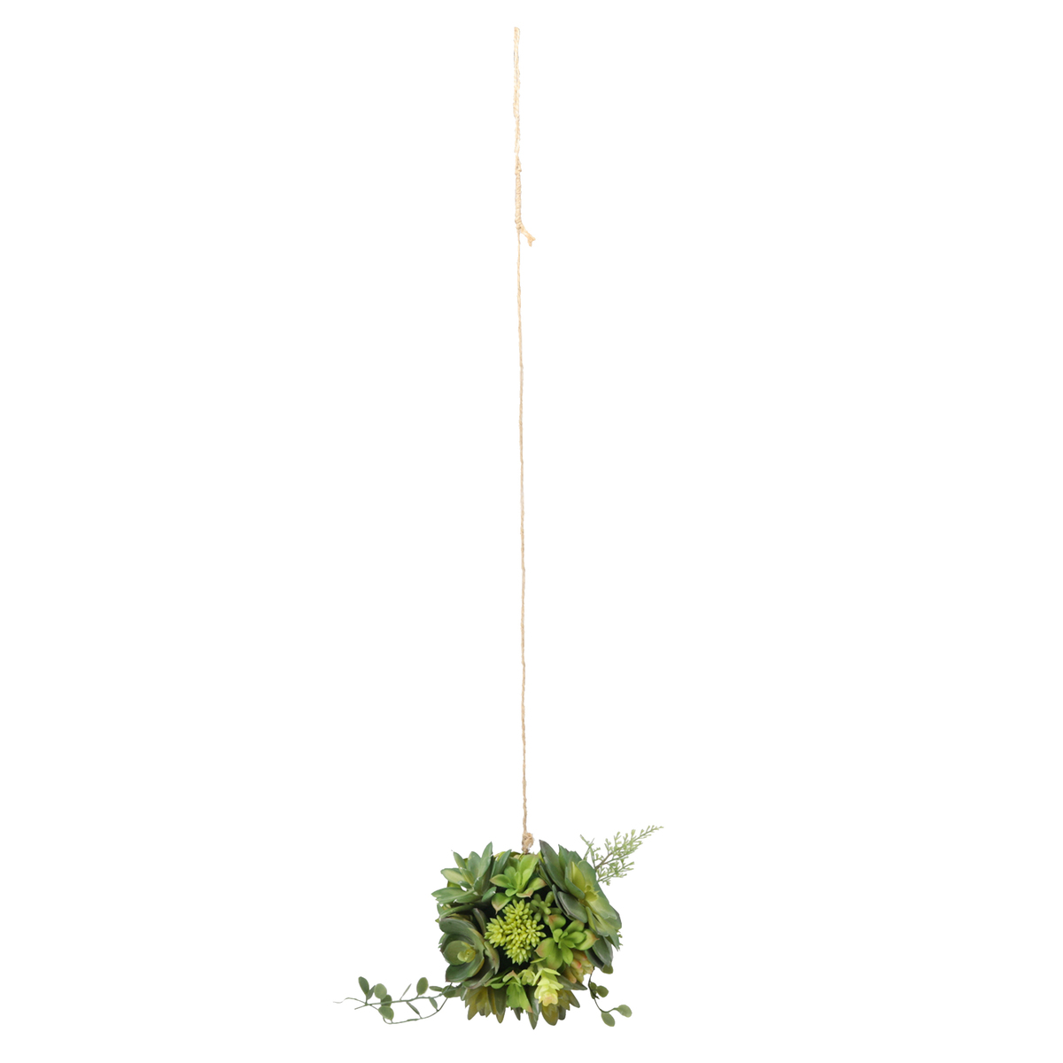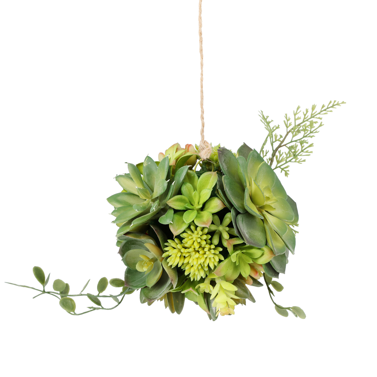 吊り下げるだけで存在感を放つ多肉ボールのアーティフィシャルグリーンです。飾るだけで印象的なアクセントになり、室内の雰囲気を明るくしてくれます