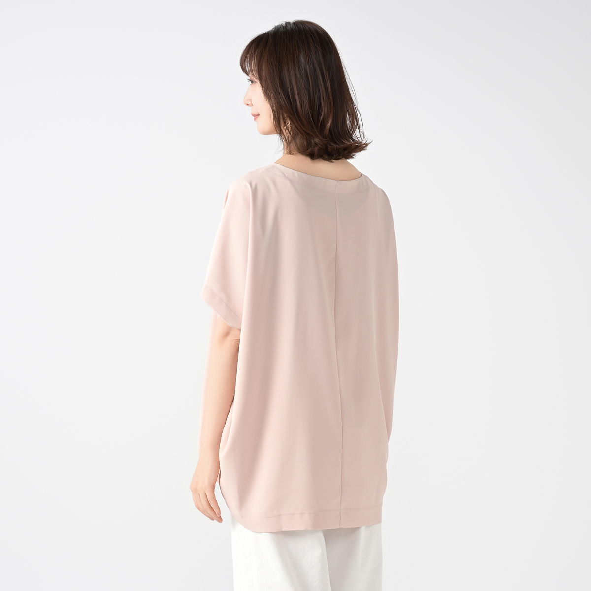 トライアングルカフがポイントのプルオーバー。腕が動かしやすく、抜け感を演出します。大きめで、1枚で着てもサマになり、汗ばむ季節でも体にまとわりつきにくいシルエットに仕上げました