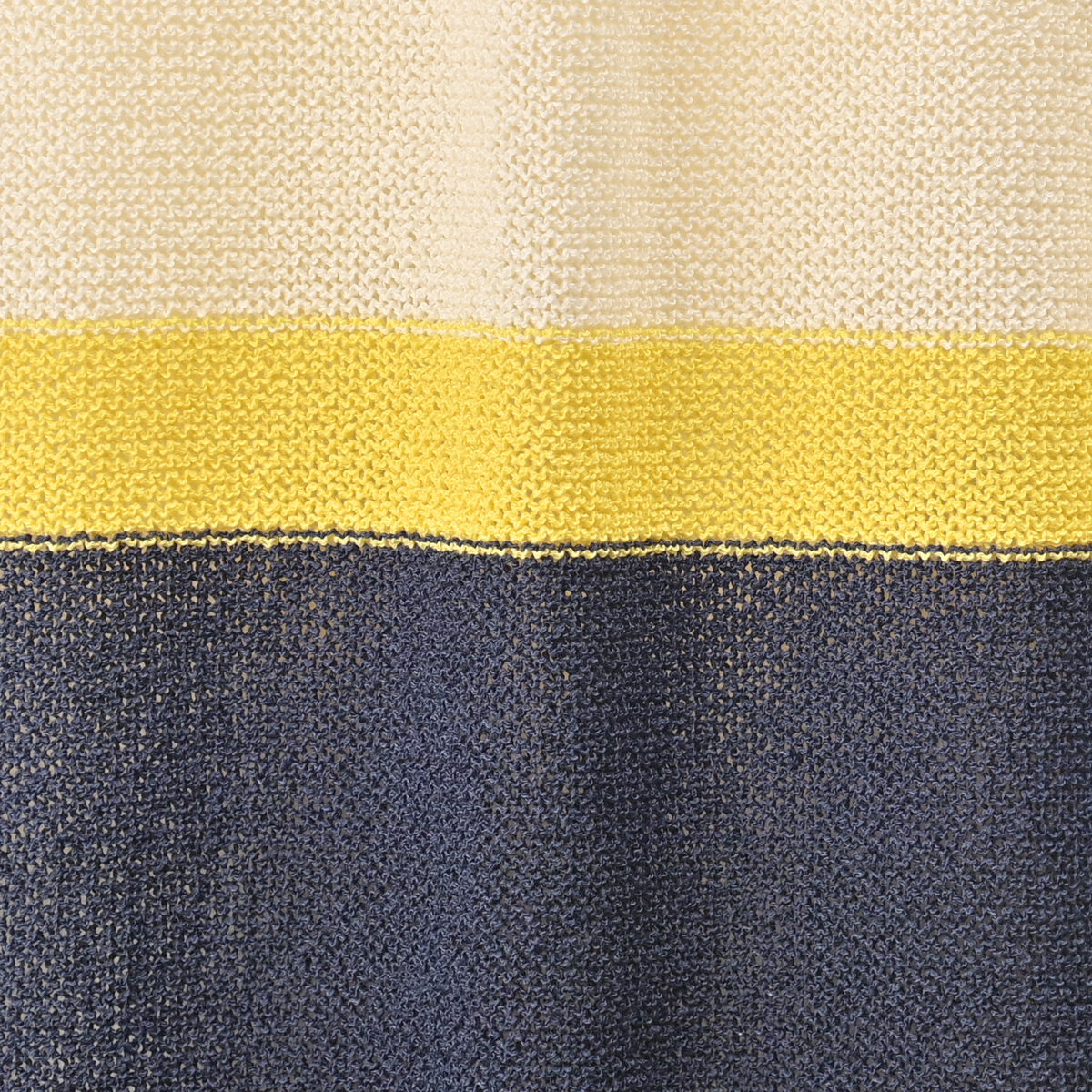 クリンプヤーンを使用したニットプルオーバー。すっきりとしたVネックと配色のライン使いがアクセントになっています