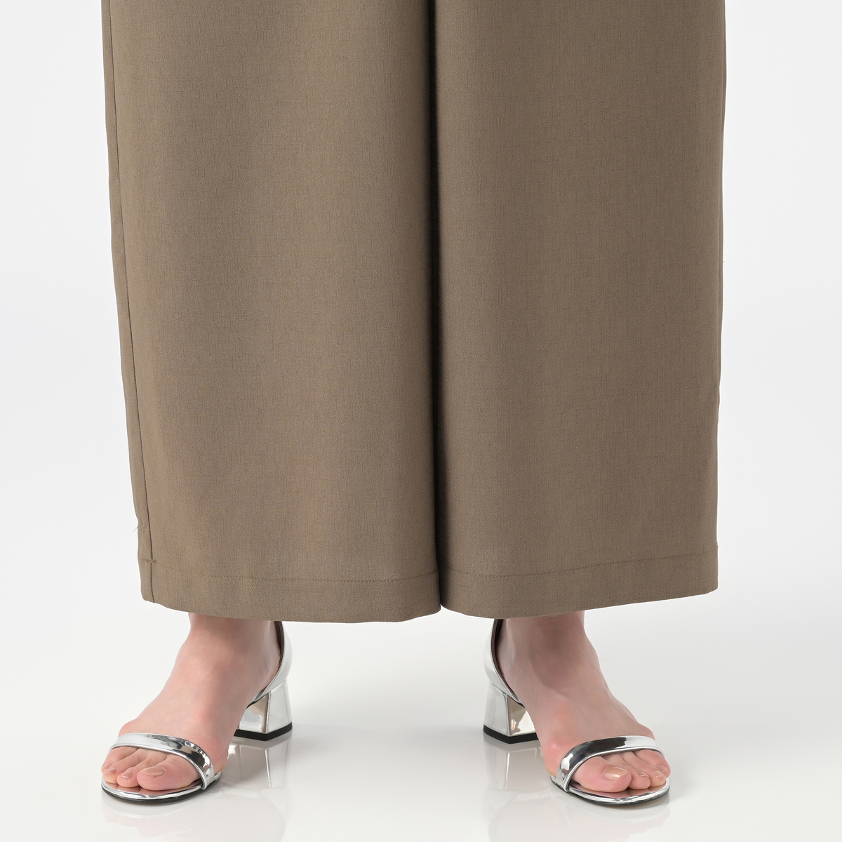 リネンライクのサラサラした生地感が気持ちいい麻調合繊の素材。サラッと涼やかな、ストレスフリーな着心地です。ラインシルエットですっきりと細見え効果が期待できます