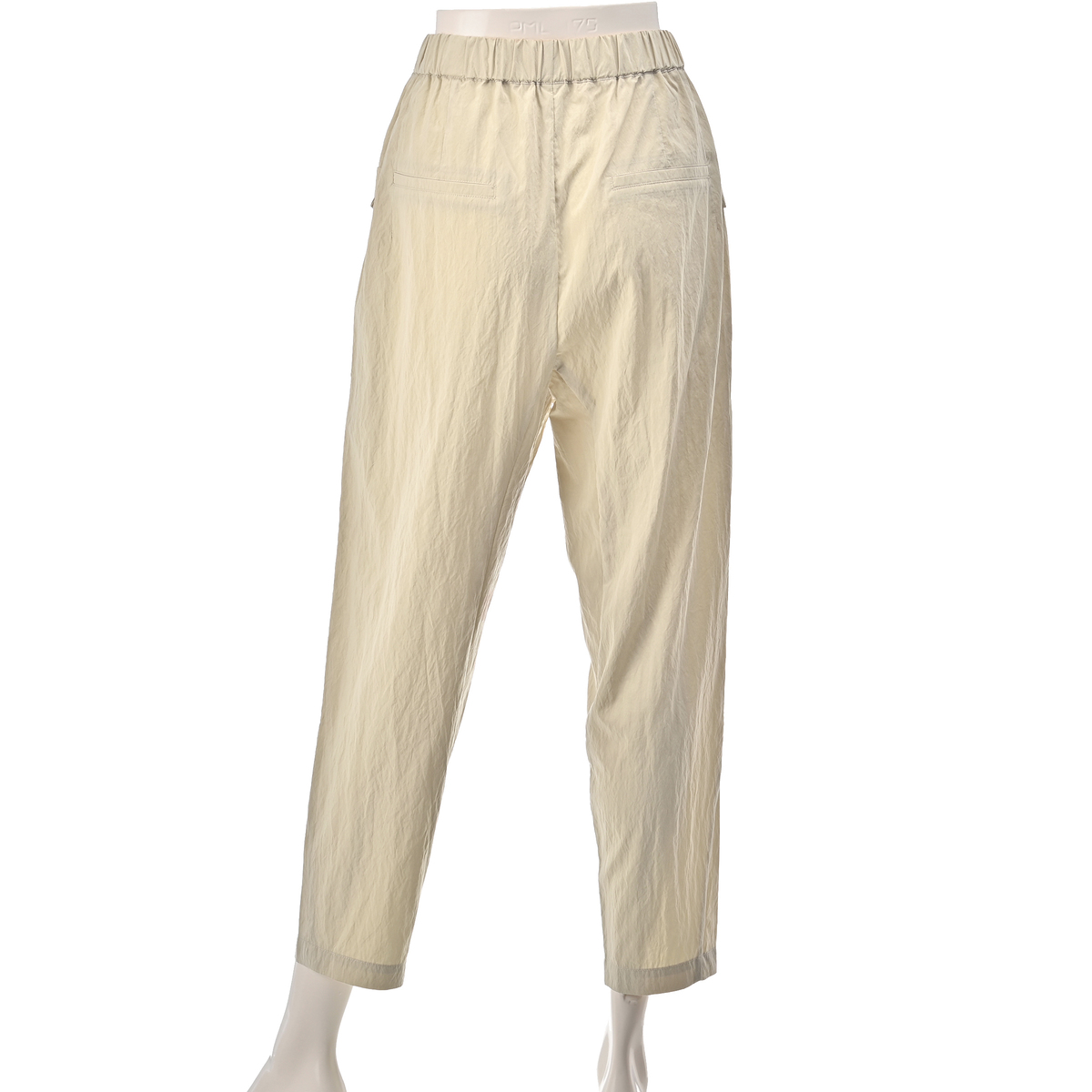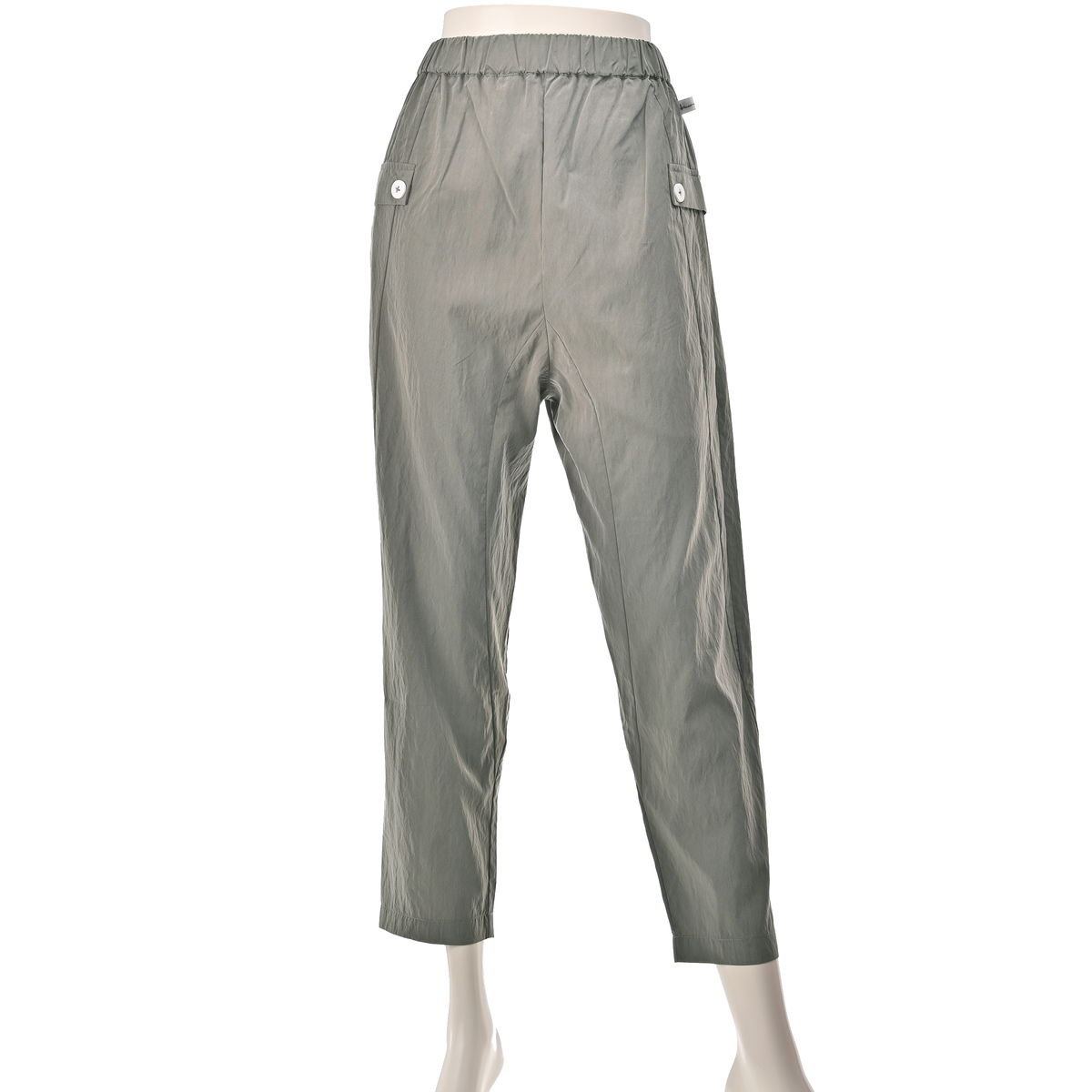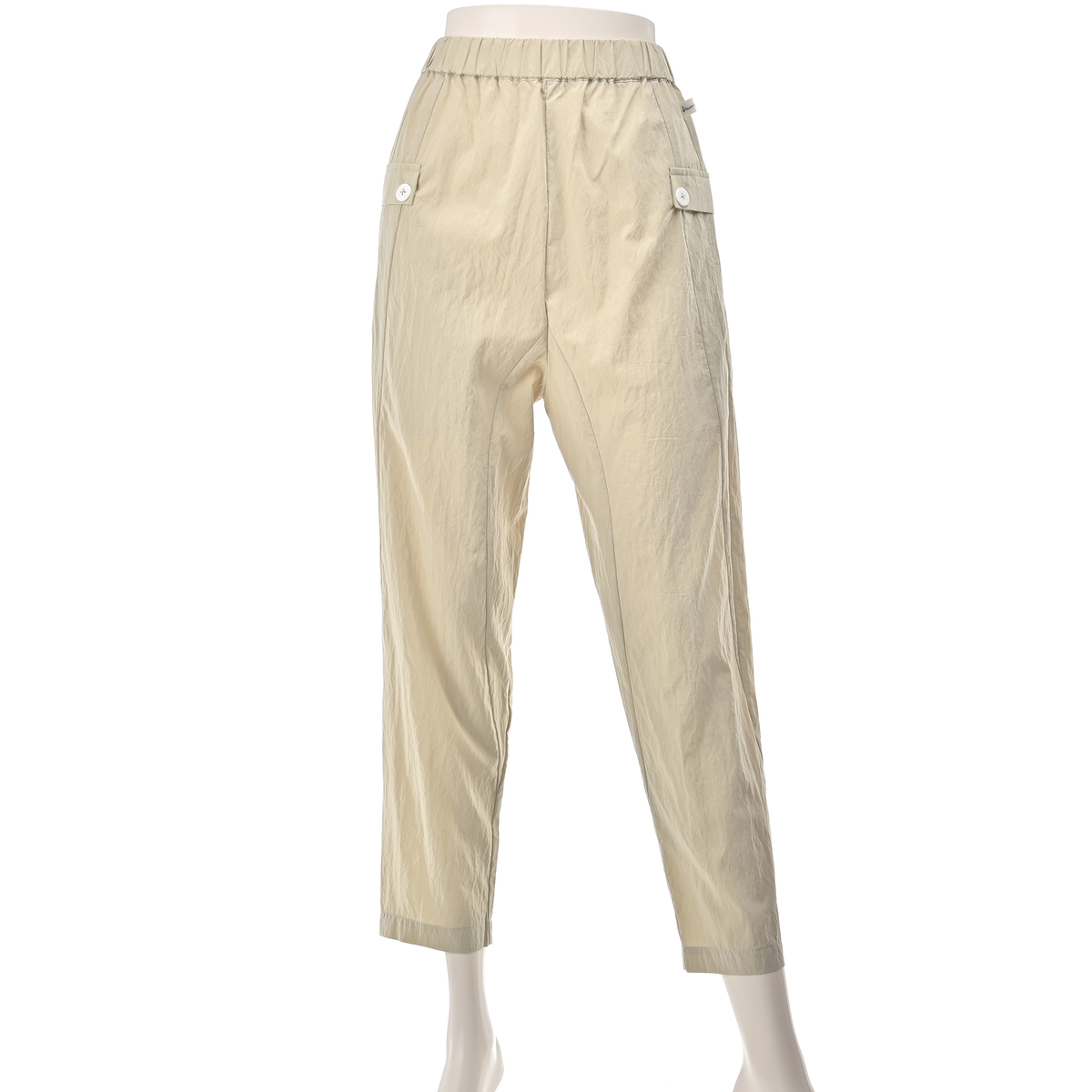 暑い季節に心地よいサラサラ素材で仕立てたパンツ。サイド切替のデザインで、立体的なパターンが美しいシルエットを演出。左右脇のポケットが実用性を高め、細かいディティールにも気を使ったKawaiOkadaらしいパンツです
