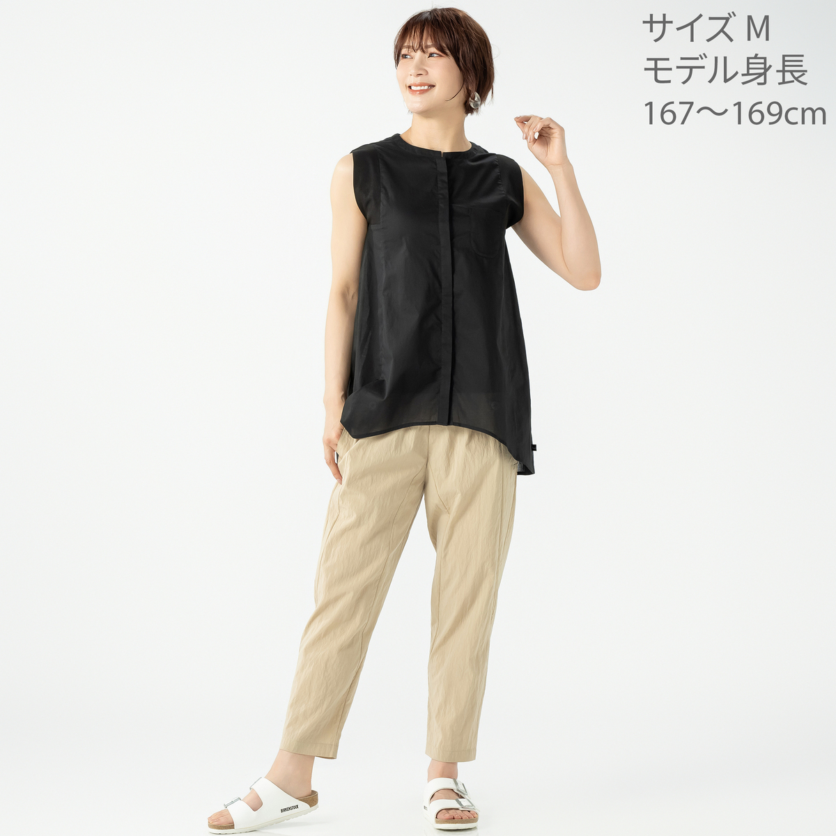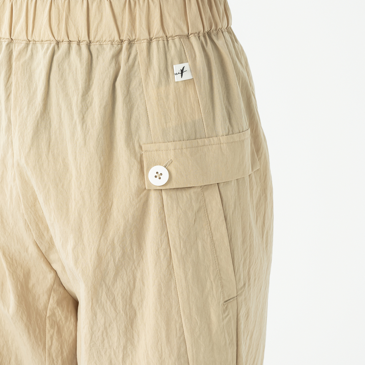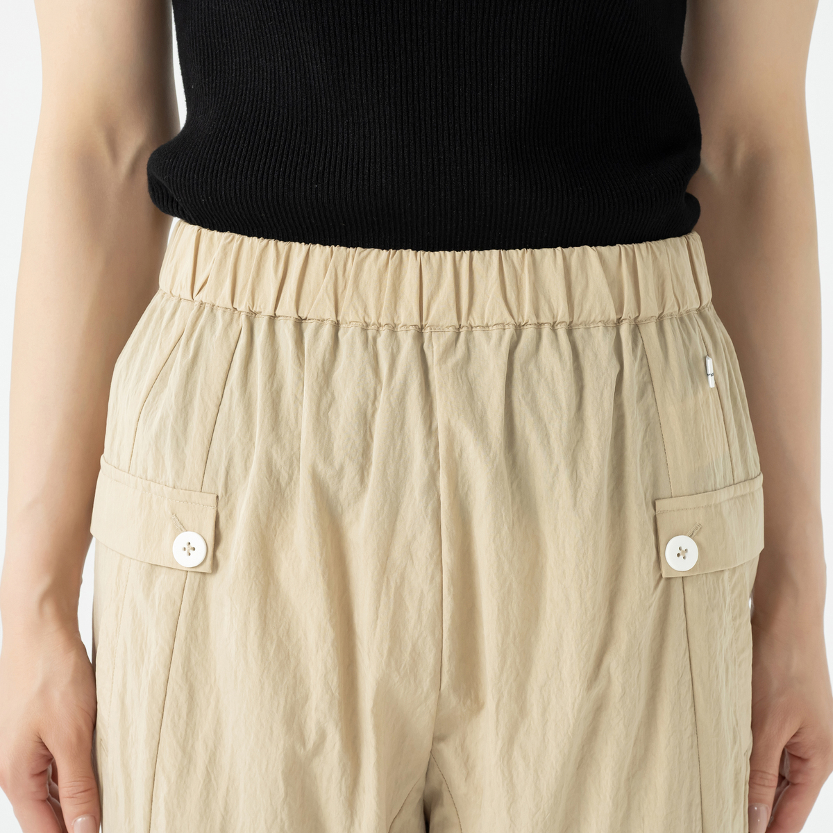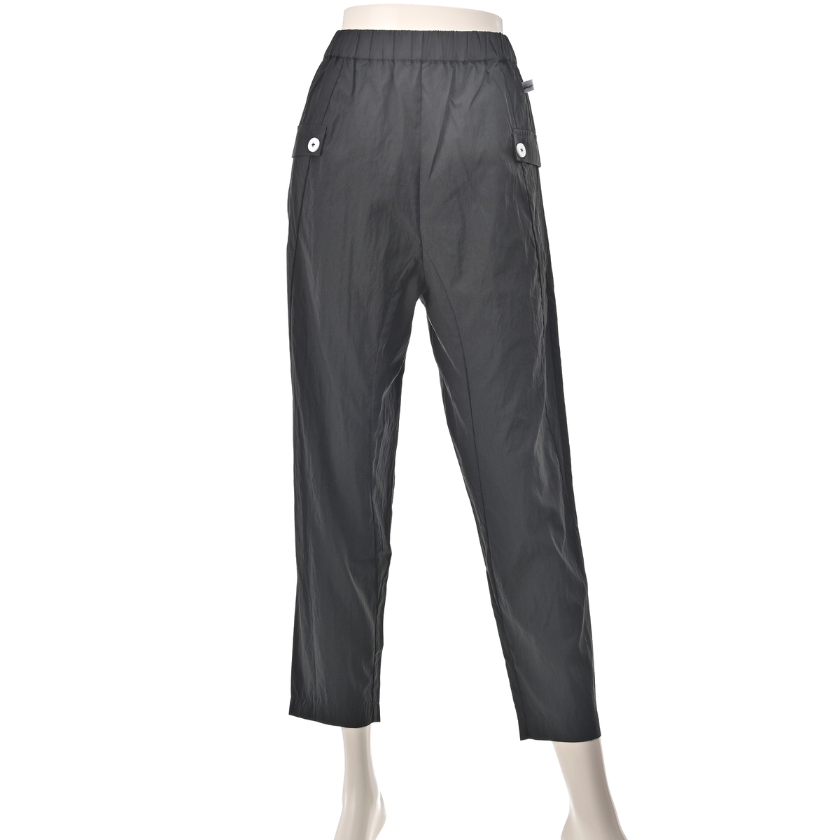 暑い季節に心地よいサラサラ素材で仕立てたパンツ。サイド切替のデザインで、立体的なパターンが美しいシルエットを演出。左右脇のポケットが実用性を高め、細かいディティールにも気を使ったKawaiOkadaらしいパンツです