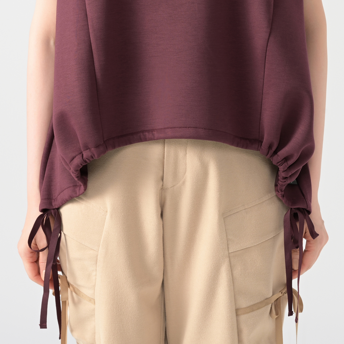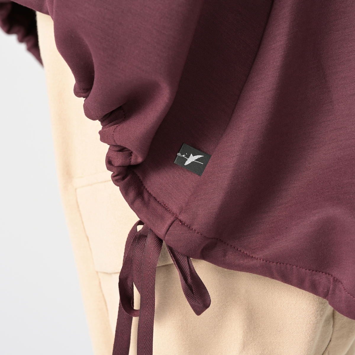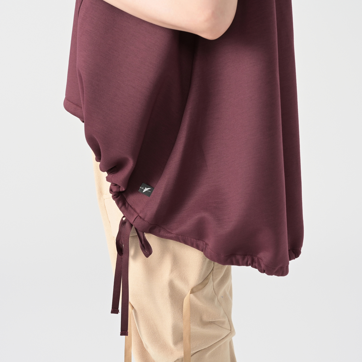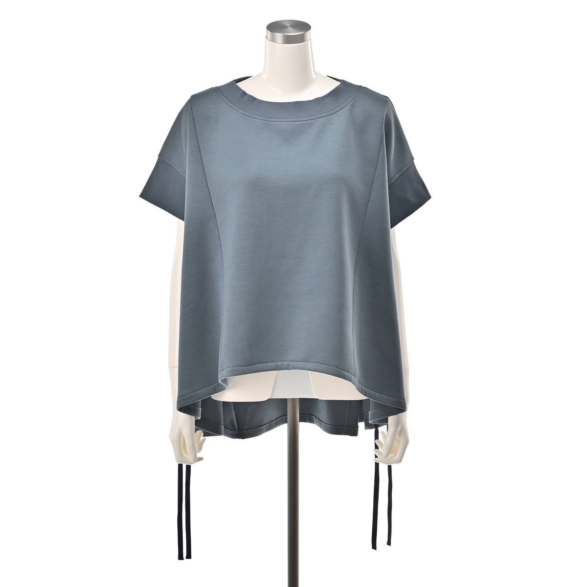 ハイゲージダンボールニットを使用したプルオーバーです。両サイドの紐でシルエットを変えることが可能。秋一番の素材で、早くから着用できるよう、素材の薄さもちょうどよいくらいに調整しています
