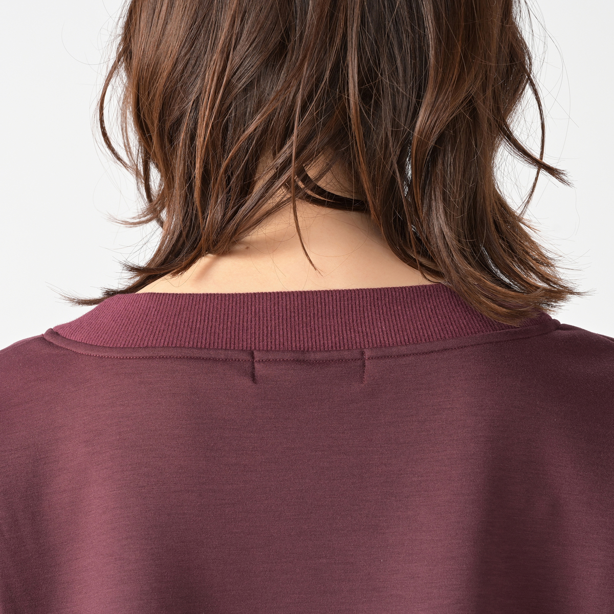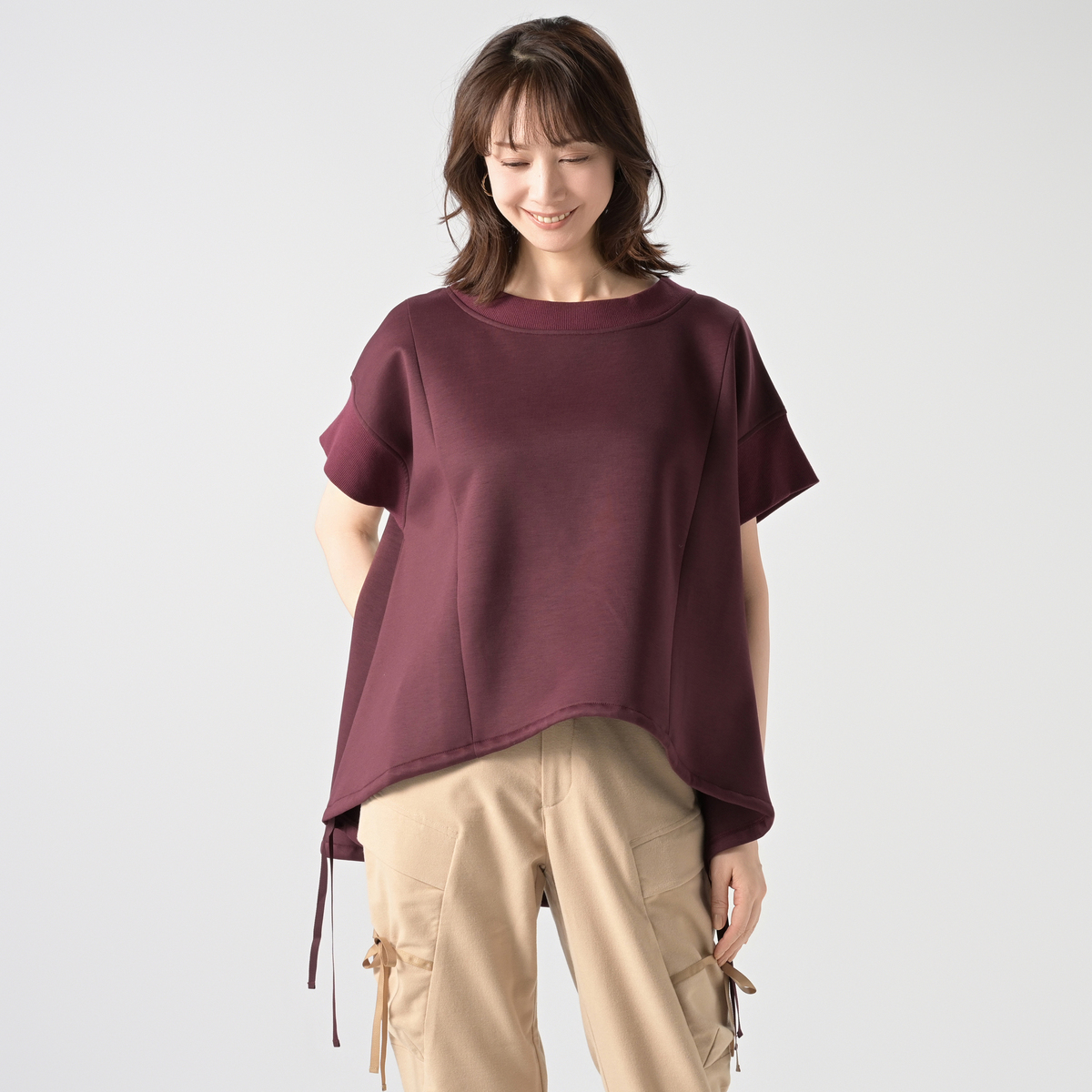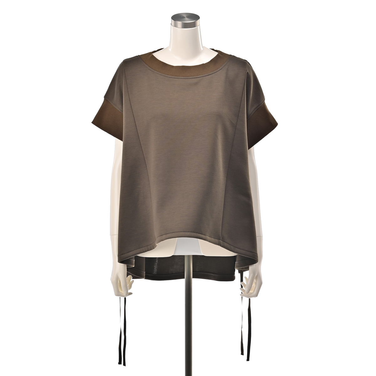 ハイゲージダンボールニットを使用したプルオーバーです。両サイドの紐でシルエットを変えることが可能。秋一番の素材で、早くから着用できるよう、素材の薄さもちょうどよいくらいに調整しています