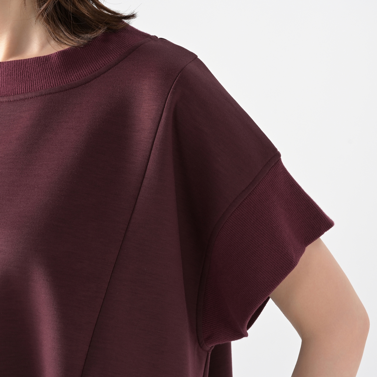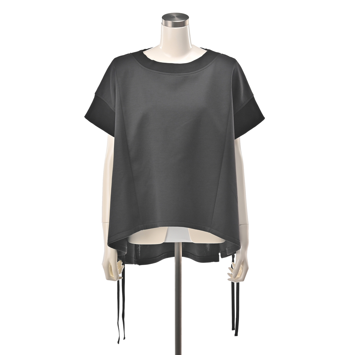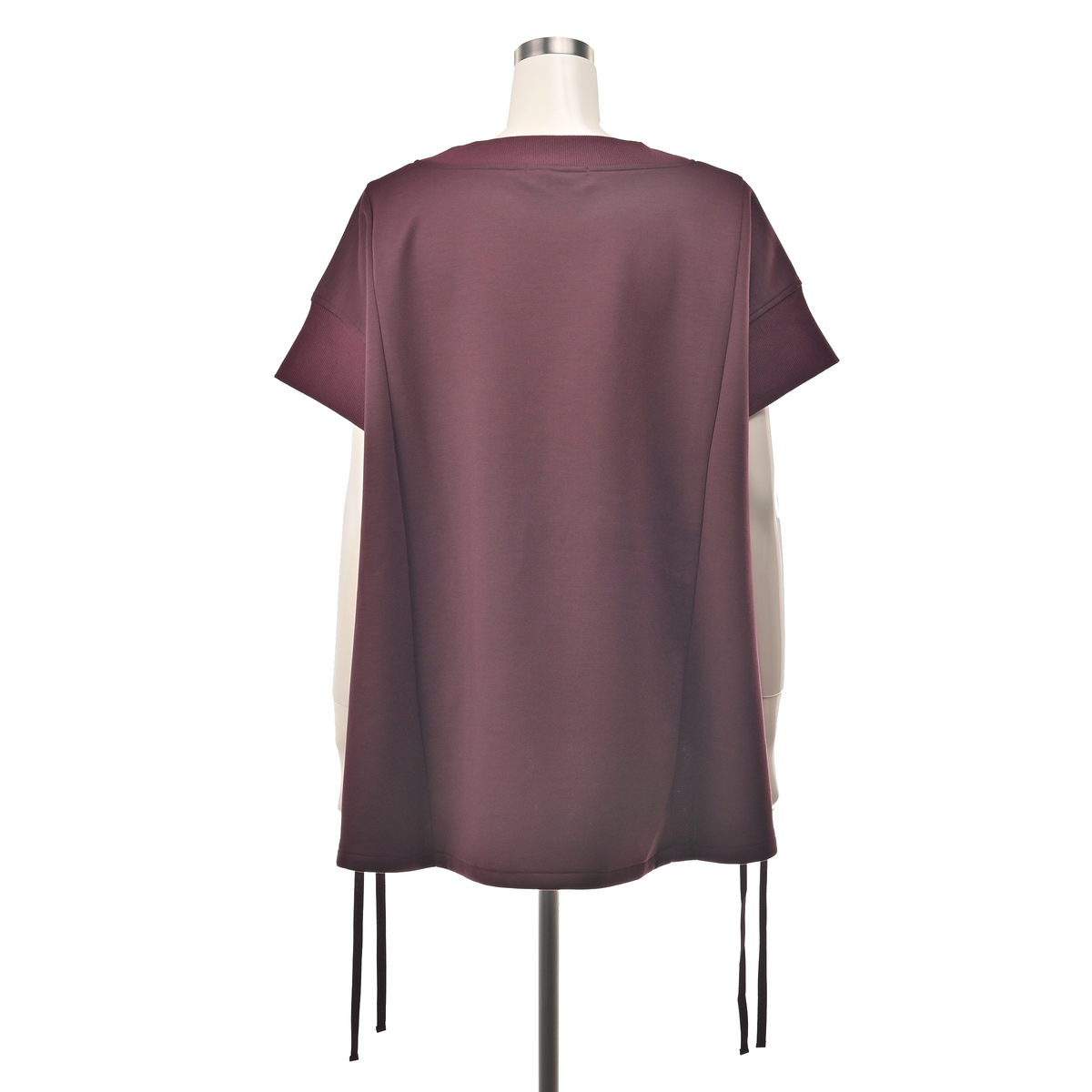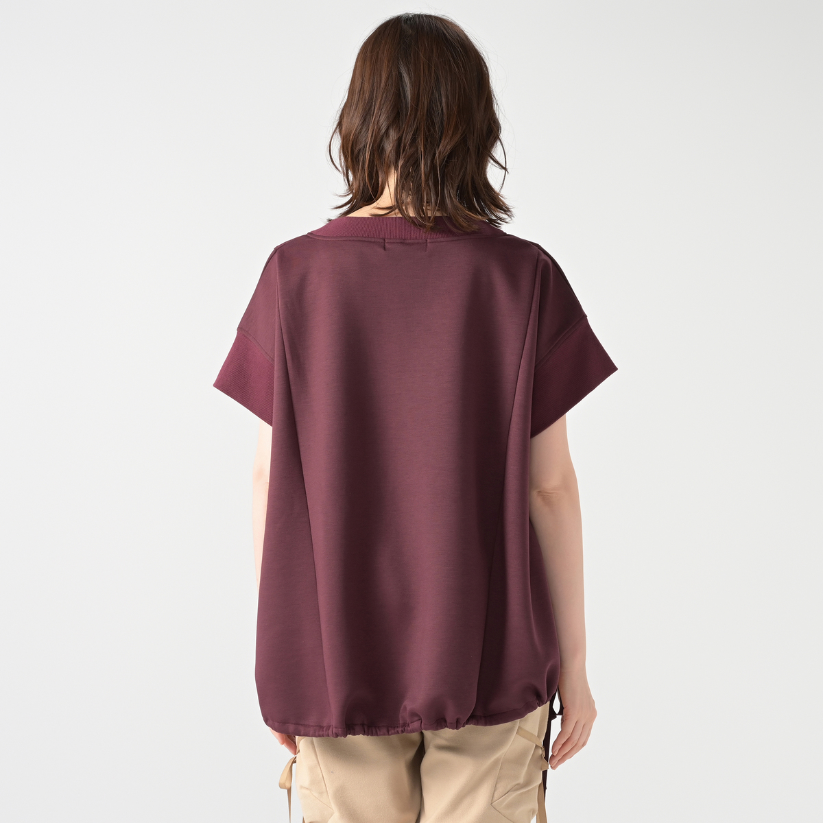 ハイゲージダンボールニットを使用したプルオーバーです。両サイドの紐でシルエットを変えることが可能。秋一番の素材で、早くから着用できるよう、素材の薄さもちょうどよいくらいに調整しています