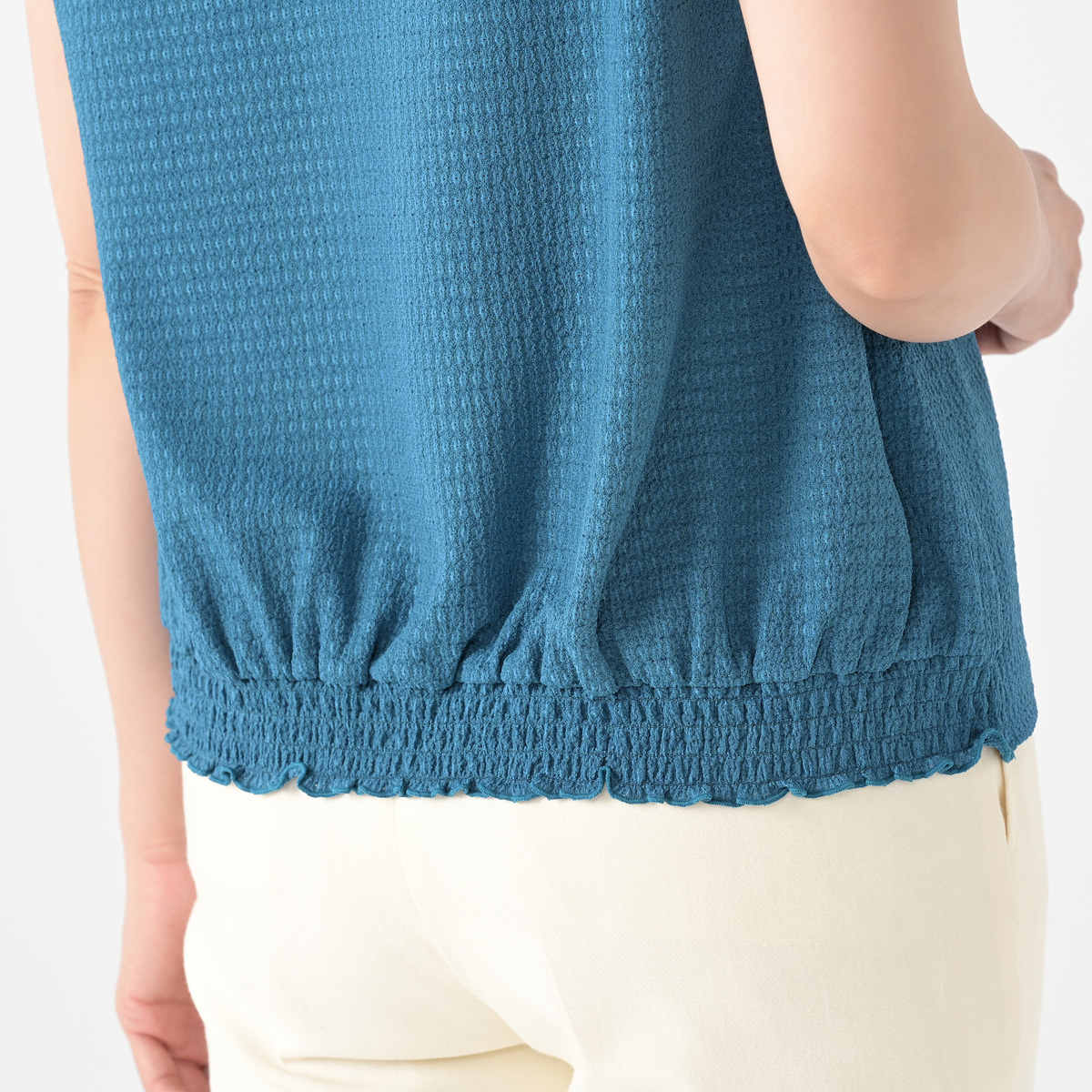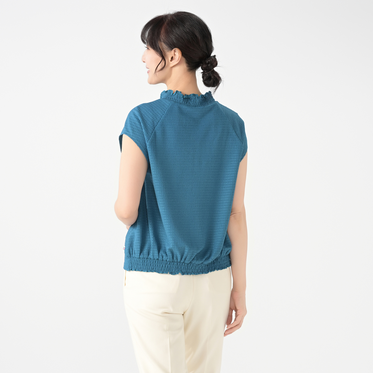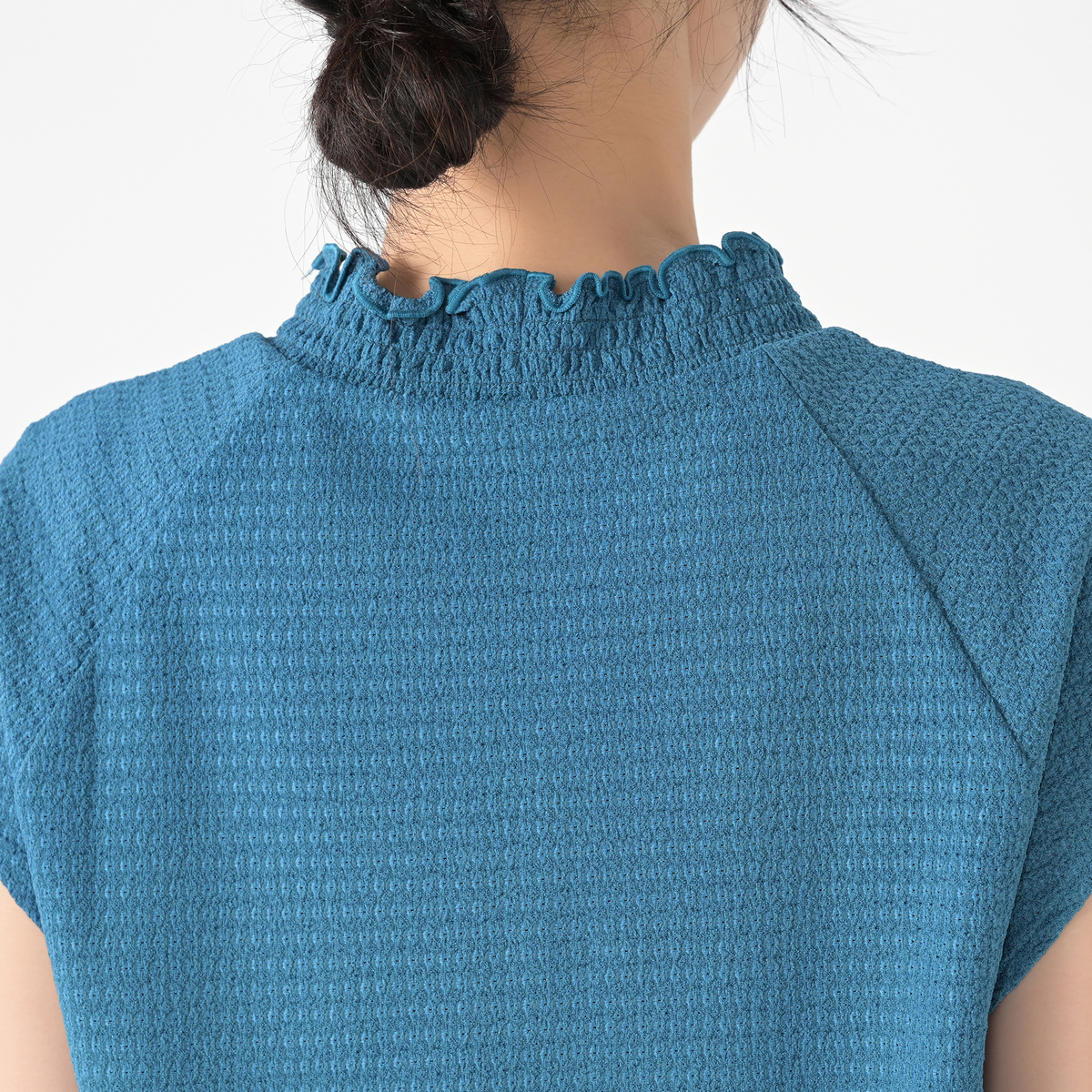 衿と後ろ裾にシャーリングを効かせたプルオーバーです。軽やかな着心地で、デイリーからお出かけまで、幅広いシーンで活躍します