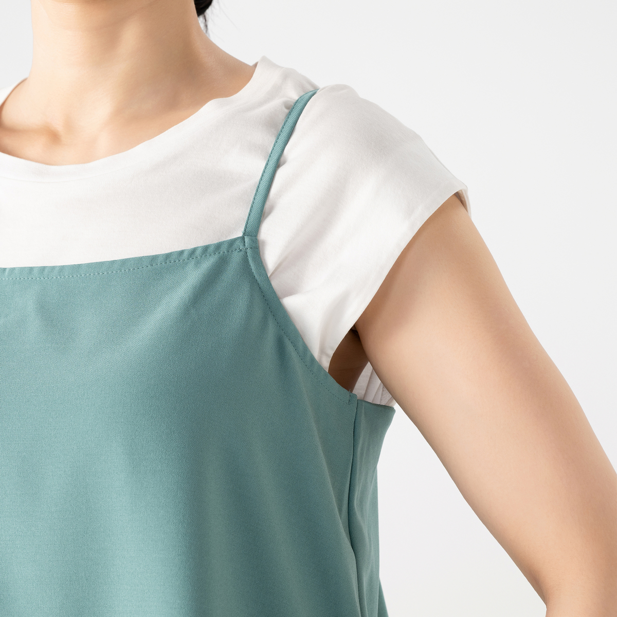 接触冷感やUVカット、吸水速乾を備え、摩擦などによるピリングができにくい素材を使用。それぞれ単品使いもできるので、デニムやスカートと組合せてアレンジもできる着まわし力のあるアイテムです