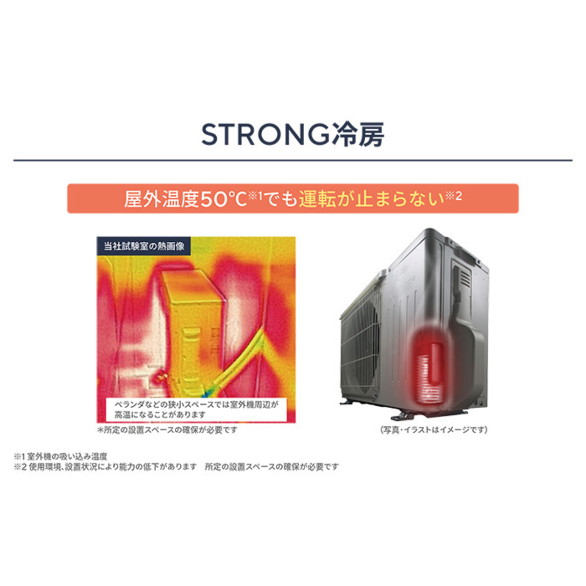 *2)「高温みまもり」は高温時の体への影響を防ぐための機能ではありません。室内機の据付場所やお部屋の環境により正確に室温を測定できず、冷房運転をしないことがあります