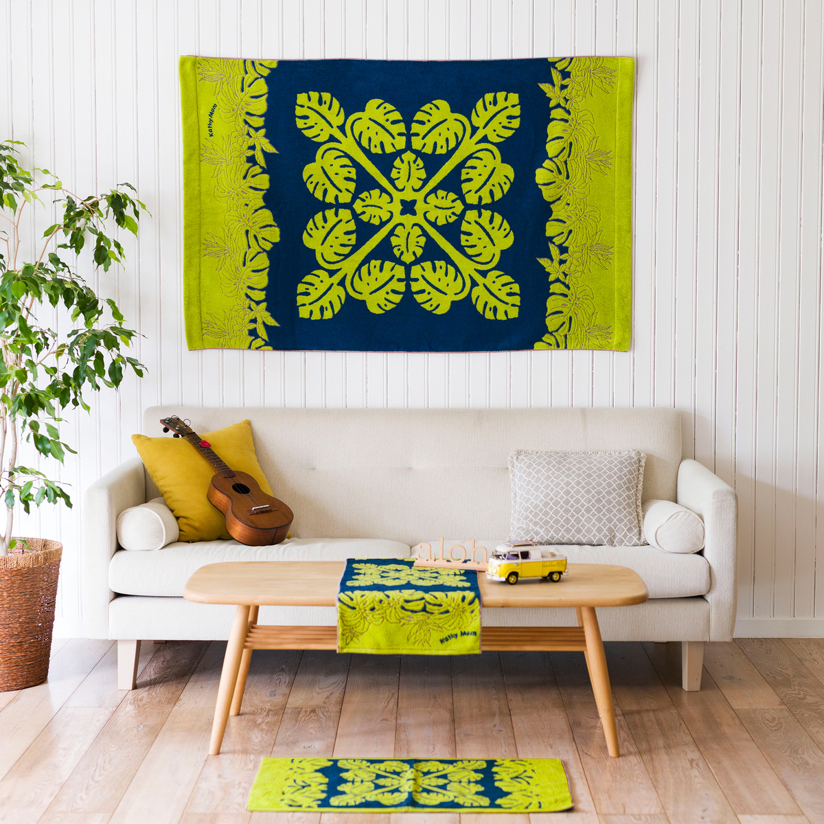 ハワイアンキルト作家 キャシー中島さんプロデュース「キャシーマム アイランドスタイル」から、美しいハーフケットをお届け。南国の風を感じる鮮やかな柄が空間に彩りを添え、気分もインテリアも盛り上げてくれます