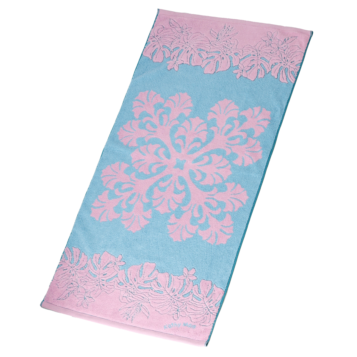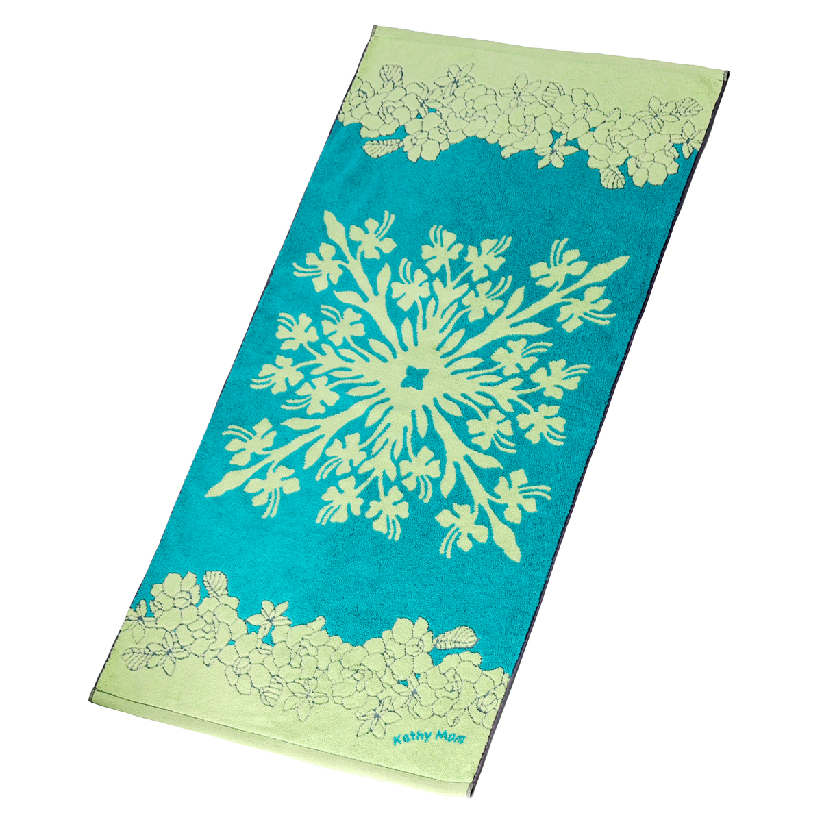 ハワイアンキルト作家 キャシー中島さんプロデュース「キャシーマム アイランドスタイル」から、美しいバスタオルをお届け。柄の部分に無撚糸を使っているので、フワフワした肌触りです。南国の風を感じる鮮やかな柄が空間に彩りを添え、気分もインテリアも盛り上げてくれます