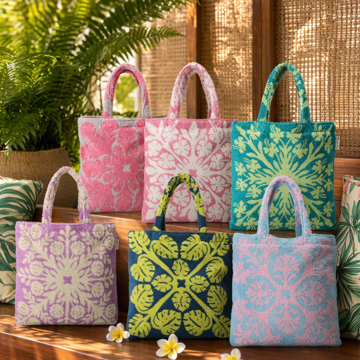 ハワイアンキルト作家 キャシー中島さんプロデュース「キャシーマム アイランドスタイル」から、美しいトートバッグをお届け。南国の風を感じる鮮やかな柄が装いに彩りを添え、気分もコーディネートも盛り上げてくれます
