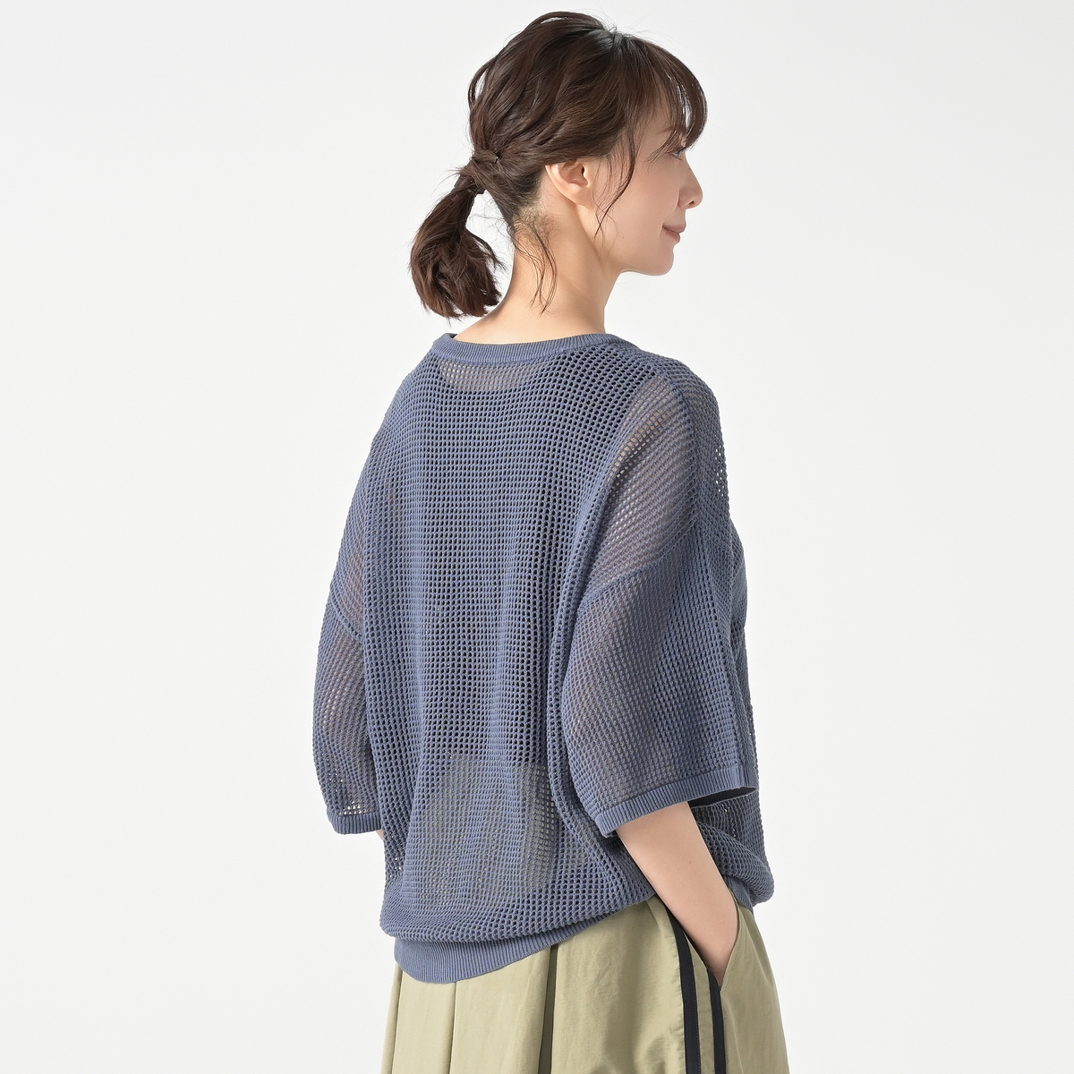 去年のメッシュのトップスも大変気に入り、3色買いました。難点はひっかけやすい生地でしたが、今年のものはしっかりしたメッシュで気を遣うことなく着用出来そうです。すぐにネービーとカーキを購入できてよかったです。