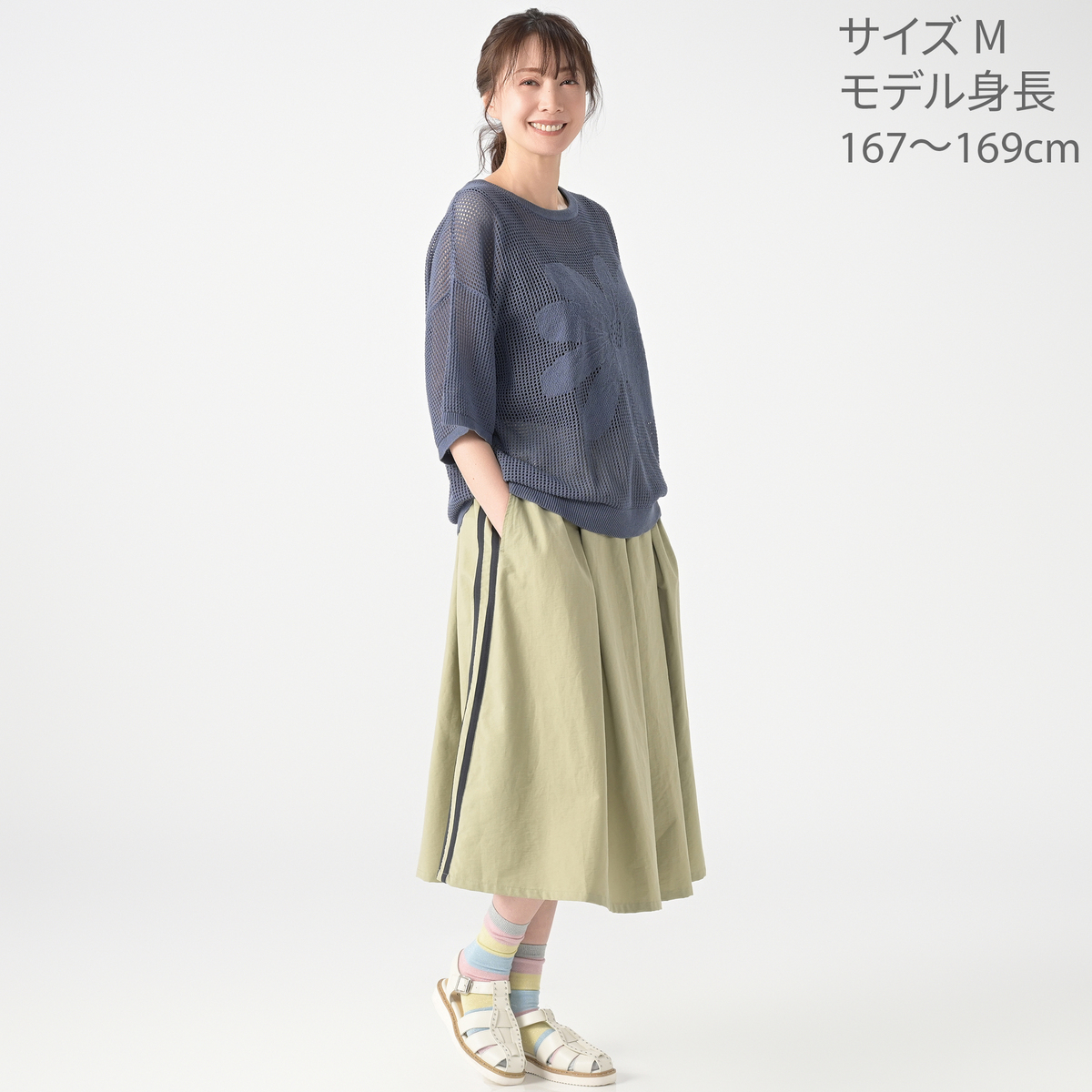 グレーをいただきました。すこしサンド味がかった、大人っぽい良い色です。手持ちのいろいろな服に合いそうで、さっそくあれこれ組み合わせ。パーソンズでお買い物をすると、いつも、一人ファッションショーを楽しんでしまいます(笑)。たとえば、一昨年いただいたフラワー・パッチのスカート。すそが少しバルーンになっている可愛らしいシルエットのスカートですが、フラワーつながりで合わせてみたら、ピッタリです。大人可愛くて、素敵でした。売り切れてしまうと嫌なのでオンエア前に購入しましたが、オンエアでナビさんがLサイズを着ておられて、ジャストサイズに見えたので、すこし焦りました。でもMサイズで大丈夫。ゆとりをもって着ることができました。素材もコットン100%で、素肌に優しいです。とても気に入りました!