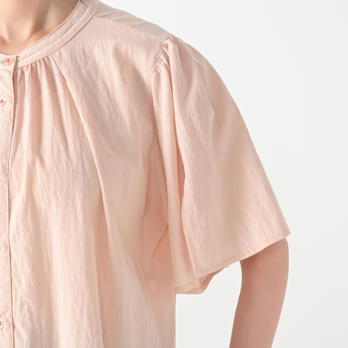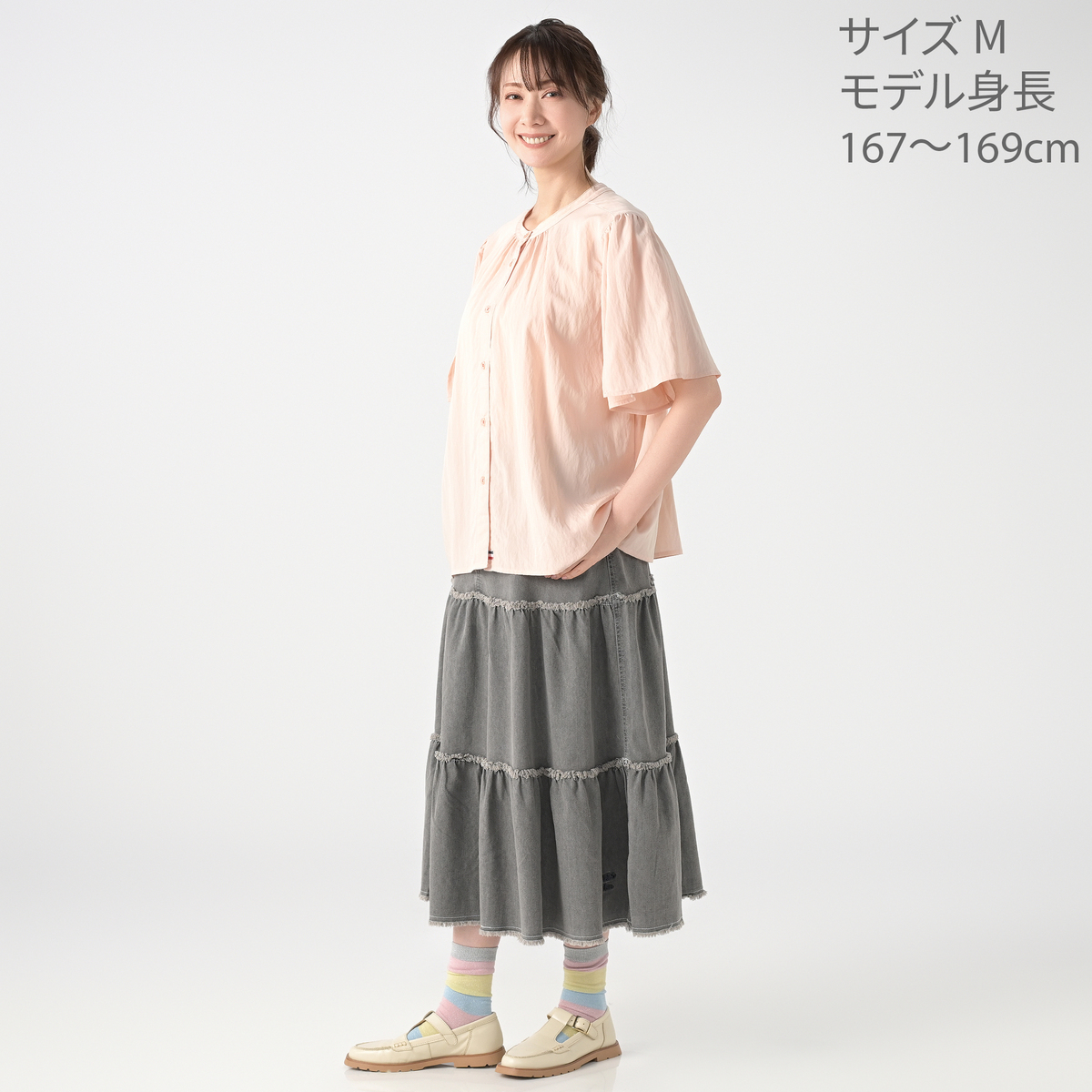 前後どちらでも着られる2WAYデザインのブラウス。ふわっとしたフレアー袖には深めのスリットが入り、涼しげな印象を与えてくれます