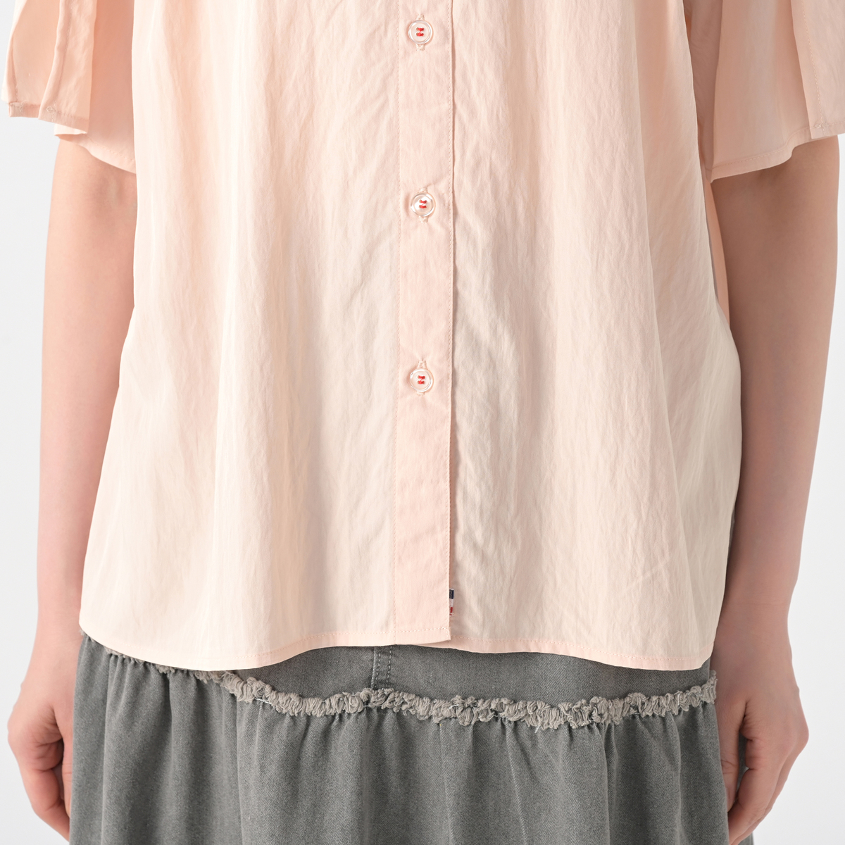 口コミが良かったので、ピンク、サックス、ライの3色を買いました。 2WAYですが、ボタン前で着ています。 着るときはヒンヤリ、サイズはゆったりしていてよいです。 来年?は、この素材で、袖の切込みなし、柄、フリル、レースがついていたら、うれしいです。