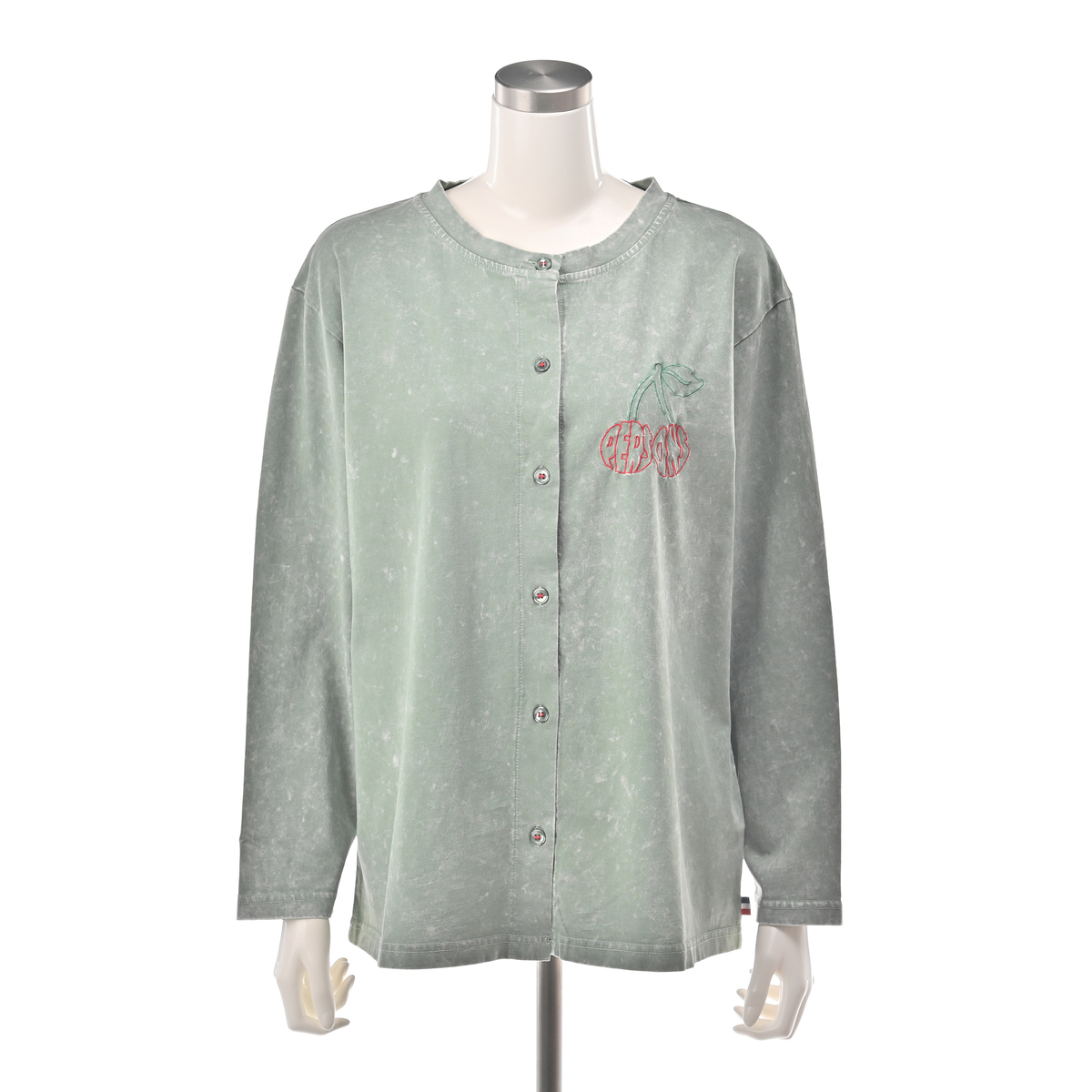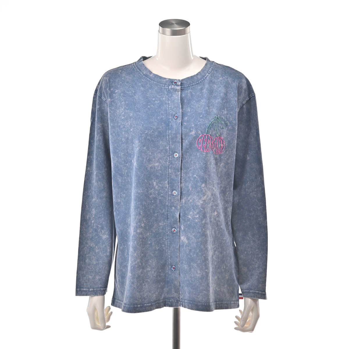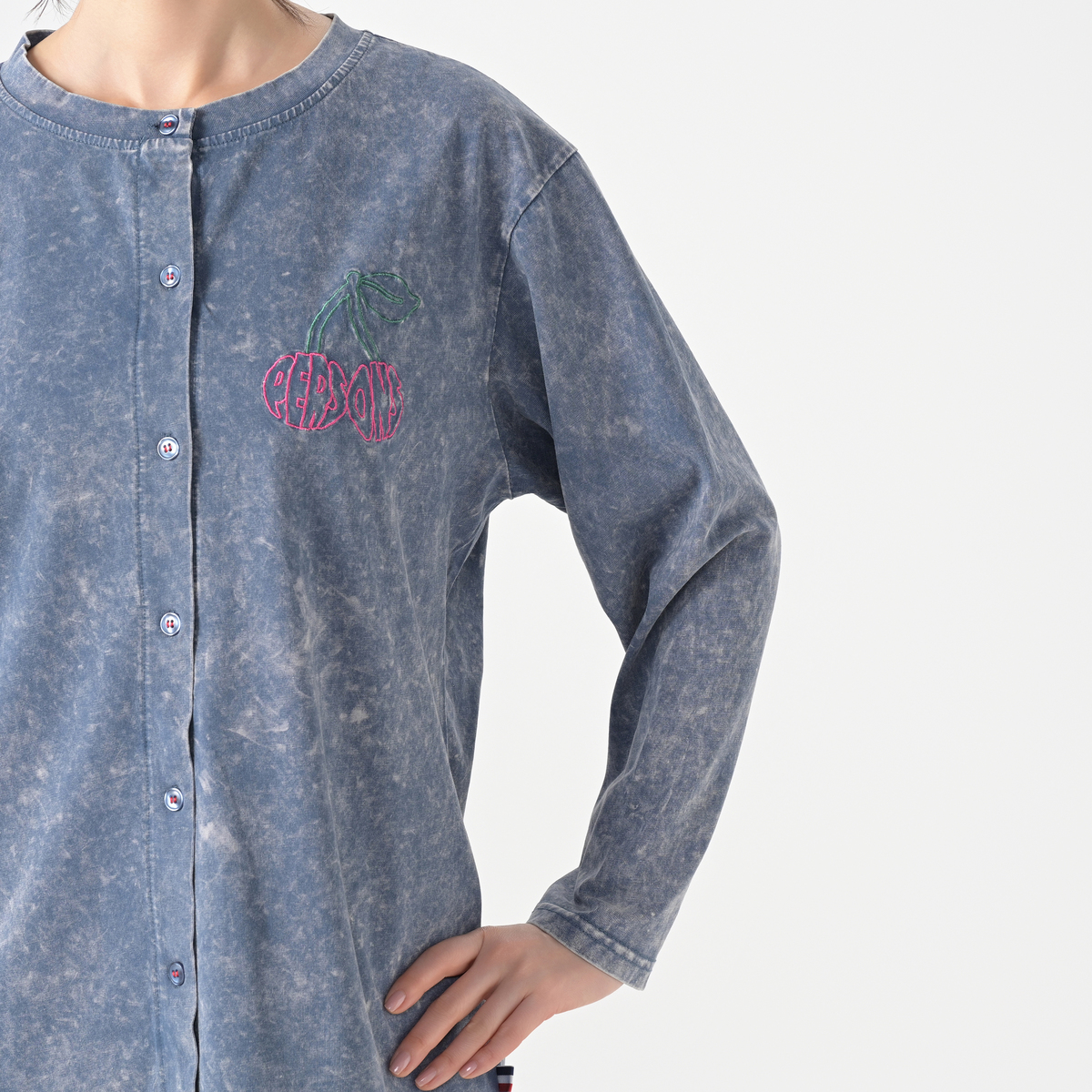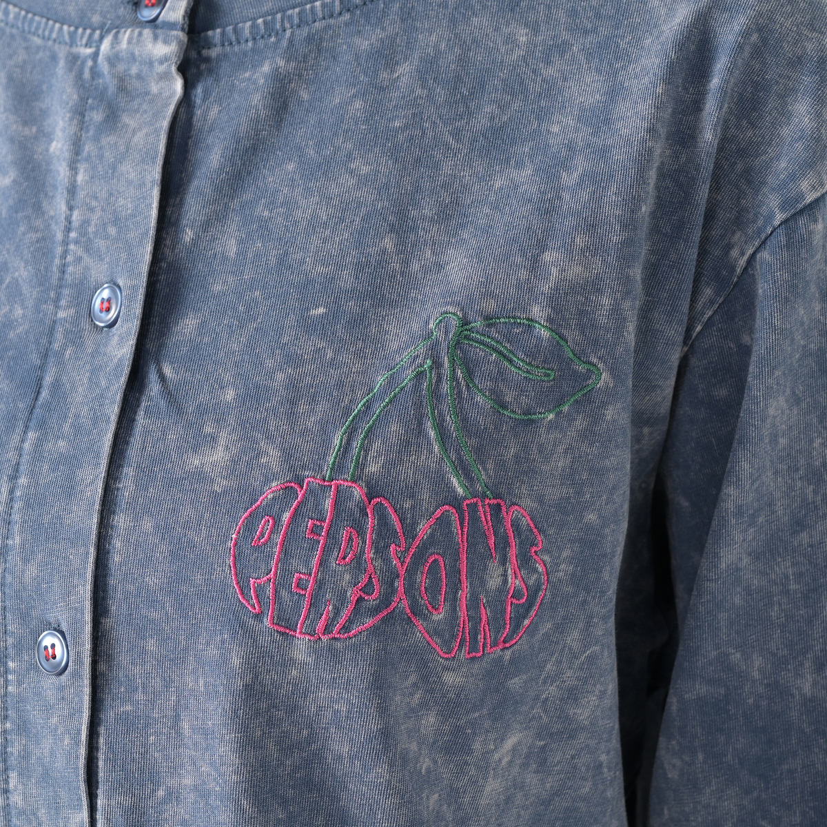 今年はPERSON'Sでウォッシュ加工のお洋服を何枚か購入させていただきましたが、どのカラーも本当に素敵で。 今回購入したアイスブルーもとても綺麗でした。マゼンタのチェリー刺繍がよく映えます。このカラーにして良かったです。