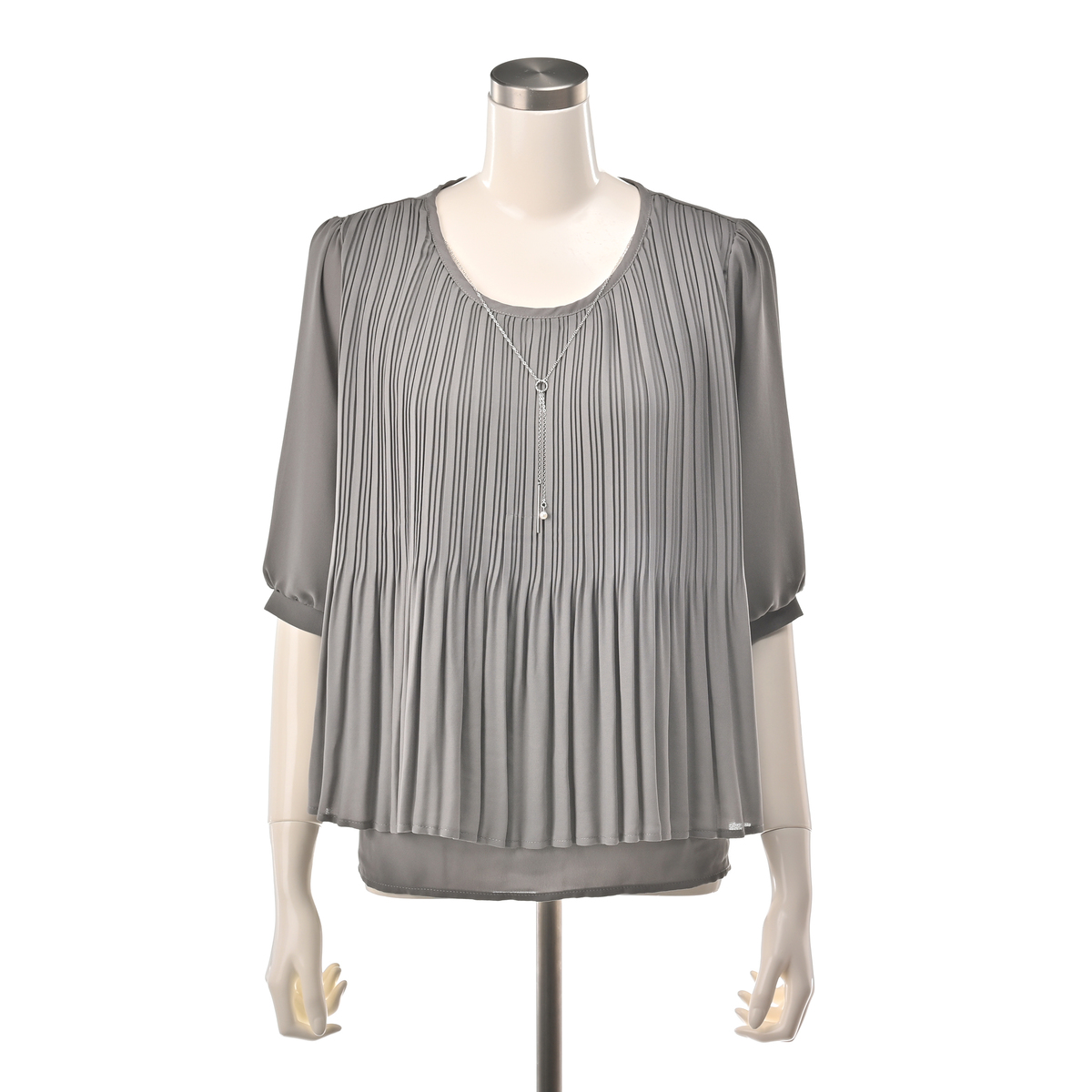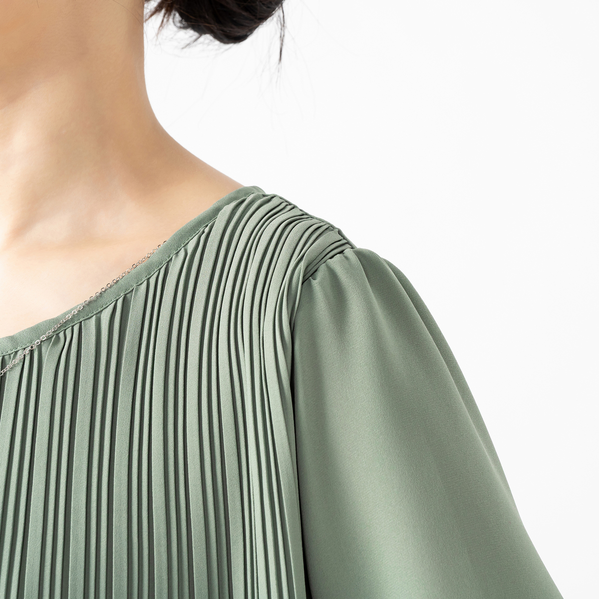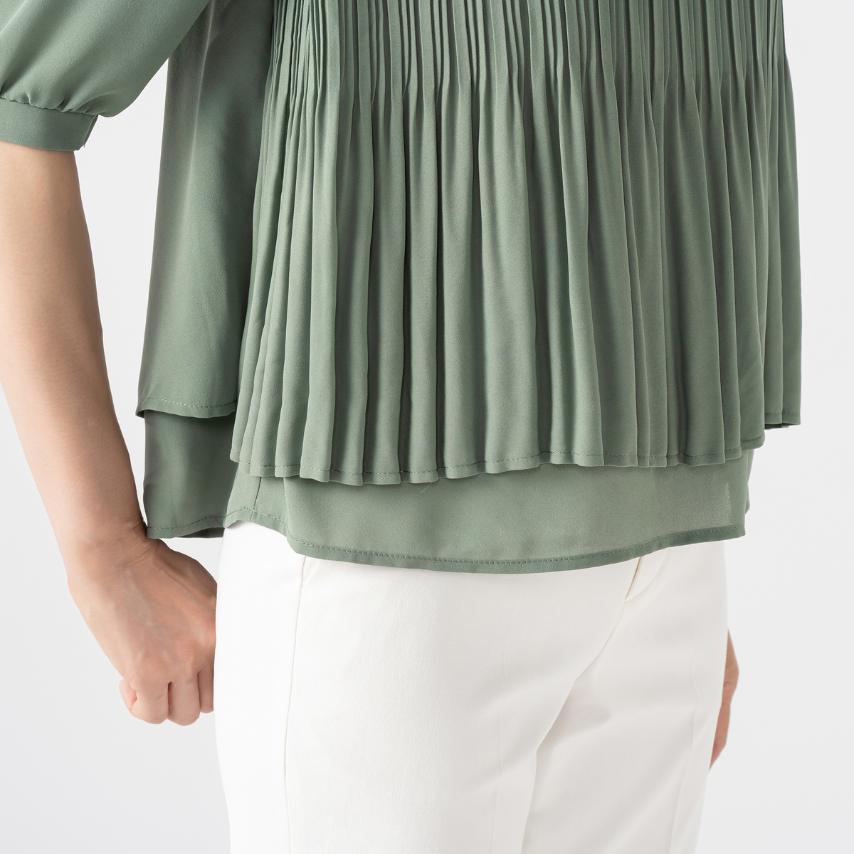 No. 743764 Beauty Fit 前身プリーツアクセ付ブラウス