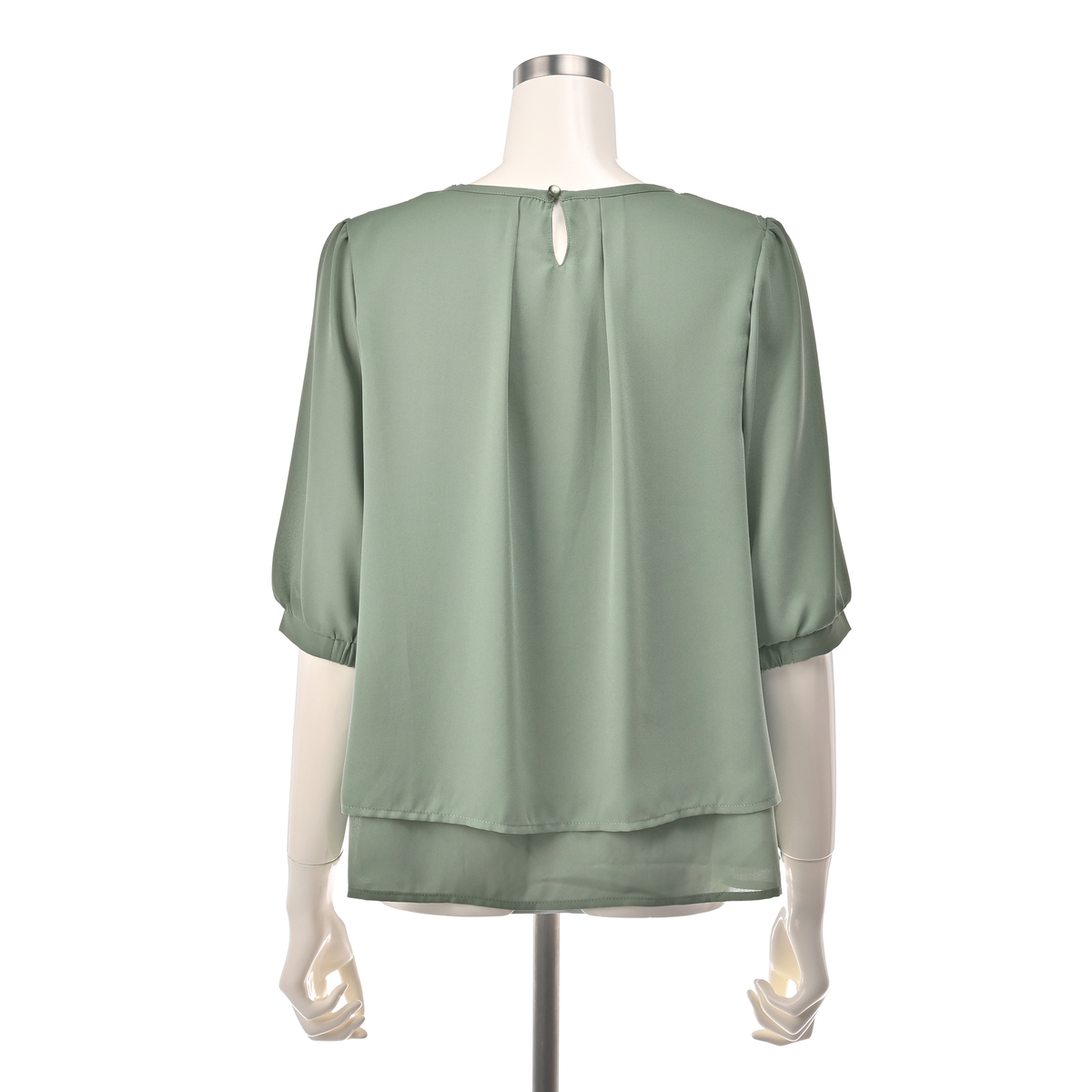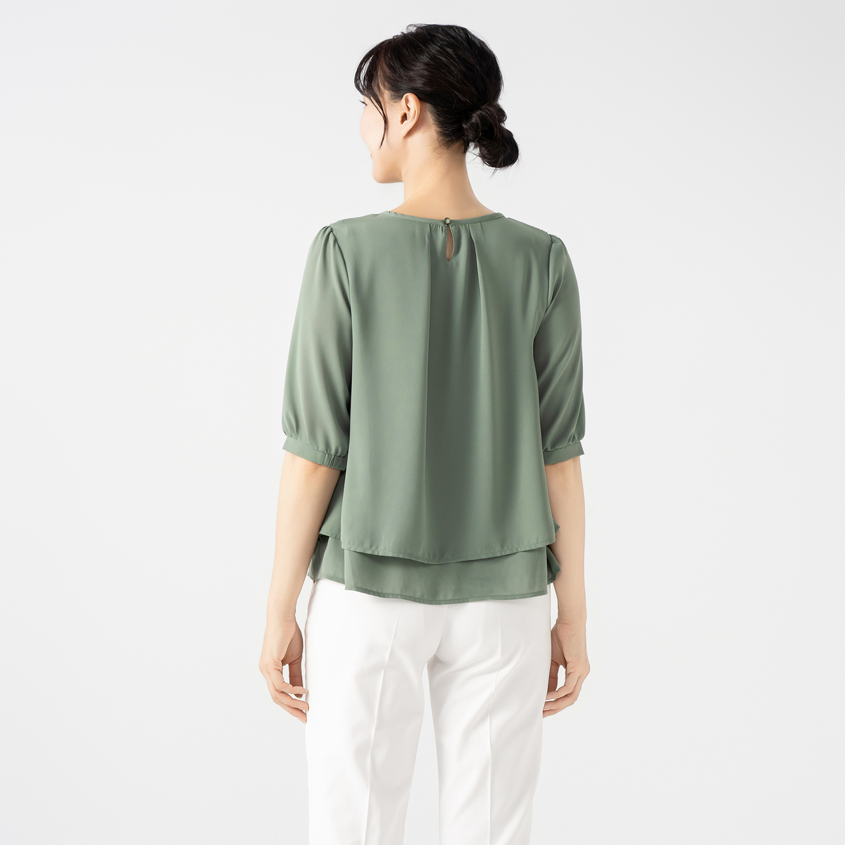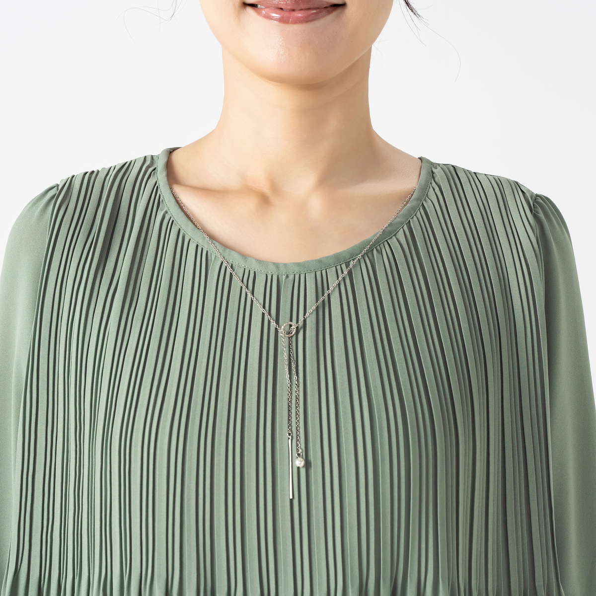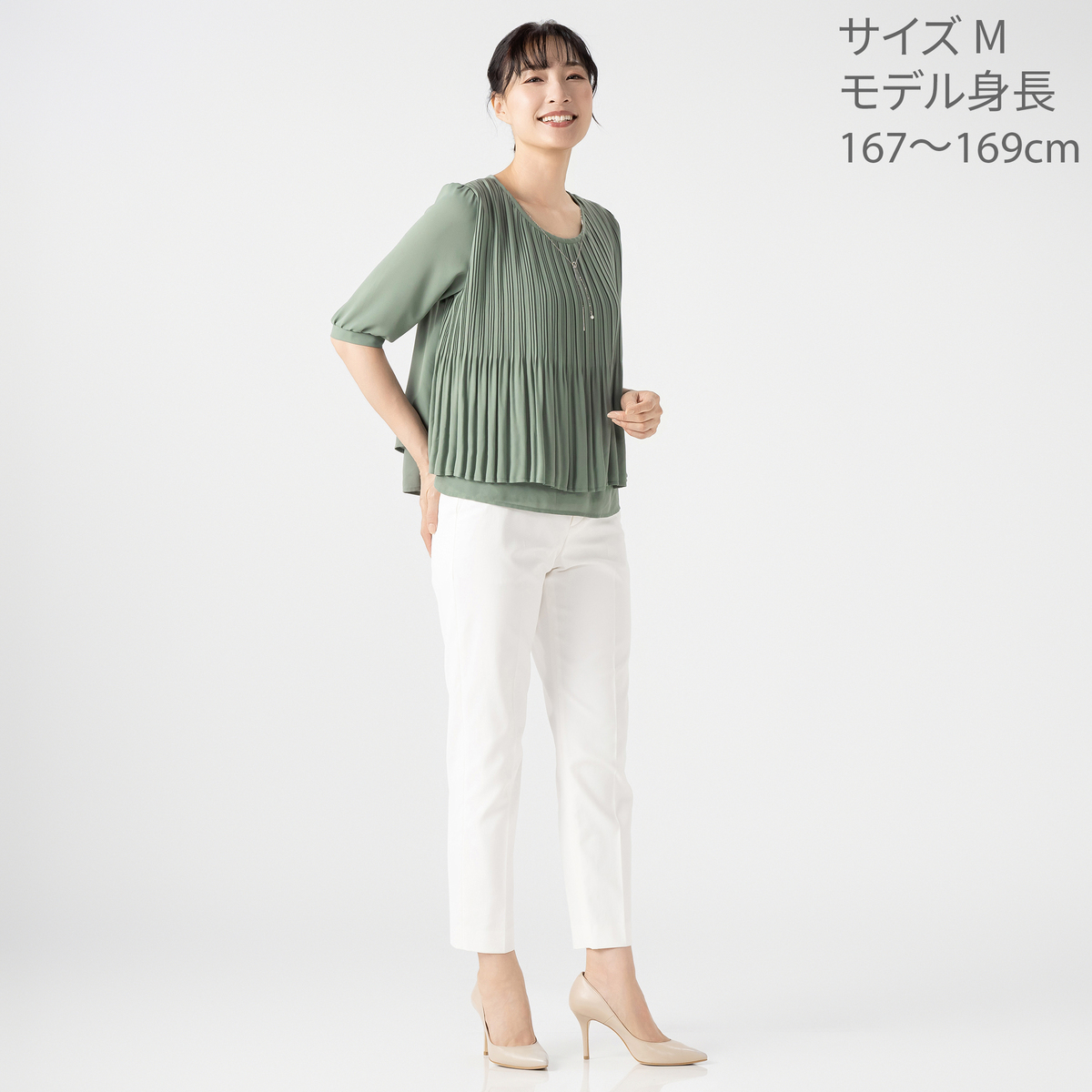 No. 743764 Beauty Fit 前身プリーツアクセ付ブラウス