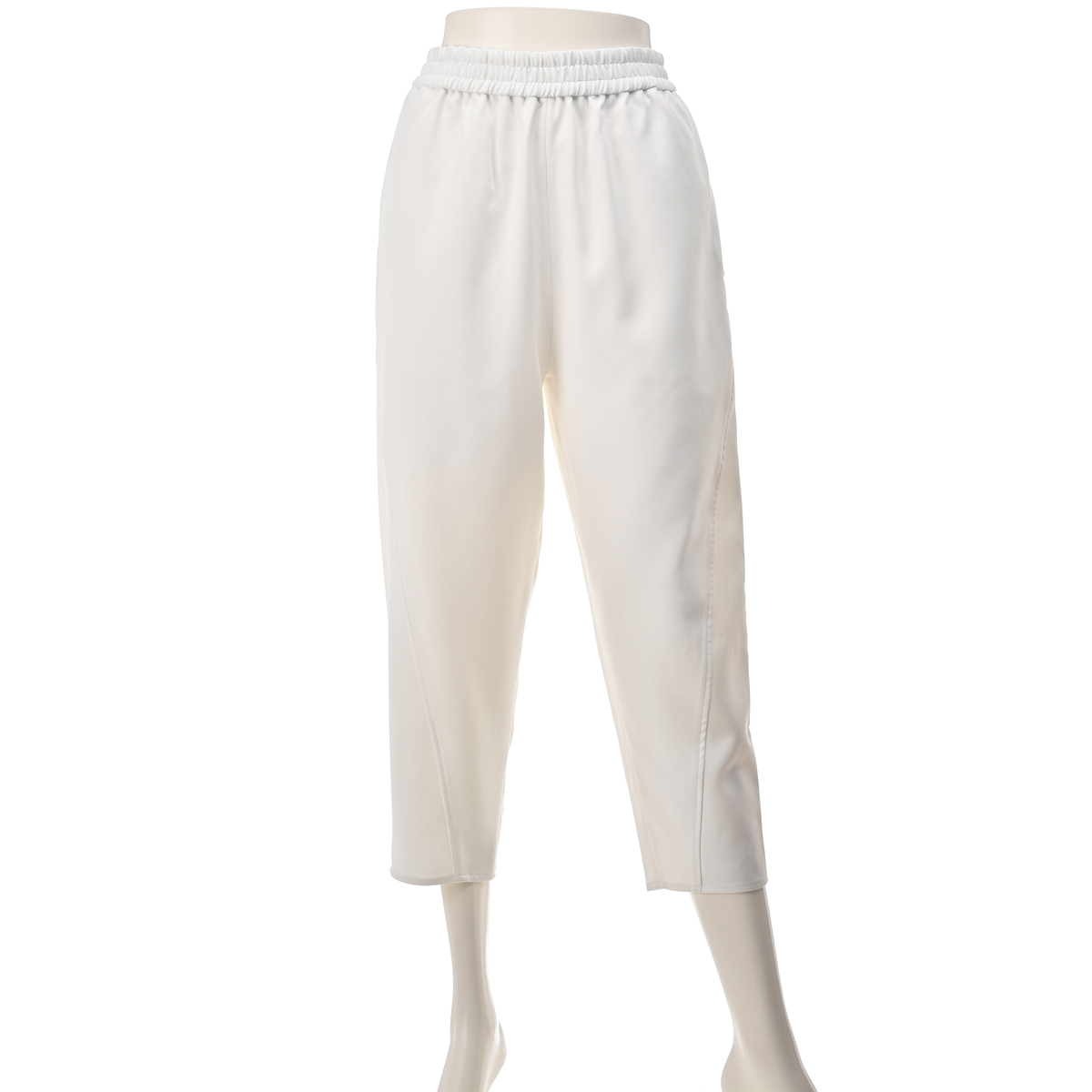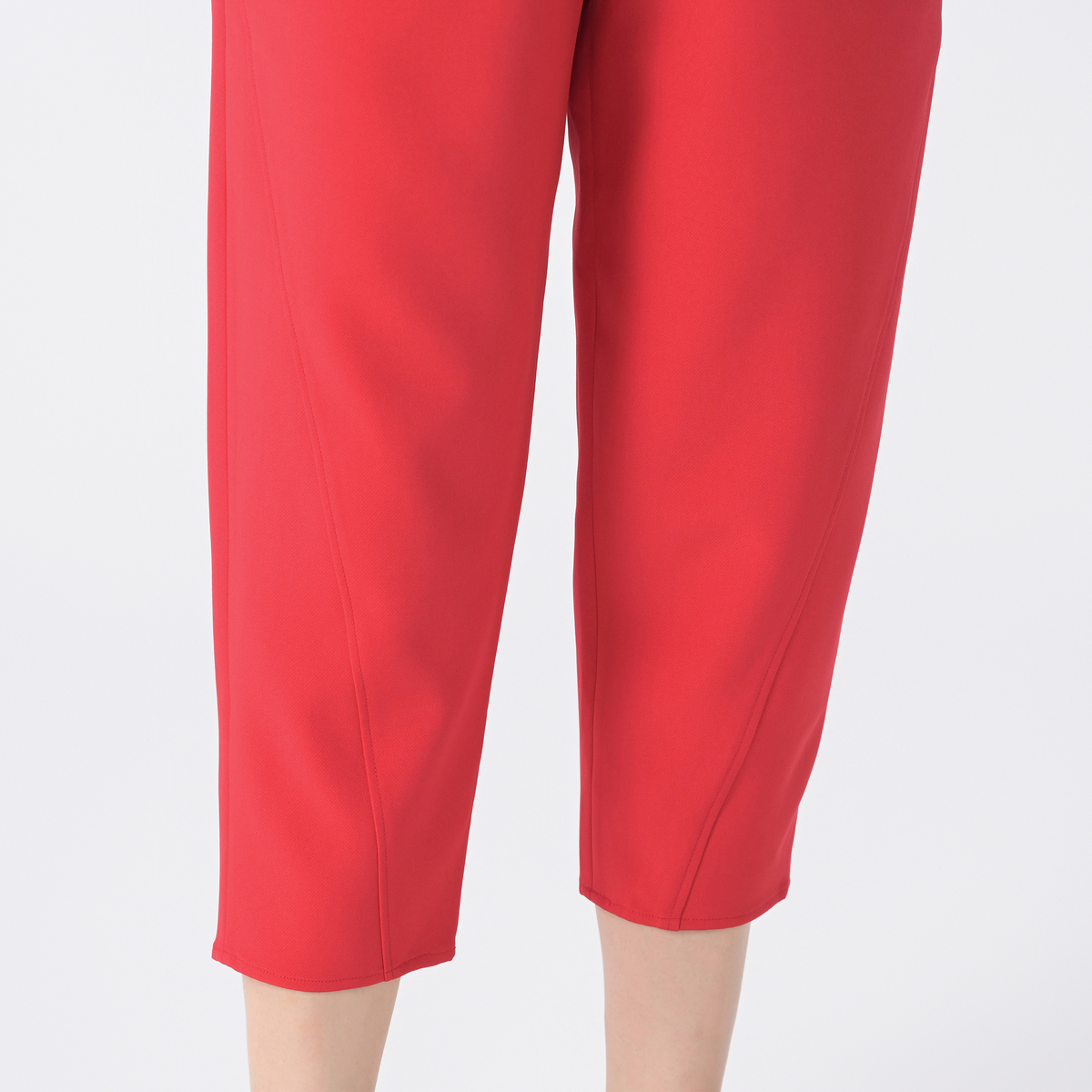 ゆったりリラクシーなトレンド感のあるカーブパンツ。前後左右にゆとりがあるので動きやすく楽な穿き心地。重く見えがちなカーブパンツを少し短め丈にしてスッキリと細見え効果を狙いました。モードな雰囲気をまといながら、日常使いしやすいデザインです