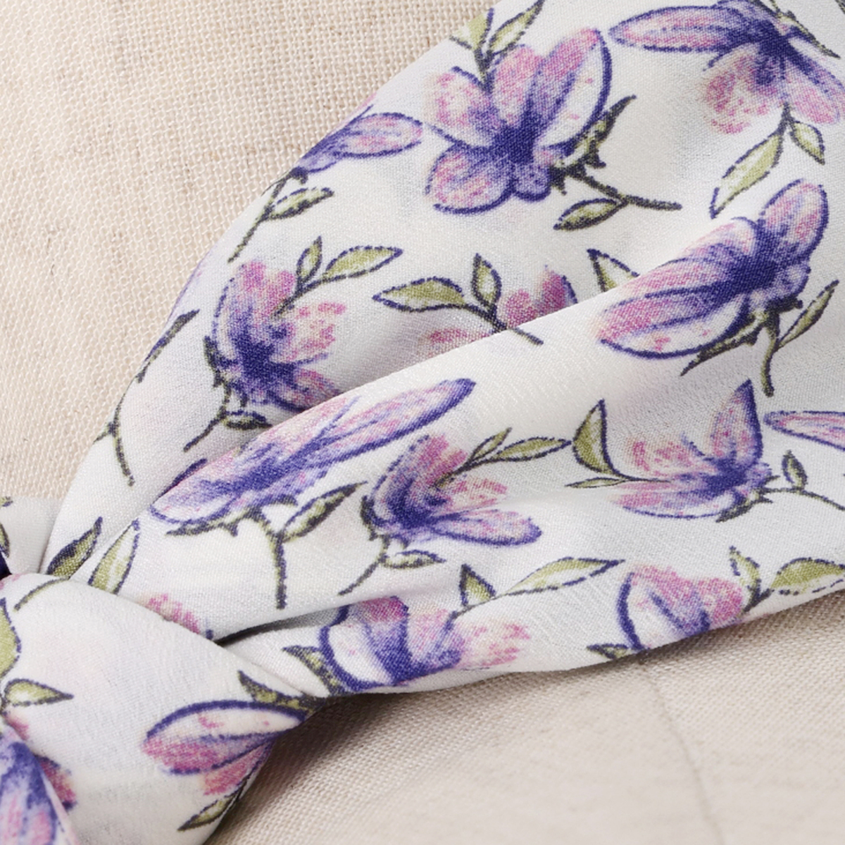 繊細なレースで縁どりした、フェミニンなフラワー柄のスカーフ。合わせやすい大きさでスタイリングに新鮮な抜けをプラスしてくれます